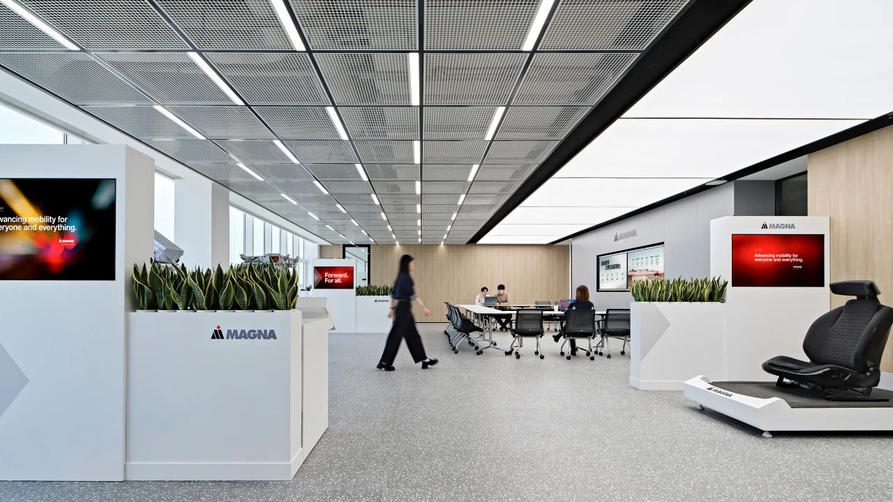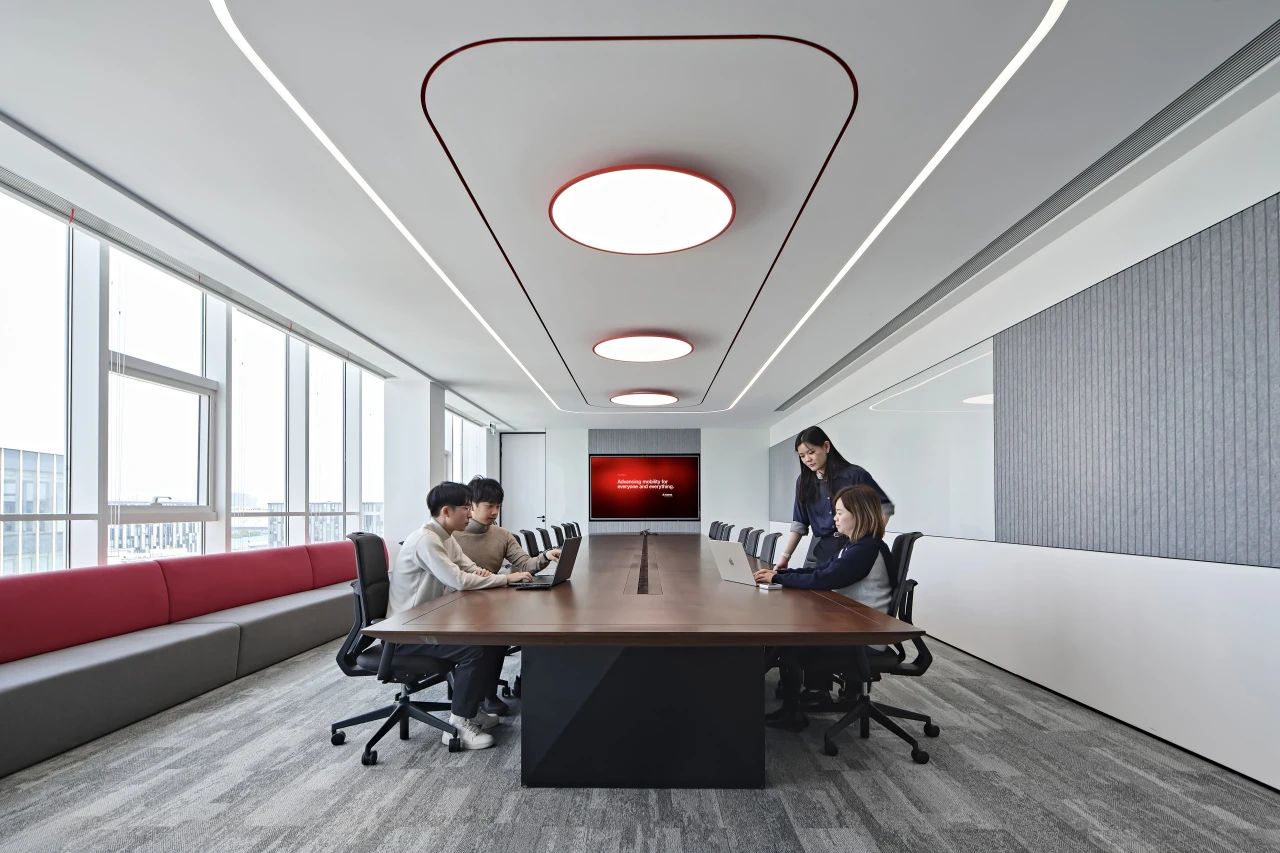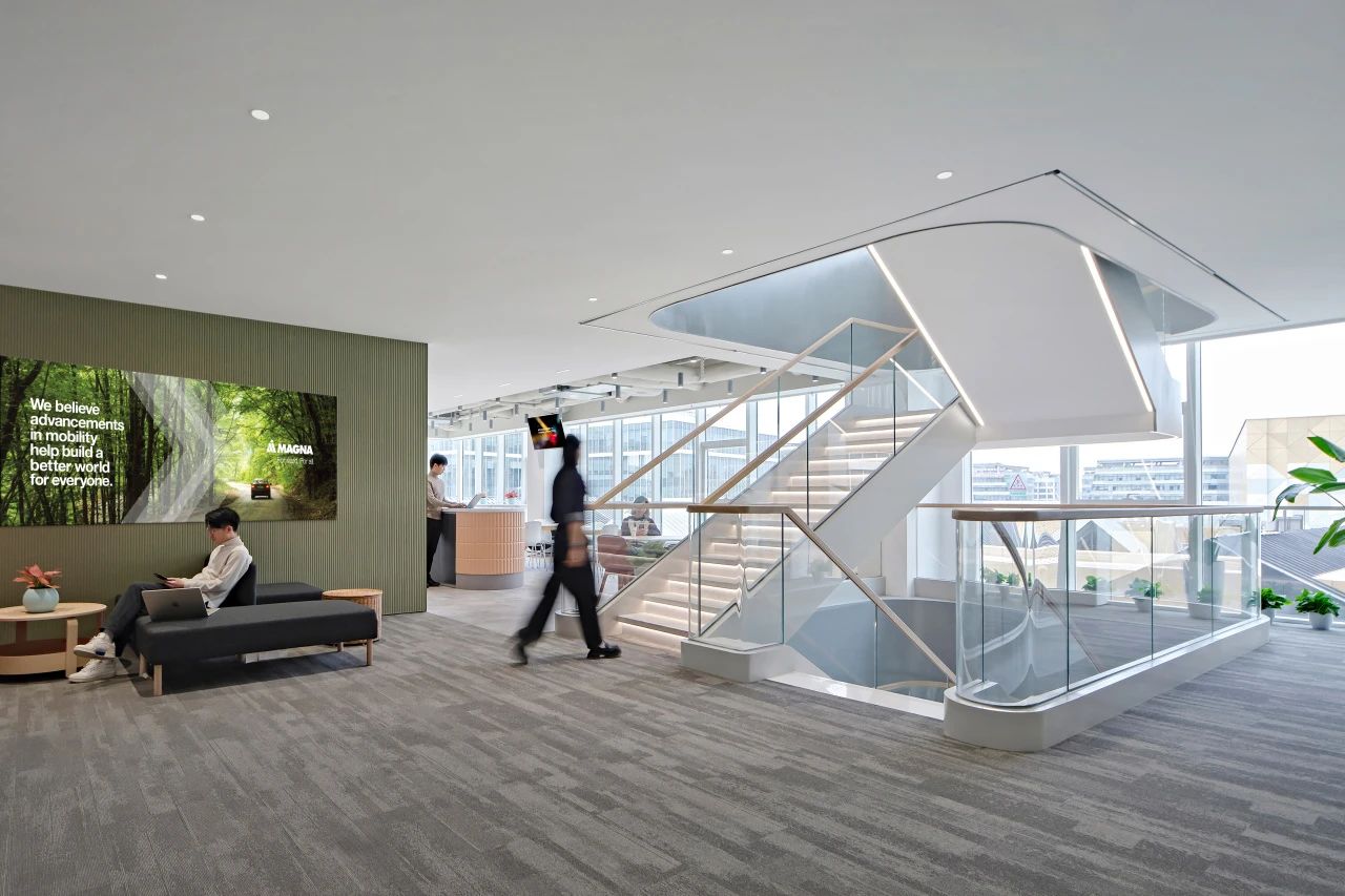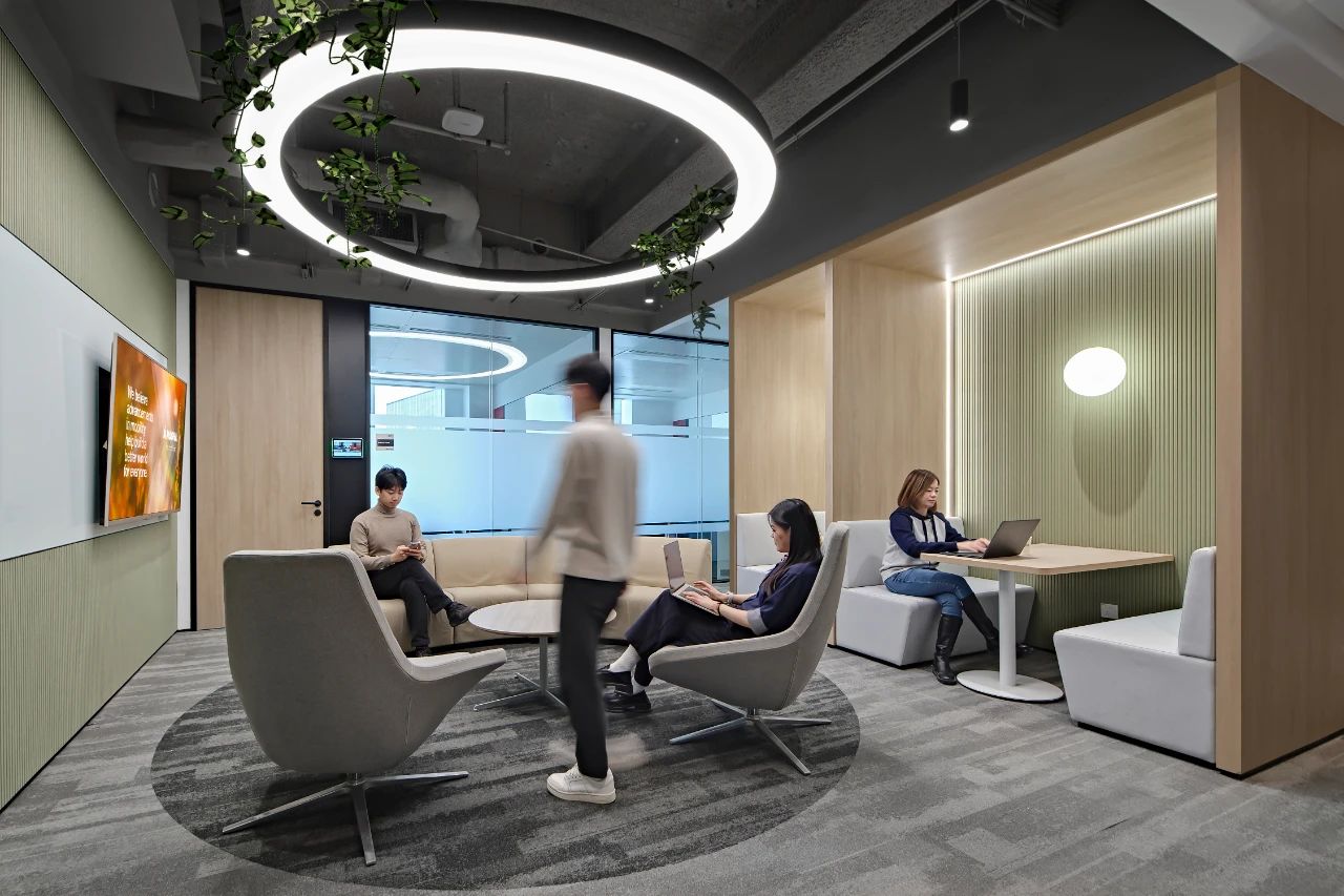 Reception以简洁流畅的线条和数字化交互设计,传递企业品牌基因,访客可在此处打卡标志性的品牌墙,开启科技之旅。