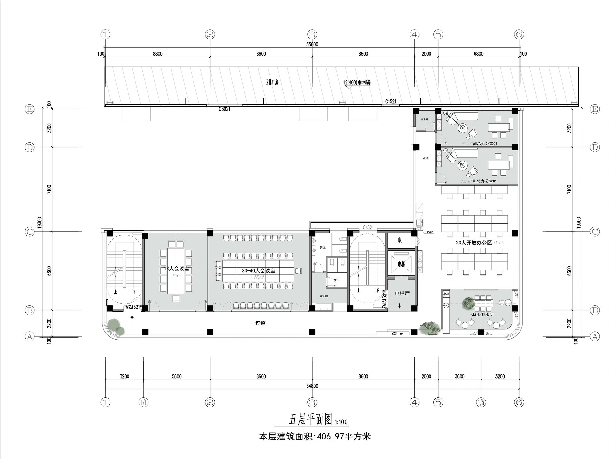 ♡ 开放办公区的设计允许多种工作模式的灵活切换。通过利用玻璃以及铝方通隔断,既保留了足够的个人工作空间, 又提供了会议和协作的区域。