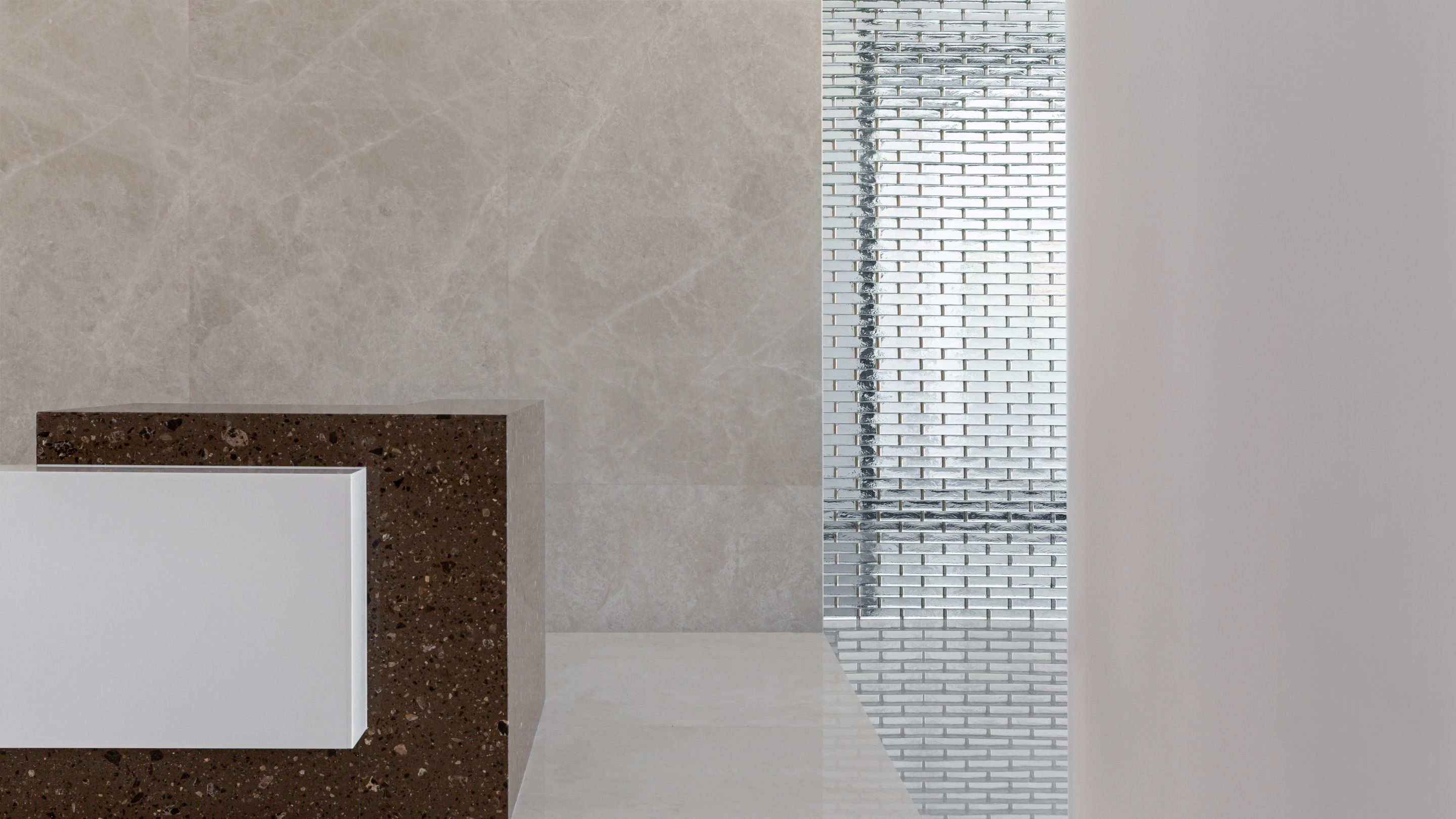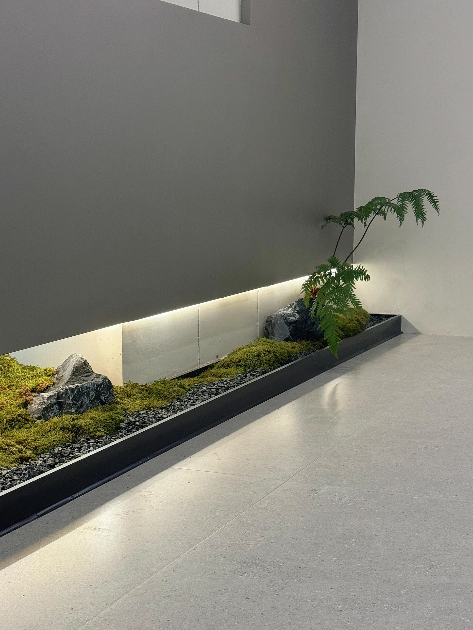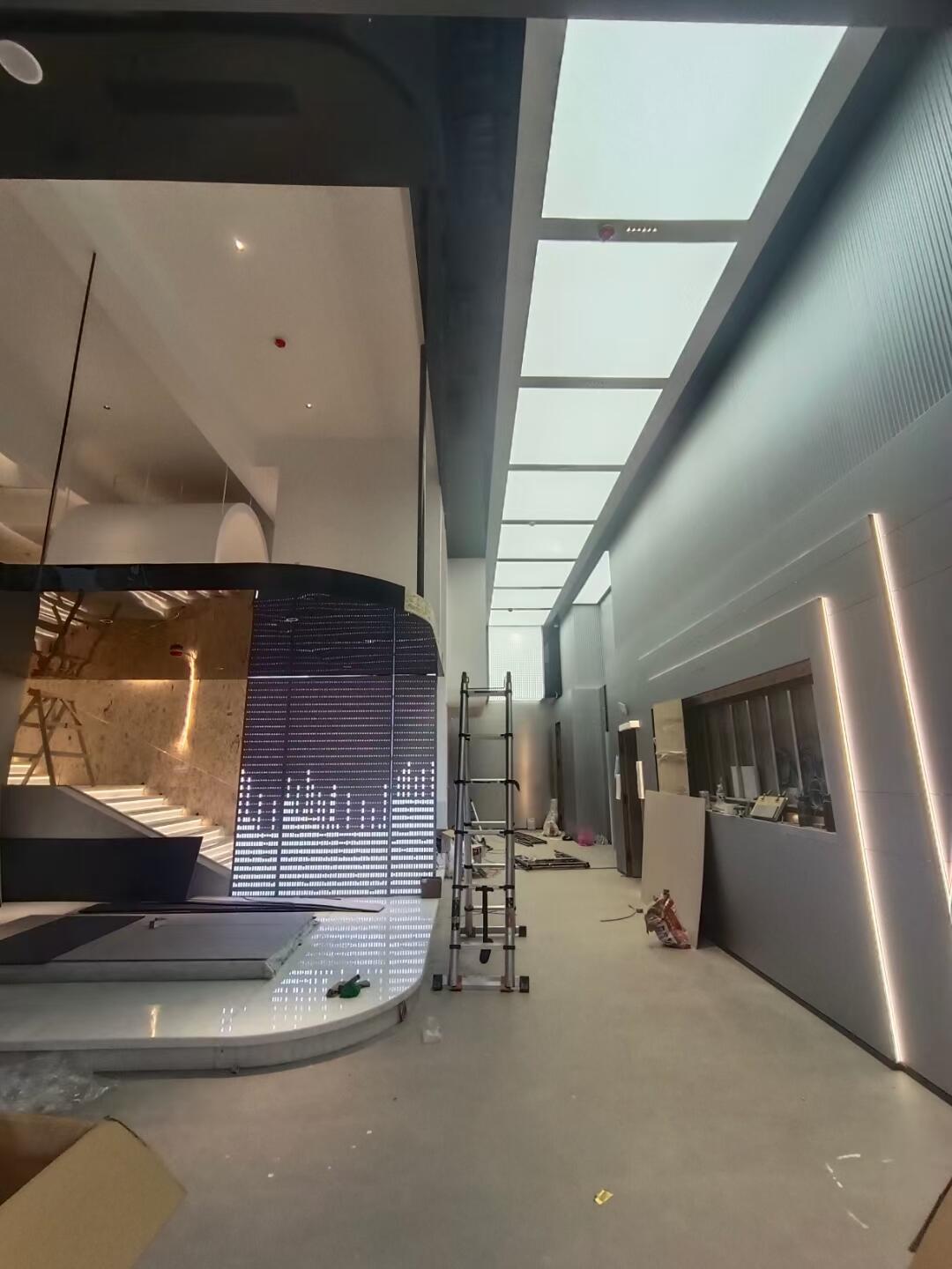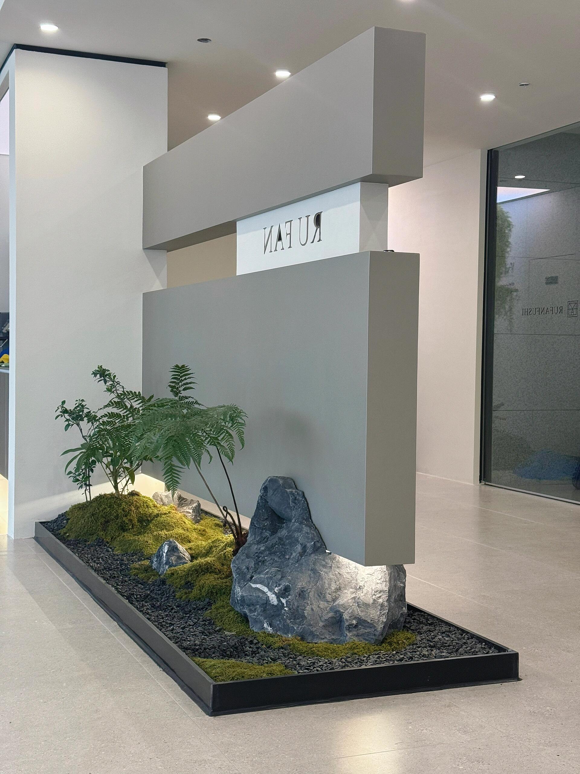 公共空间着力体现电子元件产品的精确性和稳定性带来的冷静感,办公区及展厅则体现人文关怀的友好感。办公区域是内部人员长时间活动的主要区域,在冰冷的工业园区内迫切需求有温度的办公环境,可以有效的缓解工业厂房带来的冷漠感与紧张感;自有品牌的白色小厨电展厅切合产品属性,强调亲切感与友好感。