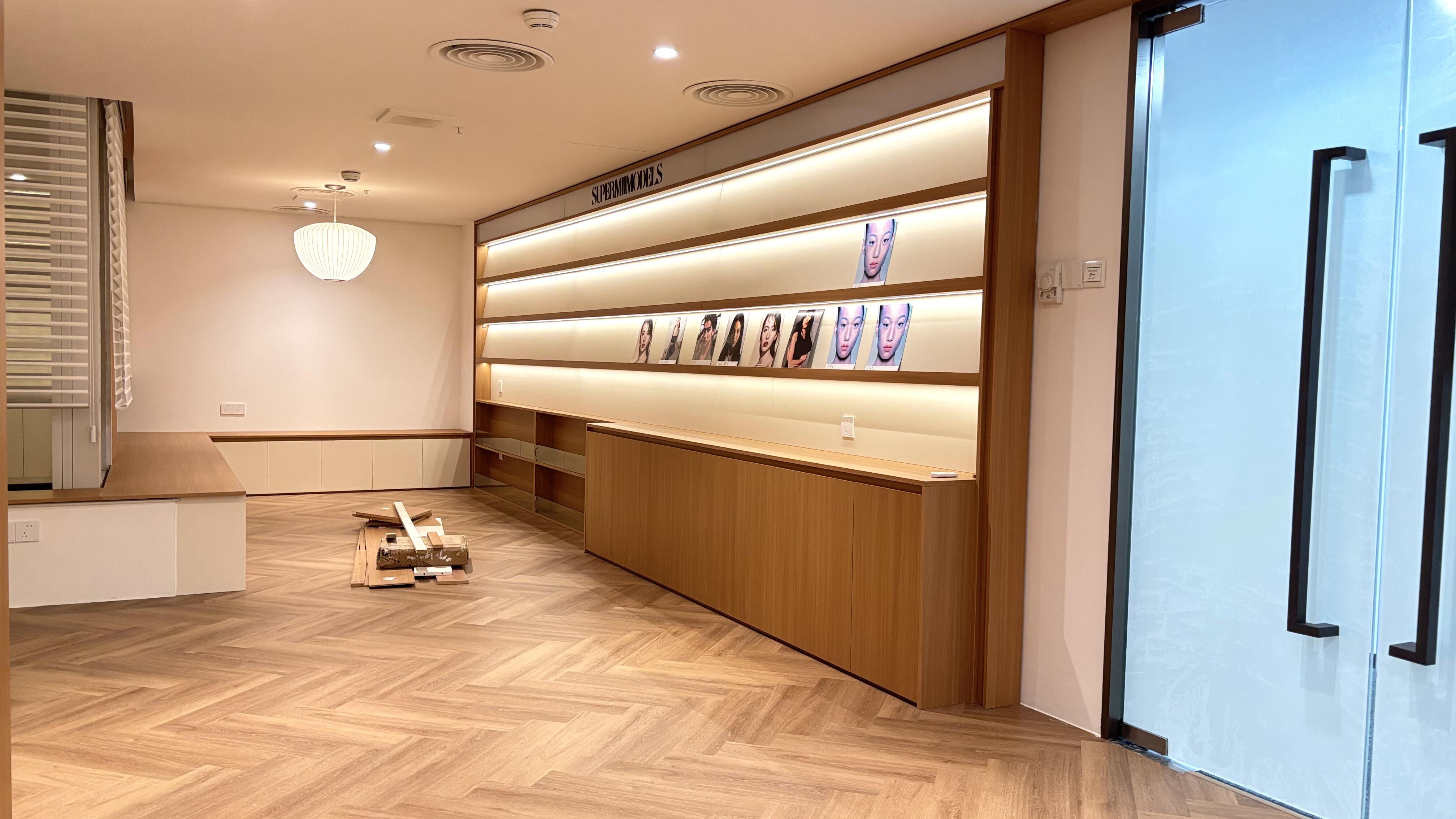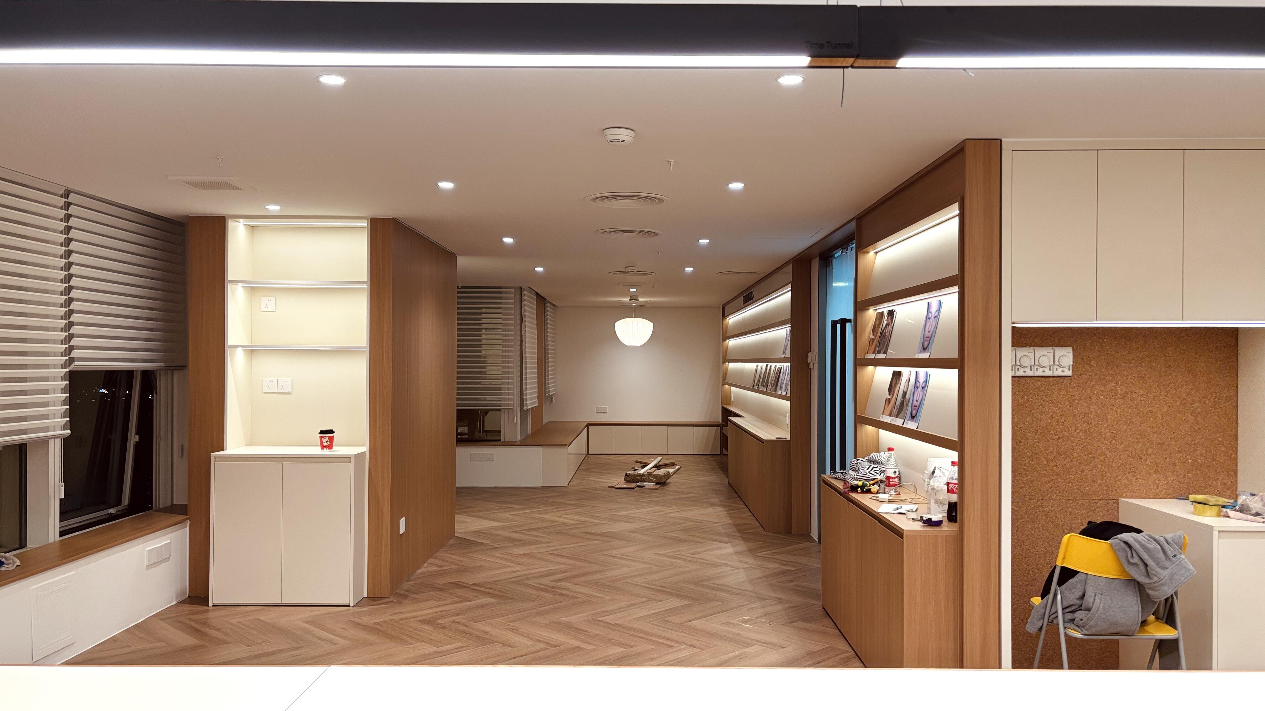 灯带借助U型型材固定,端头鱼线或钢丝固定于天花检修口出,未来更换等待时,底部新旧灯带连接,顶部拉动钢丝换新灯带