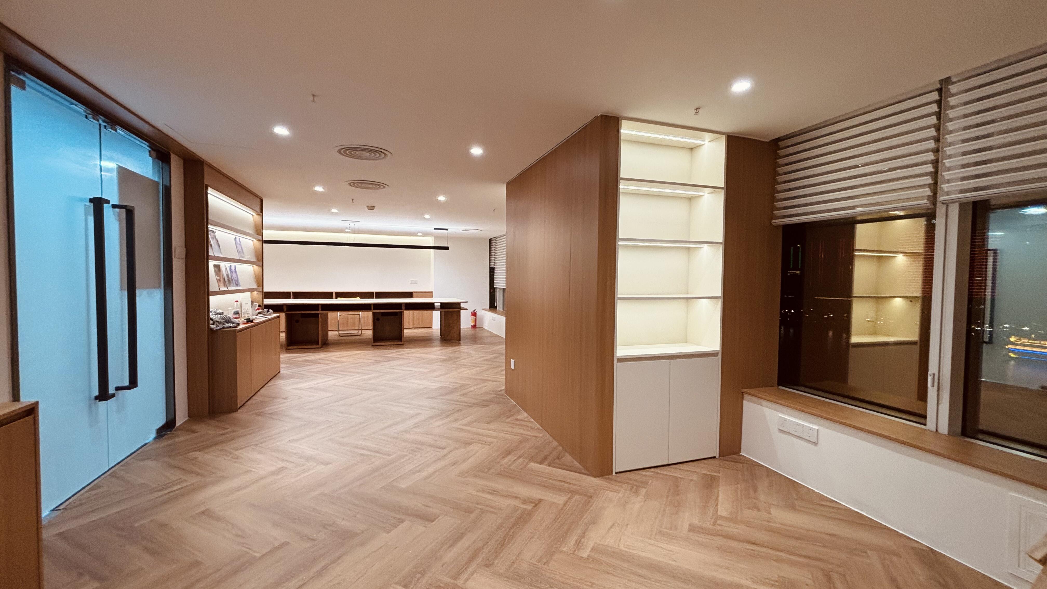 a.软管灯带竖向均匀布局,天花及地面基座各预留检修口,便于未来灯带维修