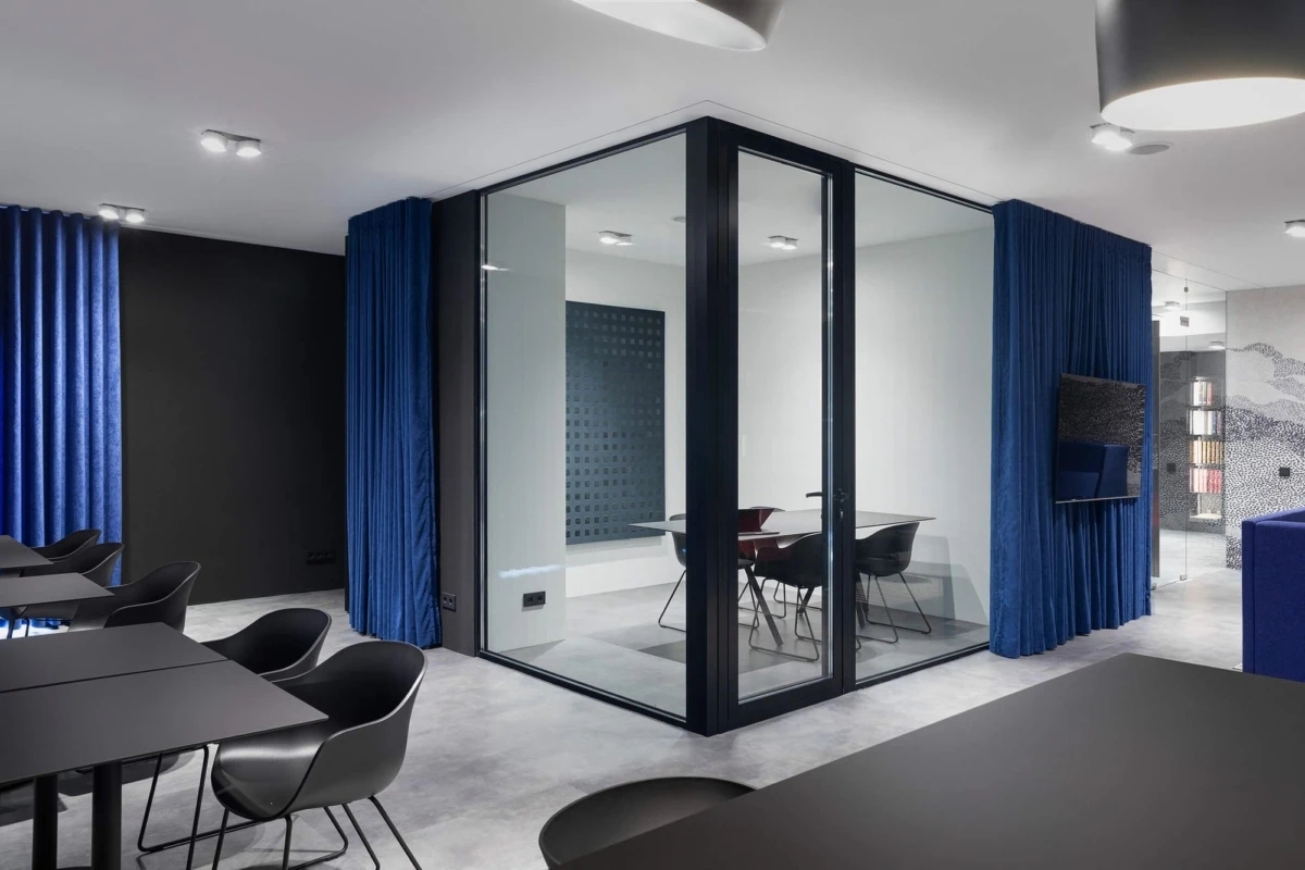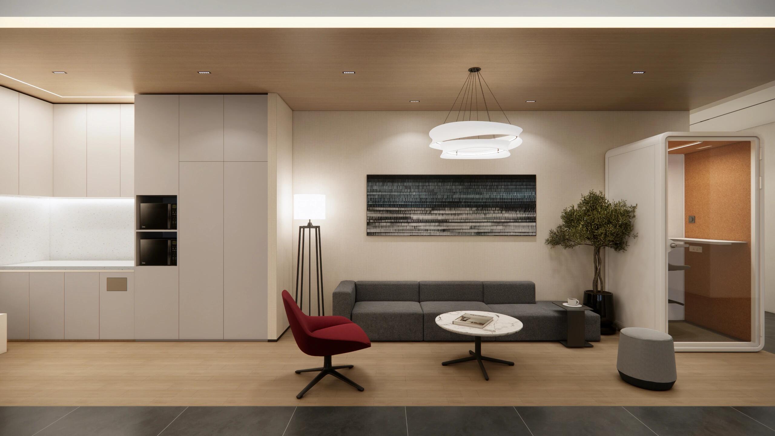 Domko的办公室设计的另一大亮点就是空间的流动性。设计师通过巧妙的布局和可变的隔断,使得每个区域都能够根据需求进行轻松转换。例如,快速会议和公司演示可以在指定区域进行,而大型活动则可以通过重新配置空间,容纳更多的参与者。这种灵活的空间设计确保了员工和客户无论在任何场合下都能拥有一个高效、舒适和愉悦的体验。