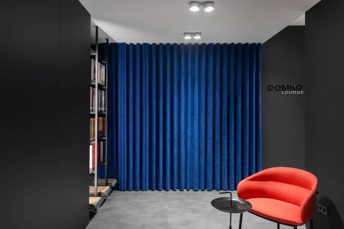 Domko的办公室设计采用了极简主义的手法,运用深色调的墙面、精致的材料和简洁的线条,打造出了一个既舒适又专业的空间。黑色和灰色的基调充满现代感,带来了沉稳与内敛,营造出一个适合多种办公活动的环境。这种设计语言与Domko品牌形象的高端和专业气质相得益彰,展示了品牌对品质和细节的执着。