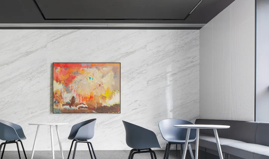 采用了一体化高质感透光薄膜天花照明,它不但能均质散光且延展性极佳,它能根据工作特点,适时模拟白天与黑夜的不同照度需要,这一设计,不但重新解构了传统天花,将照明与空间合二为一,也创造简洁优雅且自然舒适的新空间体验。
