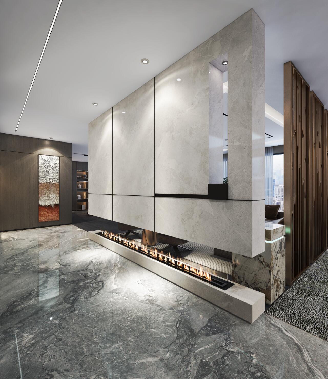 冲破造型堆叠与繁琐的束缚,呈现低调、宁静和沉思。运用艺术性表达空间的哲学,婉约地将艺术感与空间的气场共融,使得维度内的线条表达与意识存续变得流动而自由。