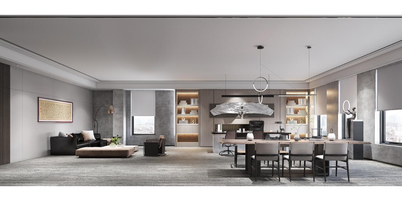 将用模块的概念将传统办公模式与未来办公相结合,也在于其通过对细节的优雅展示,将中国艺术元素运用其中,从而产生一个具有“场景性、互动性、开放性”的富有生命力的现代科技智能化的未来式办公空间。