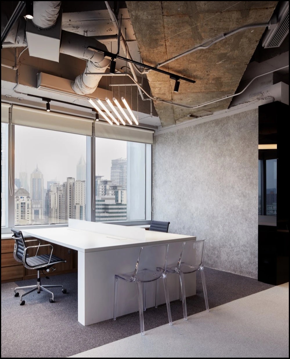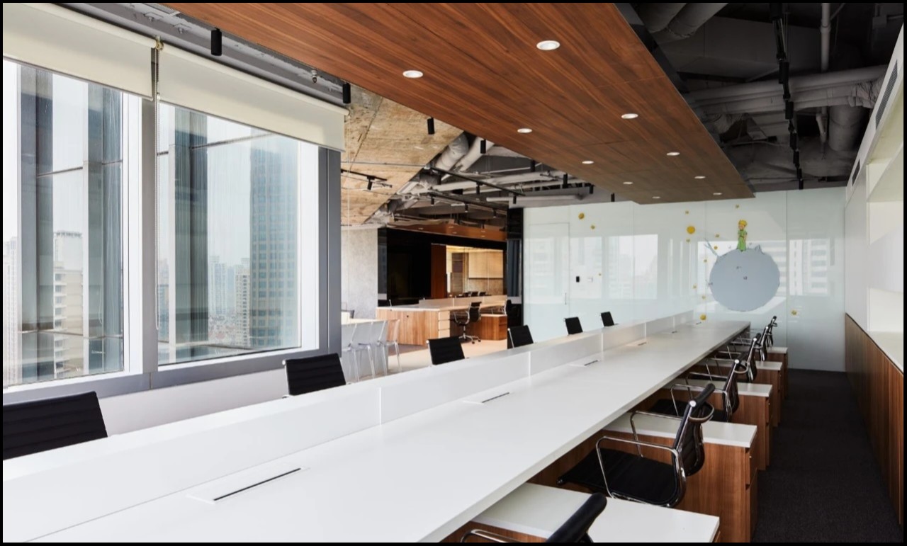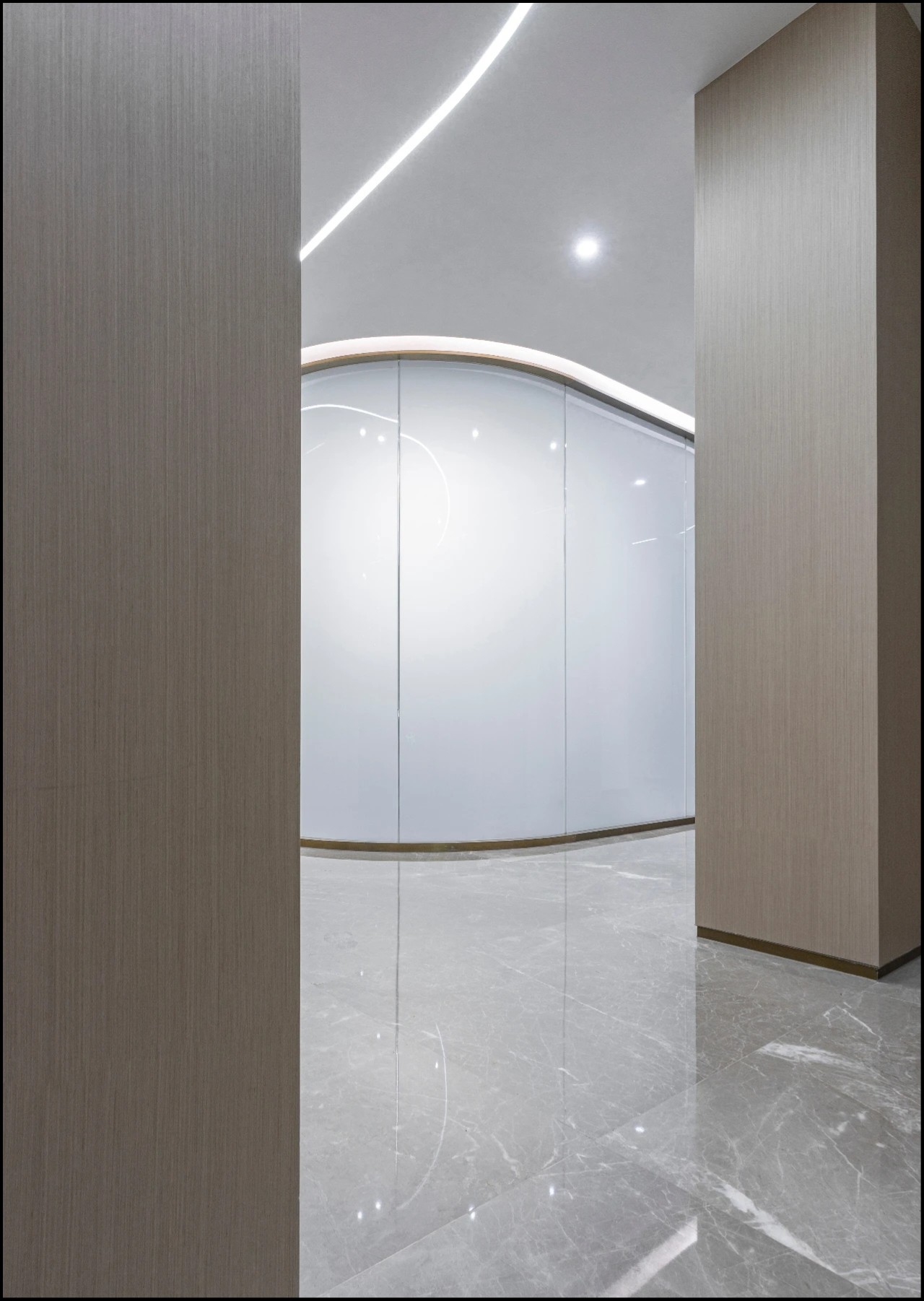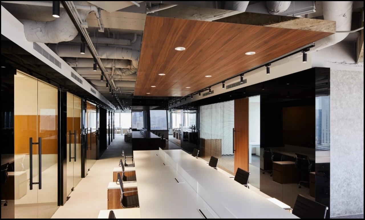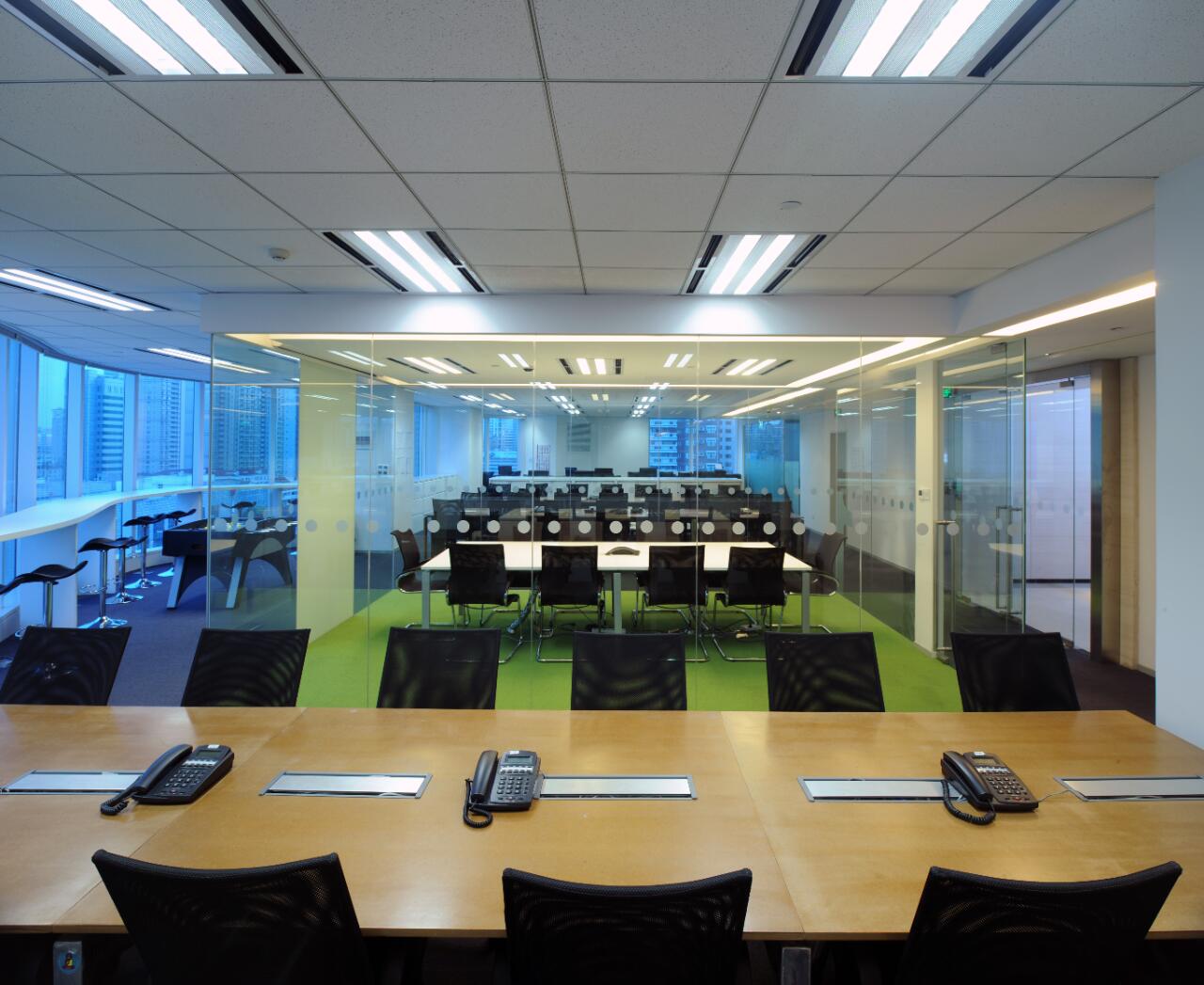 中式的茶室起到空间的点睛设计,不同办公区的设计,以木饰面为主调的空间传达的是素雅轻松的接待与洽谈功能,不浮于表面与浮夸形象。