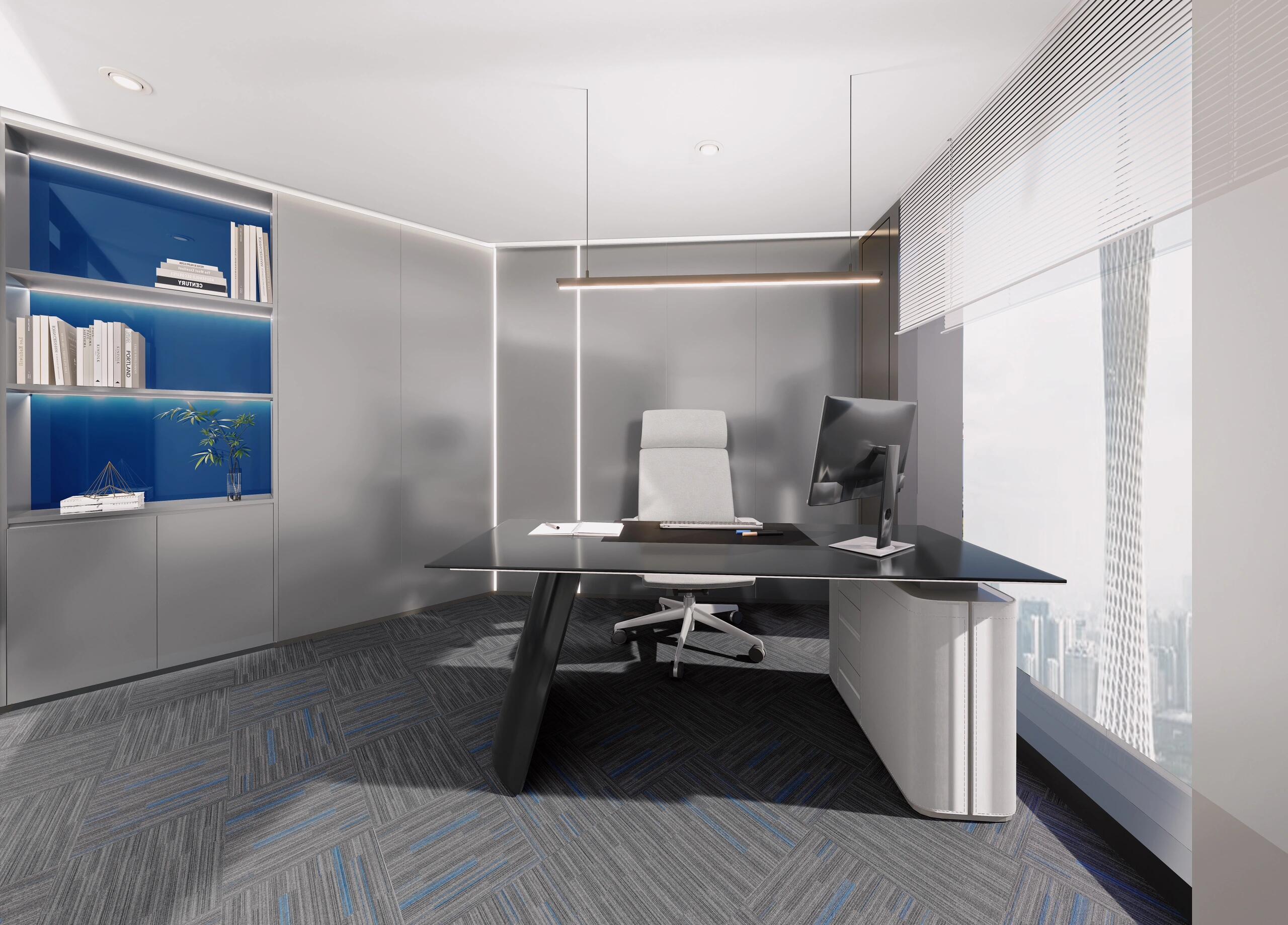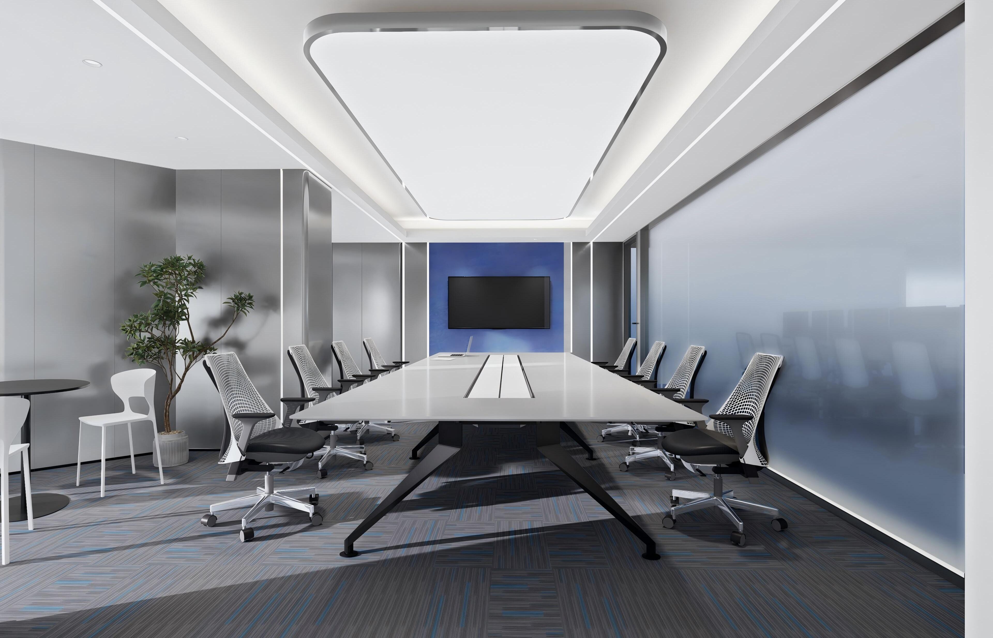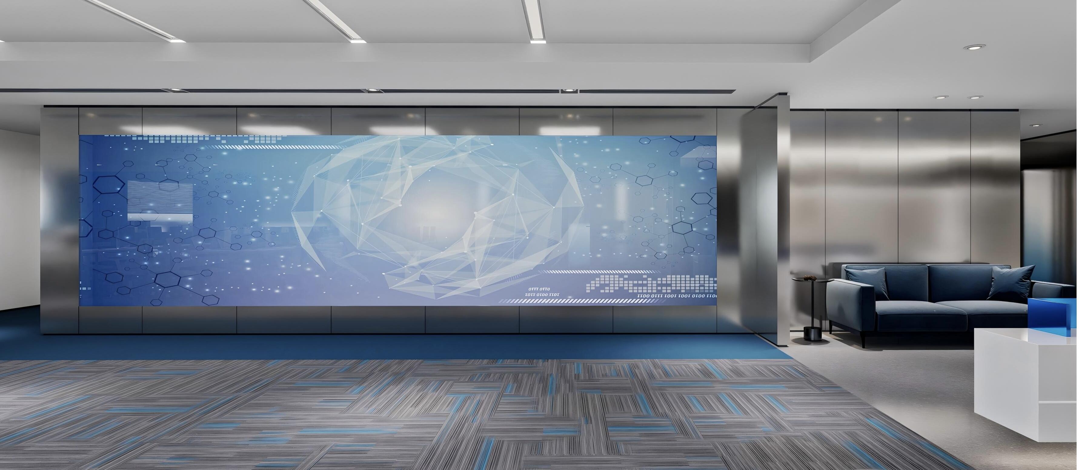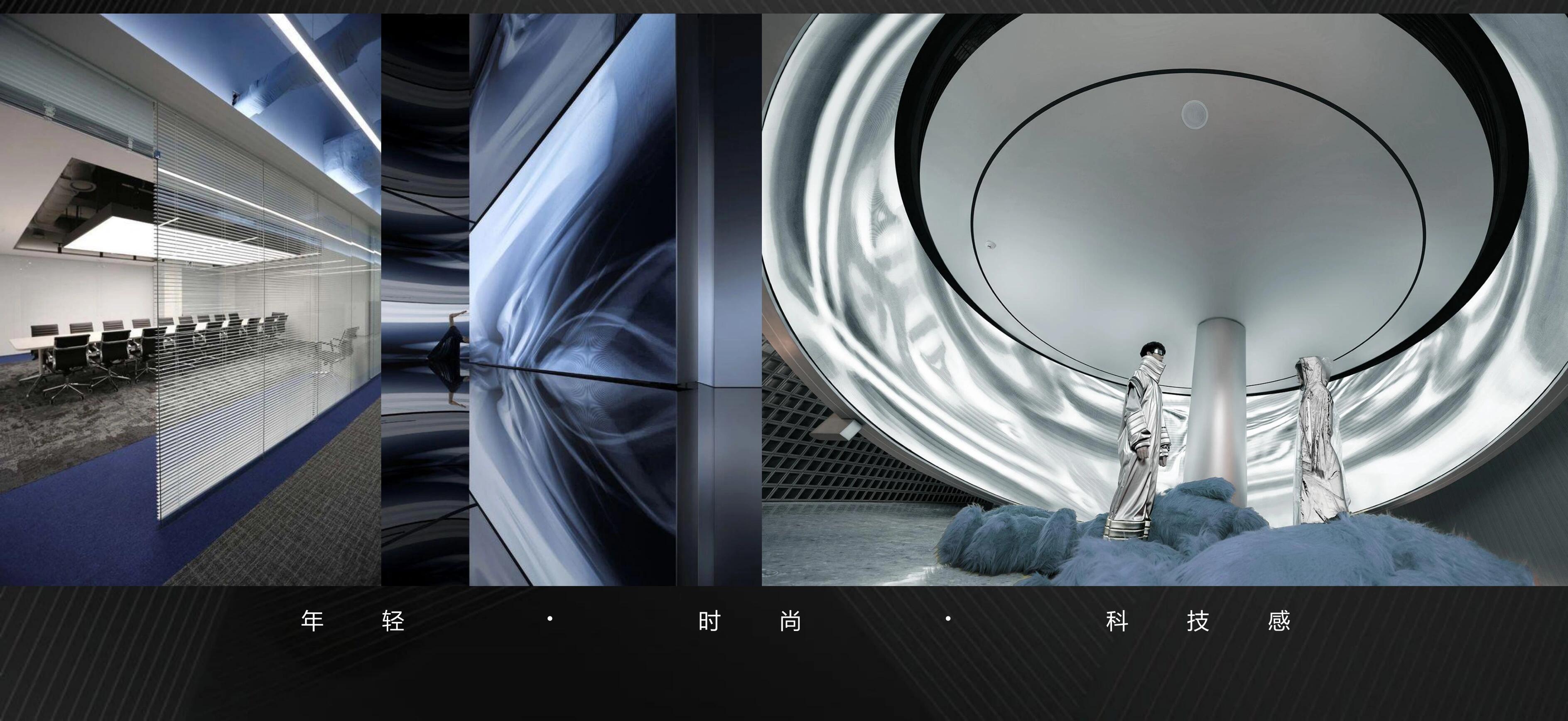 空间抽取网络光纤元素,配合建筑多层分割的手法,使用代表网络的蓝色调性以及代表科技的金属铝板为空间主要构成点,规整而富有层次感的空间规划,营造一个科技,年强又具有时尚感的空间环境。融入企业理念和价值观,体现企业的高新属性。