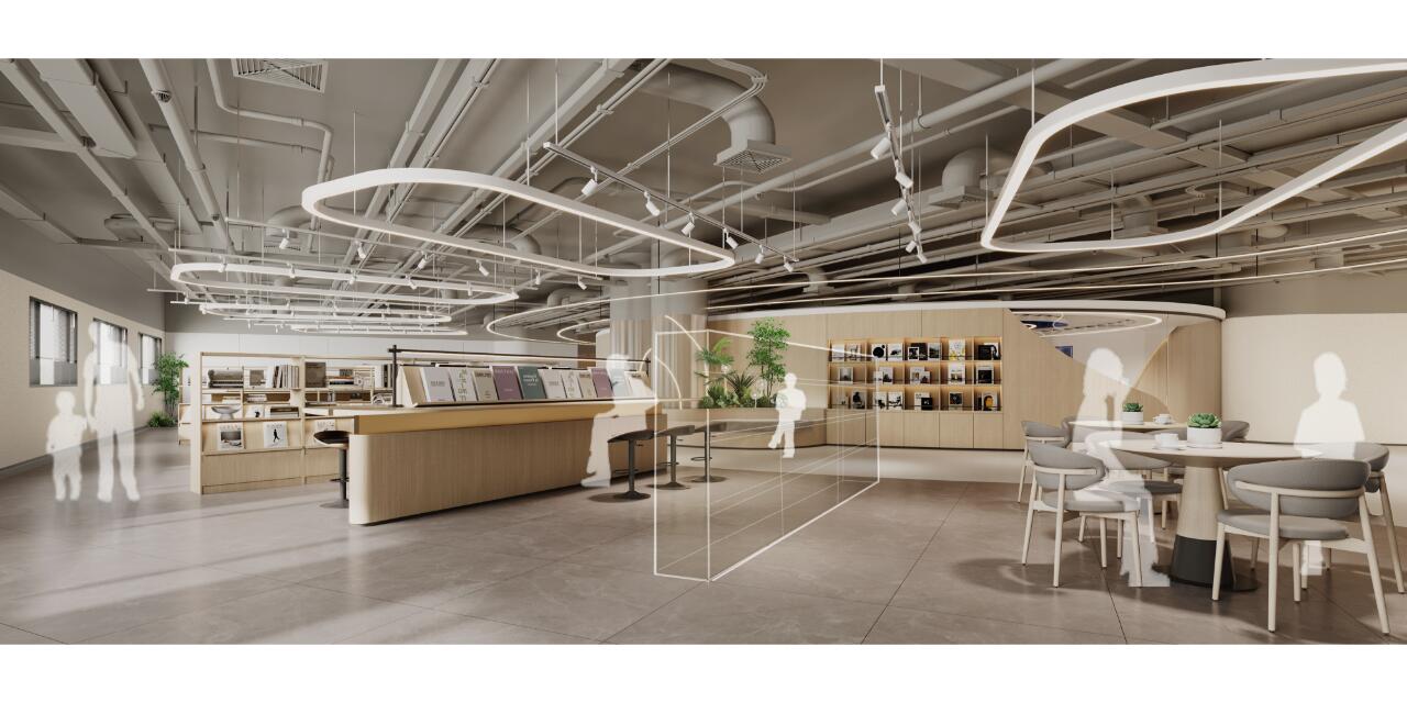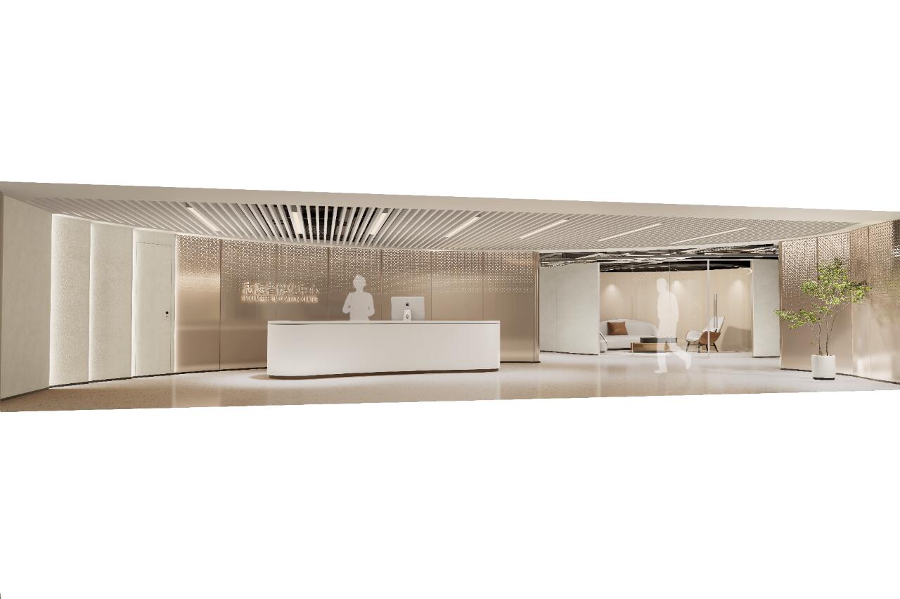 培训孵化区空间延续了展厅的主题元素引入变换成空间线条,以温润的木饰面为空间主色调加深了受众群体对志愿者团体的温暖凝聚力的形象。