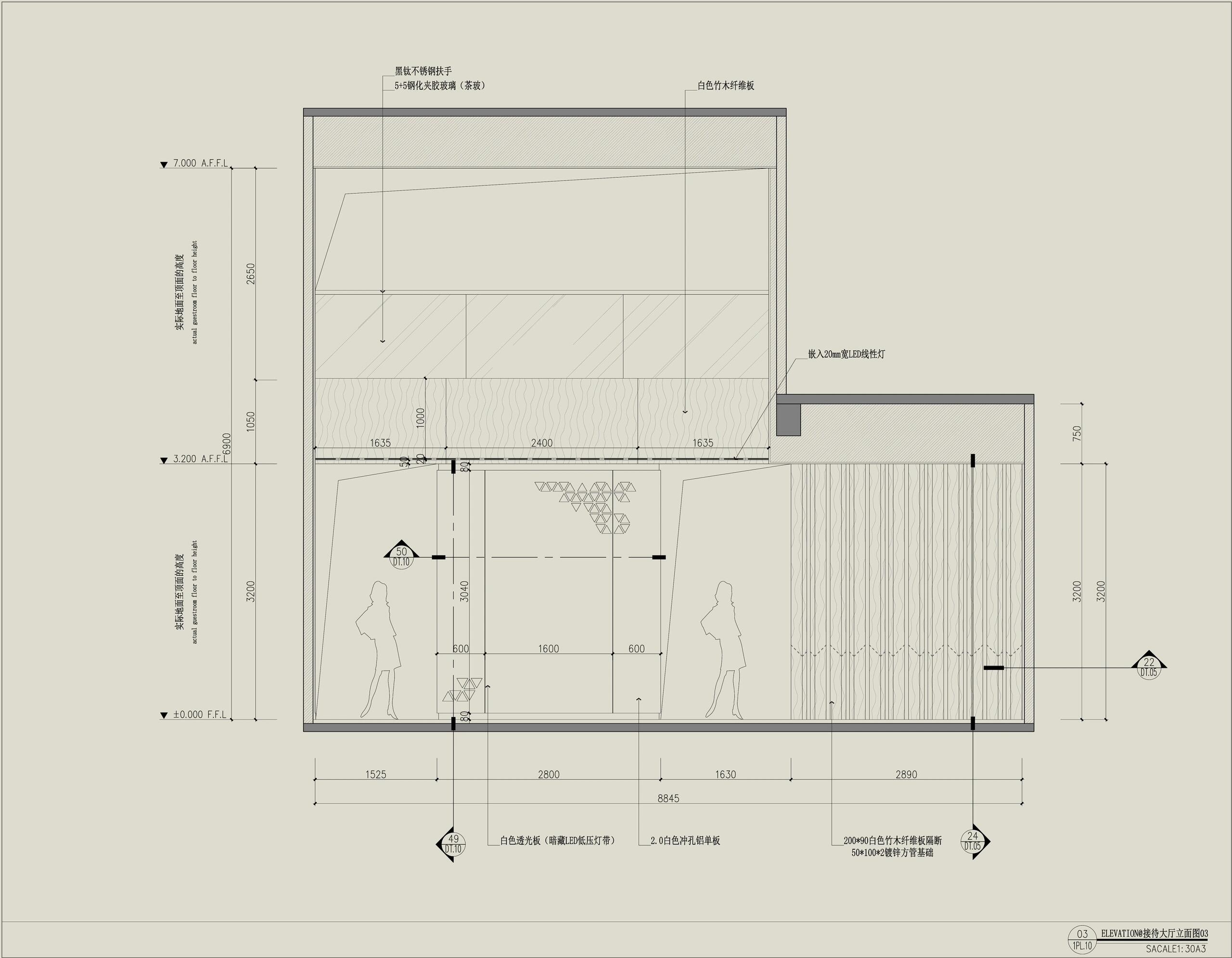 基础采用轻钢龙骨框架,搭配木工板,表面钢化烤漆玻璃贴面打孔穿线 logo 内嵌Led灯带,不锈钢烤漆内嵌亚克力背光字
