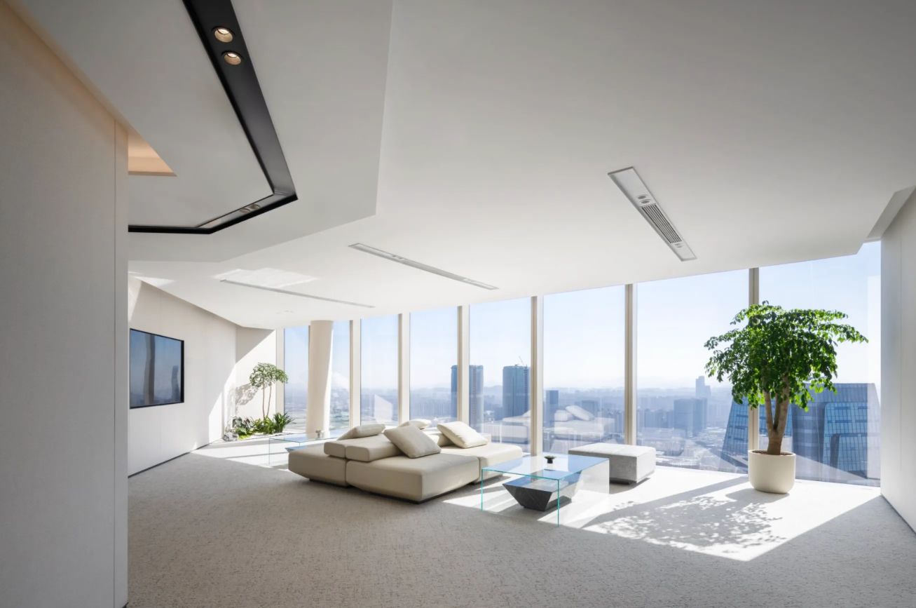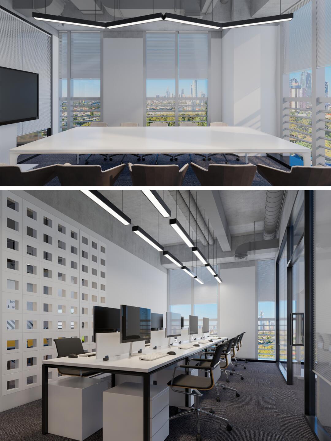 灯光设计是整个空间的关键部分。我们采用了柔和的灯光布置,避免了直射的强光,营造出一个舒适宜人的工作环境。同时,我们还为一些区域提供了可调节亮度的灯光系统,以满足不同场景的需求。