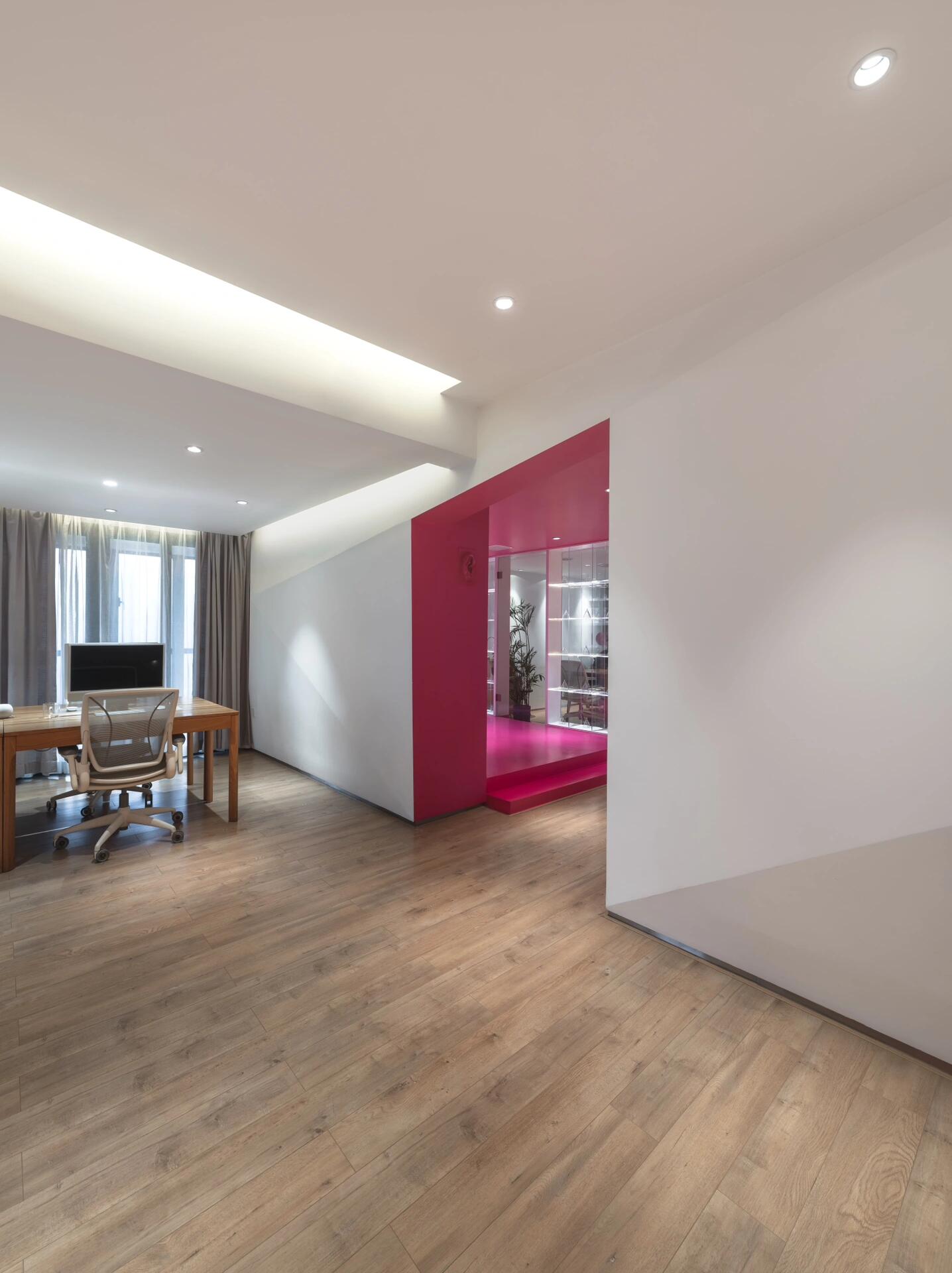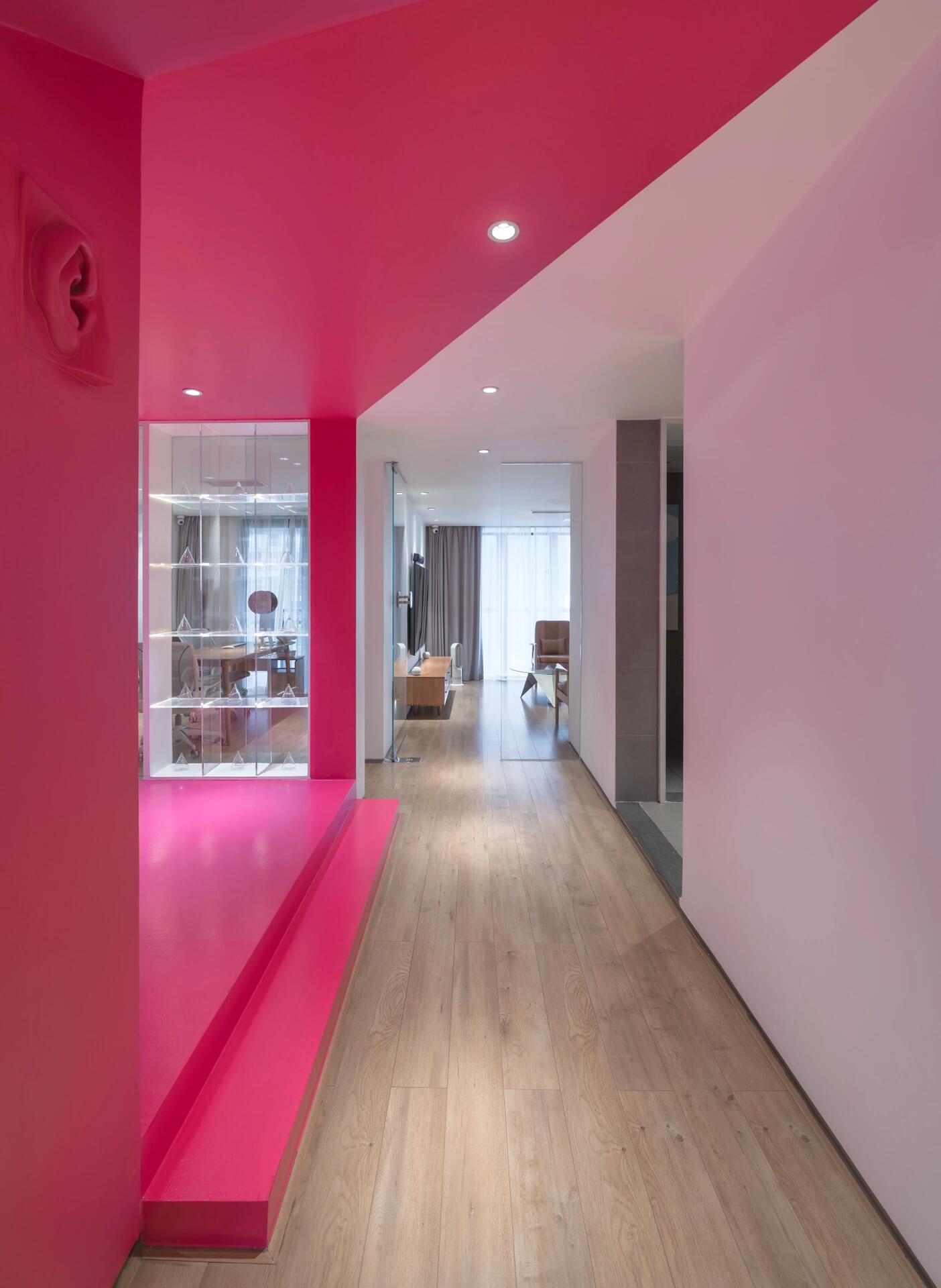 整个空间以明亮的蓝色为主色调,这种色彩既代表了沉稳与信任,又充满了活力与创新。我们通过在蓝色基调中加入温暖的木质色和灰色调,来平衡整个空间的色彩,使之更富有层次感。