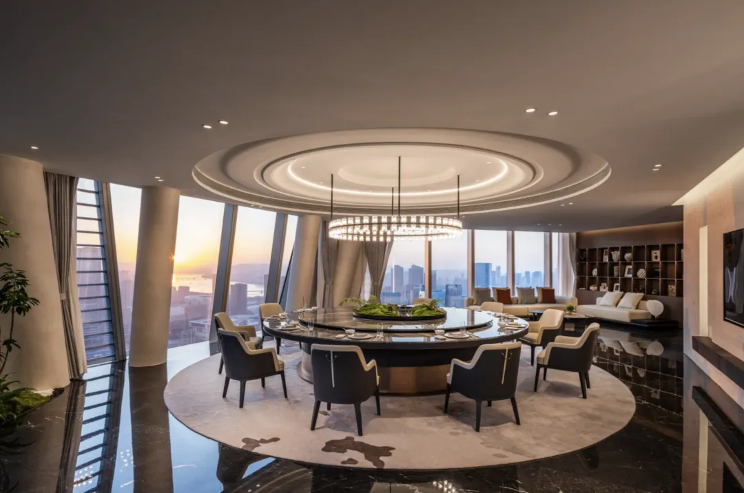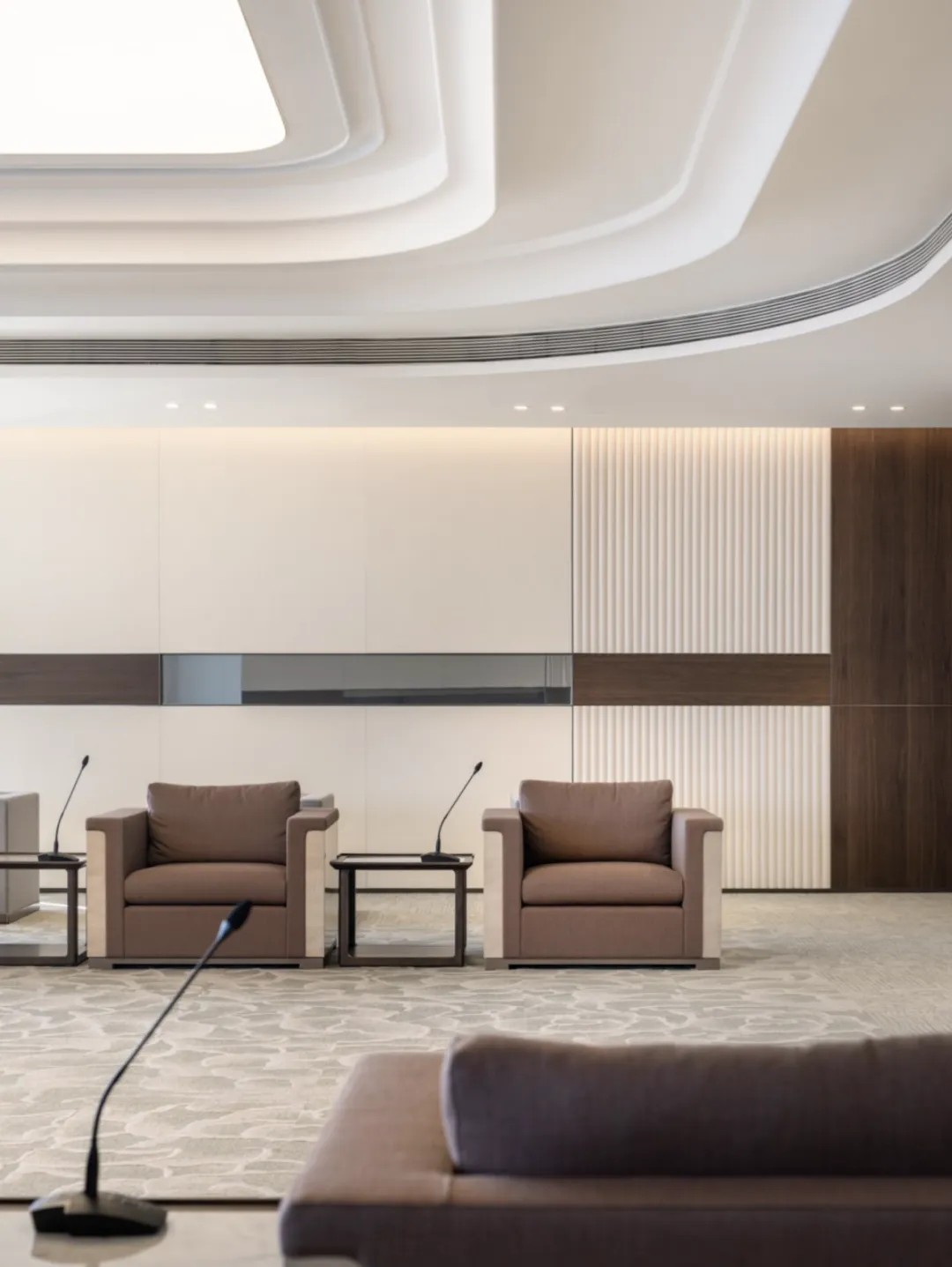 将宋瓷的形态元素融入空间细节中。宋瓷的弧形线条优美而富有变化,我们巧妙地将这些元素运用在天花造型、墙面收口等多个细节之处。这些弧形元素的运用,不仅强化了空间的整体性,还丰富了细部的视觉效果,使人在其中能够感受到一种流动而和谐的美感。