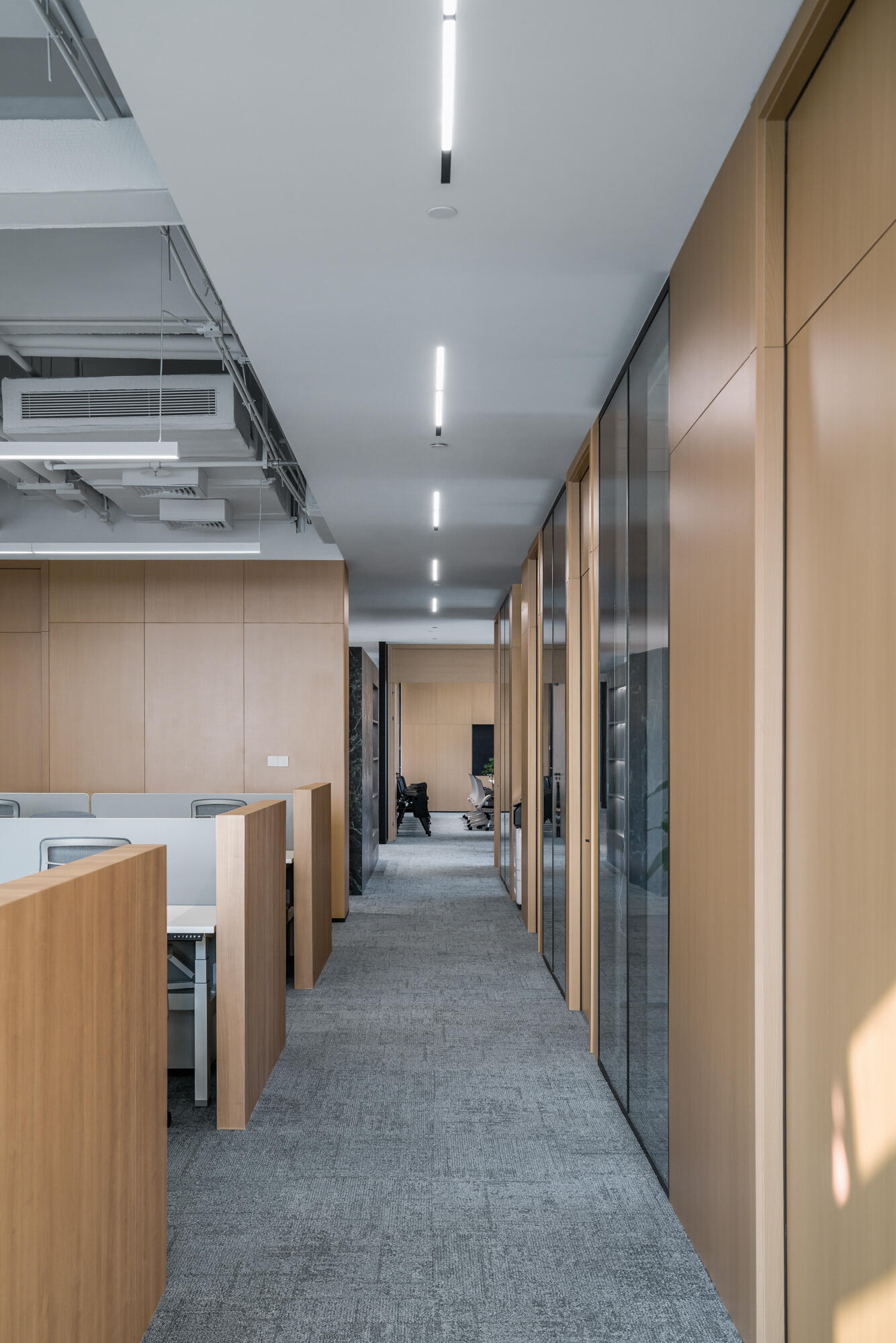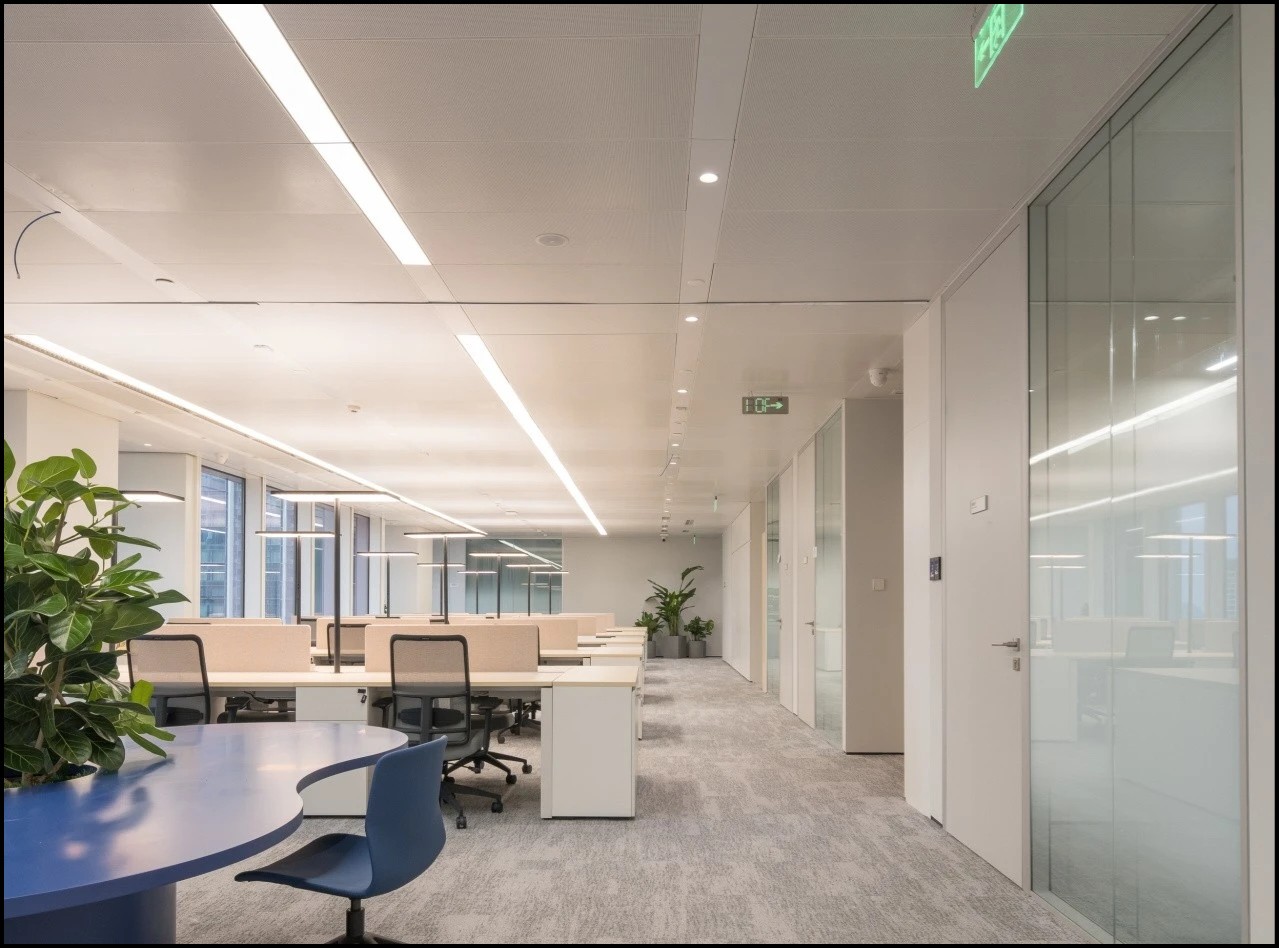 办公楼的空间设计则打破了传统的大开敞空间形态,引入了街区的概念,通过墙体的分割与重塑,创造出新的交通流线、功能区域和空间节点,营造出既私密又开放,同时相对自由的办公空间。