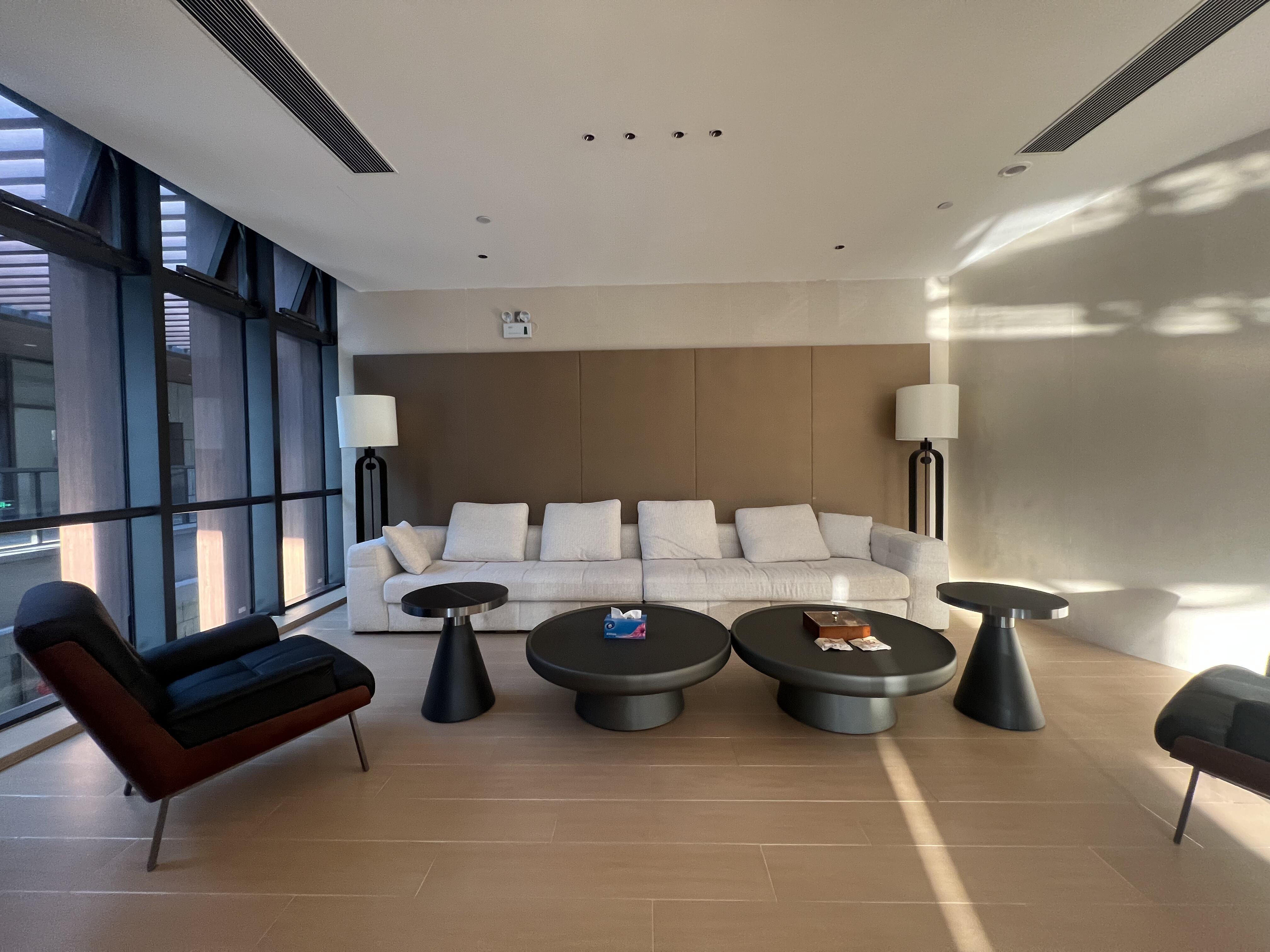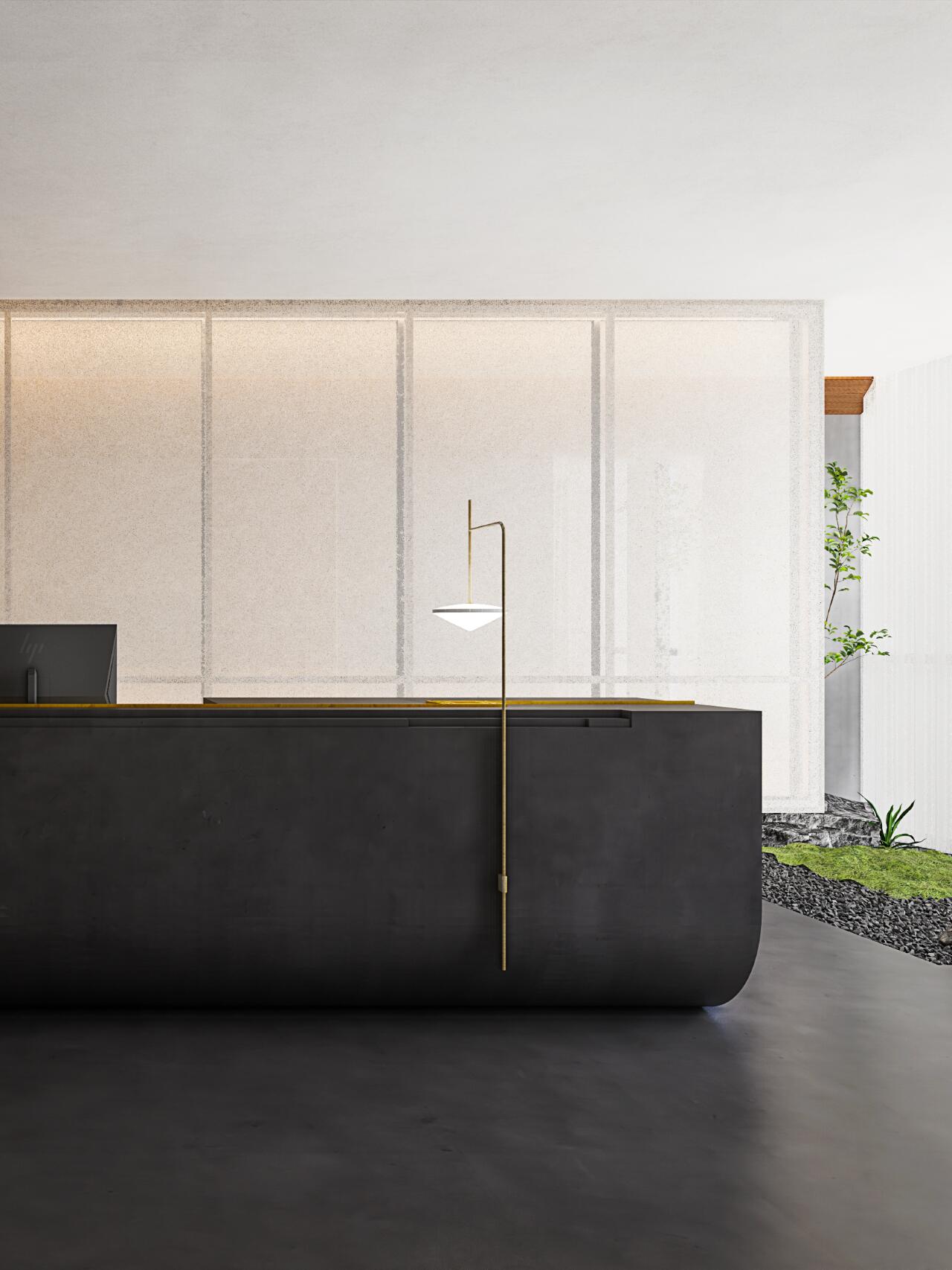 休息区分为两部分,一是茶室,二是开放式吧台空间。过道静谧而诗意,串联起区域关系,转至茶室,淡然茶香与东方美学的余韵让人的步履也随之变得闲缓、宁静。