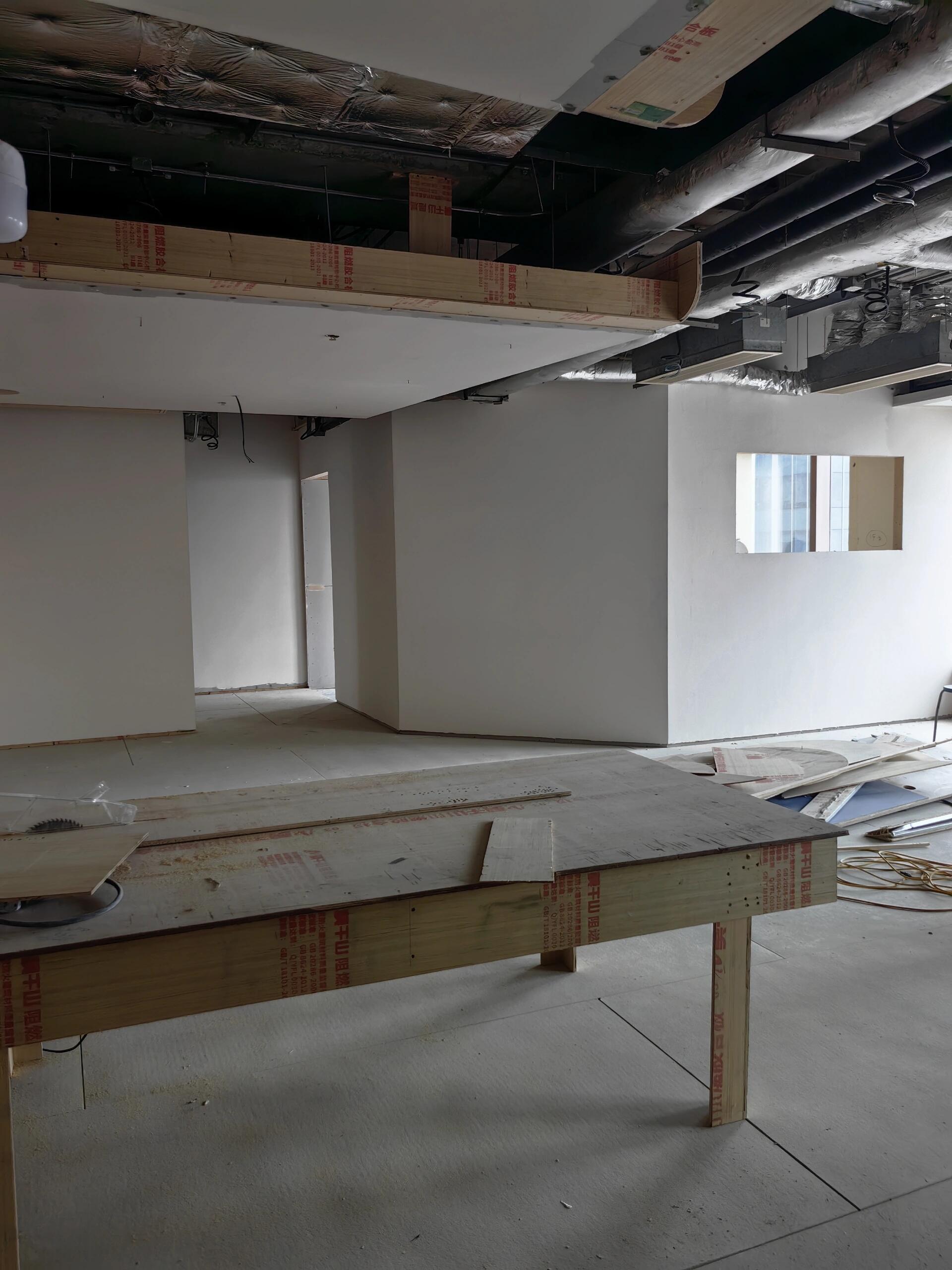 财务室的收纳系统与办公桌一体设计,L形的柜体,强调了空间隐私性,木色和黑色结合,节奏韵律感十足,让使用者形成关于美感和艺术的想象。