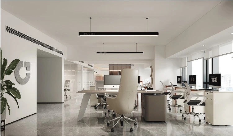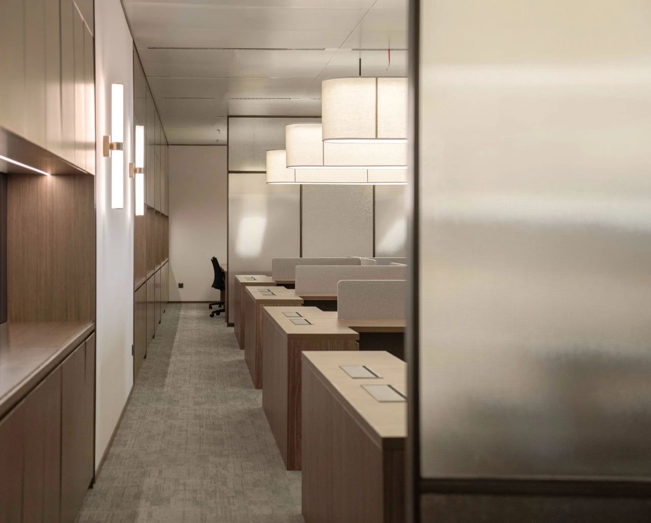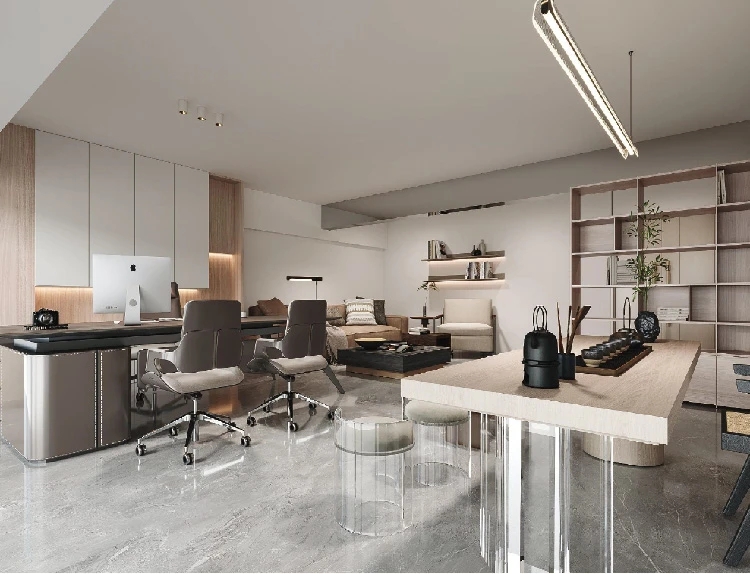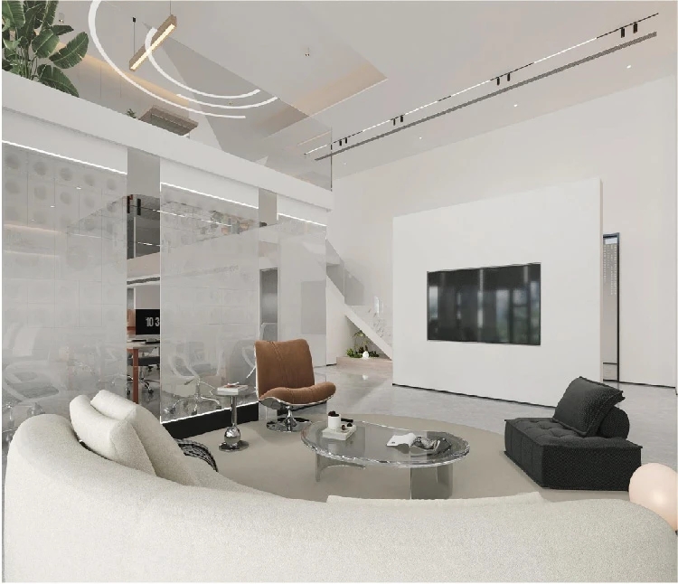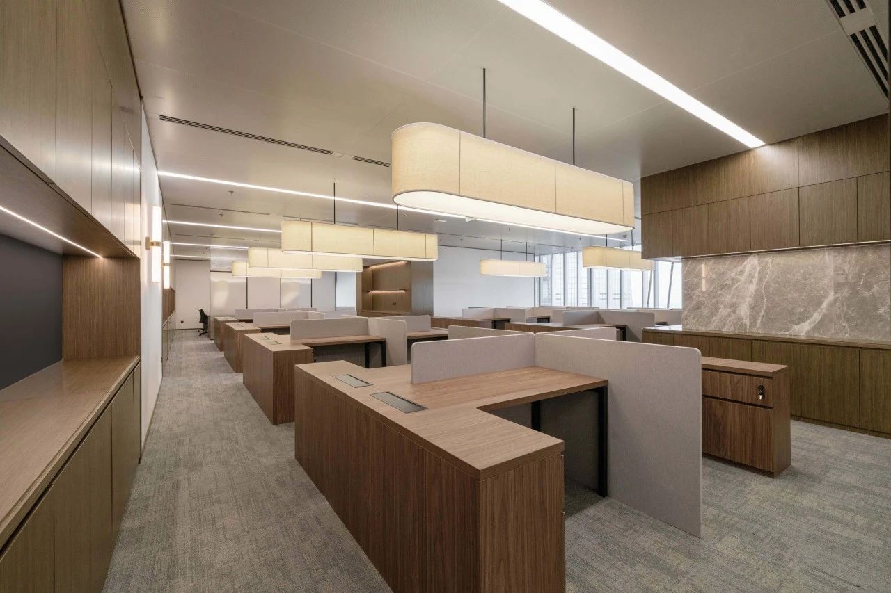 在设计中,我们融入了亲生物元素,通过自然材料的应用、充足的自然光引入和室内植物的点缀,营造出一个宁静宜人的工作氛围,有助于员工的身心健康。我们坚持低调而平衡的设计原则,避免分散注意力,使员工能够更加专注于工作本身,同时与团队成员建立更加紧密的联系。