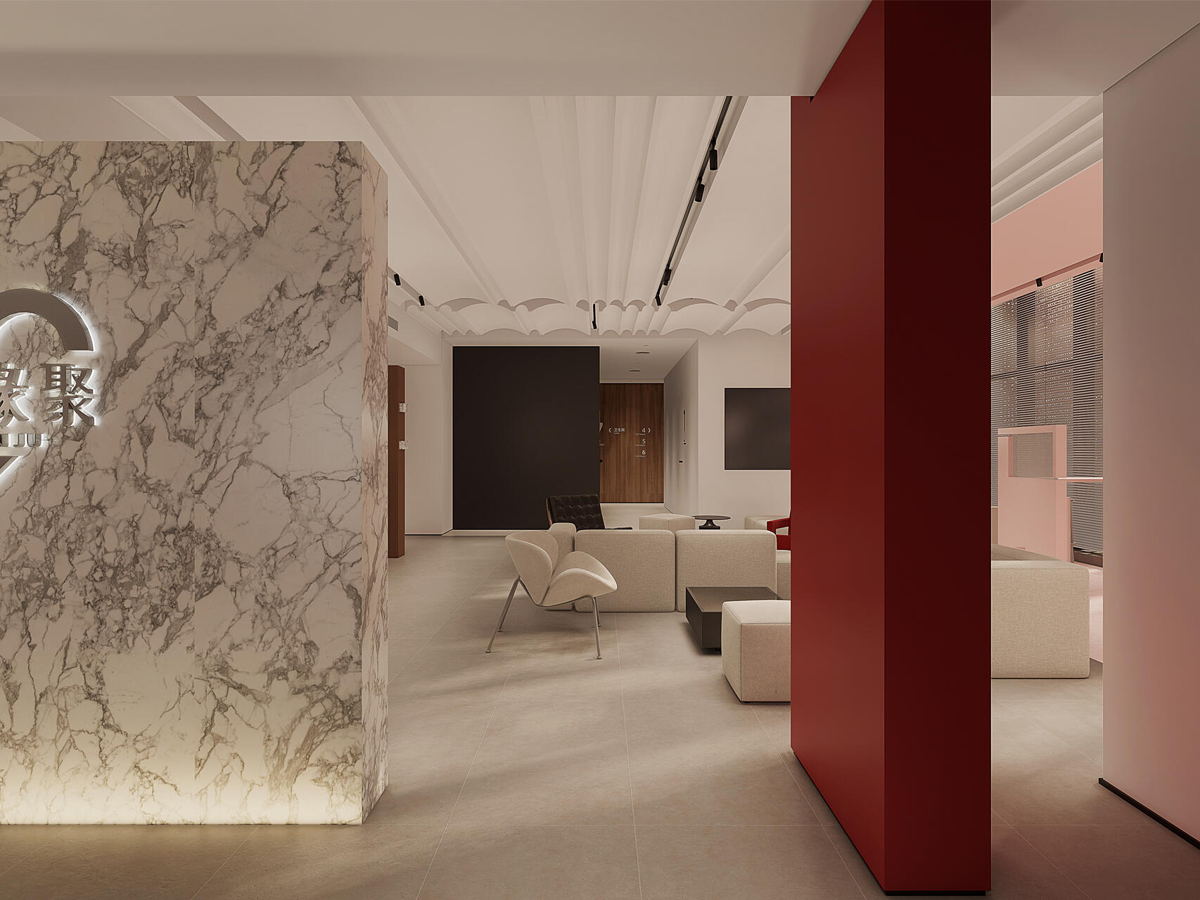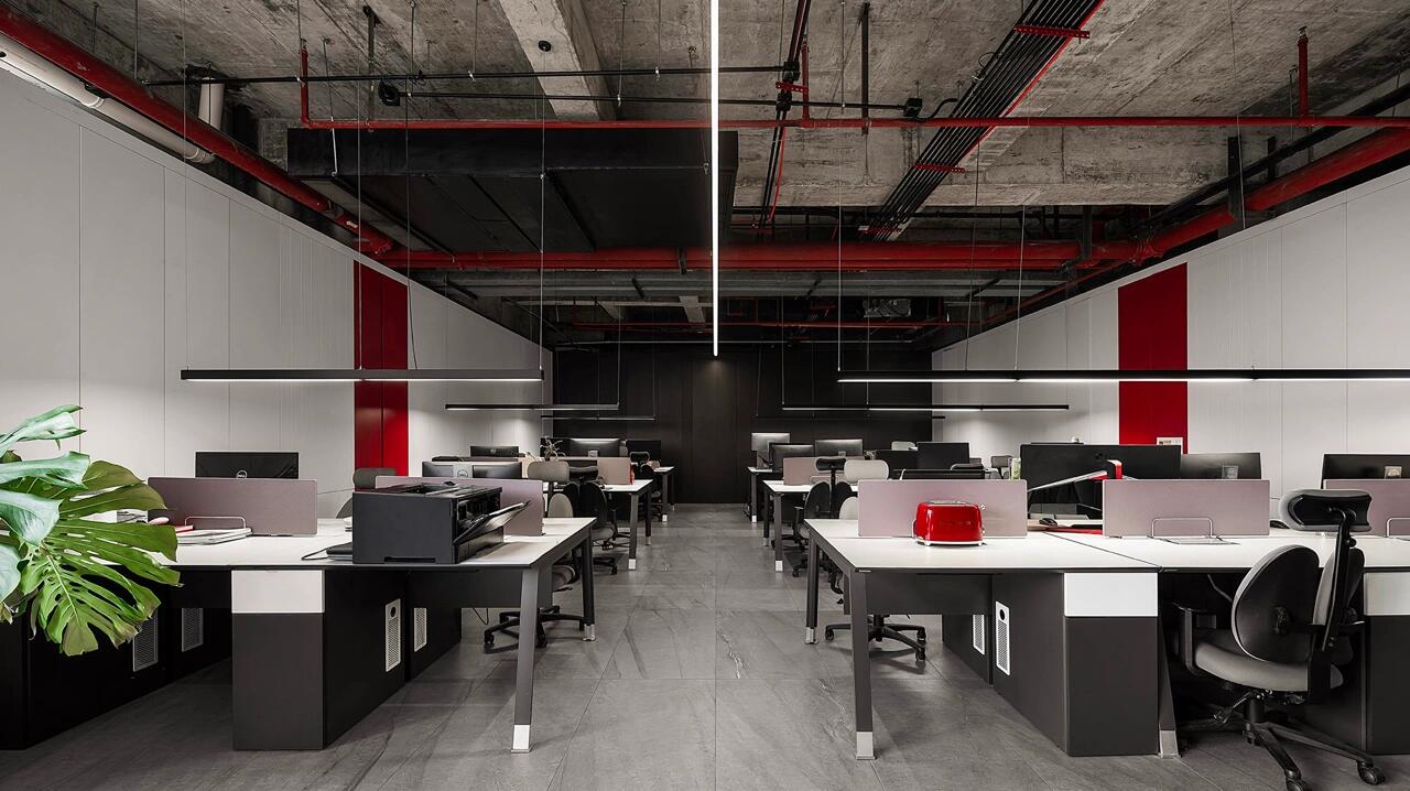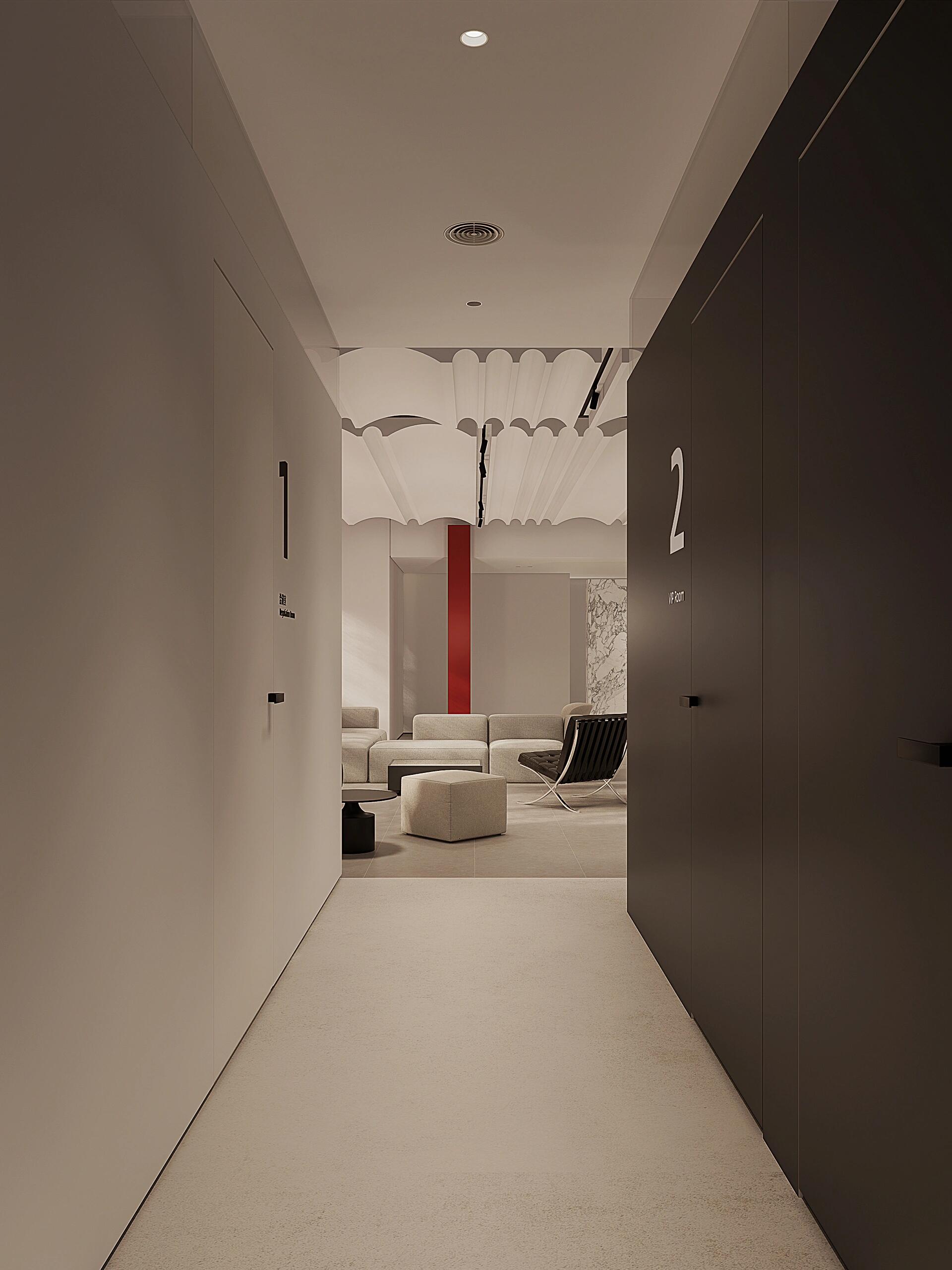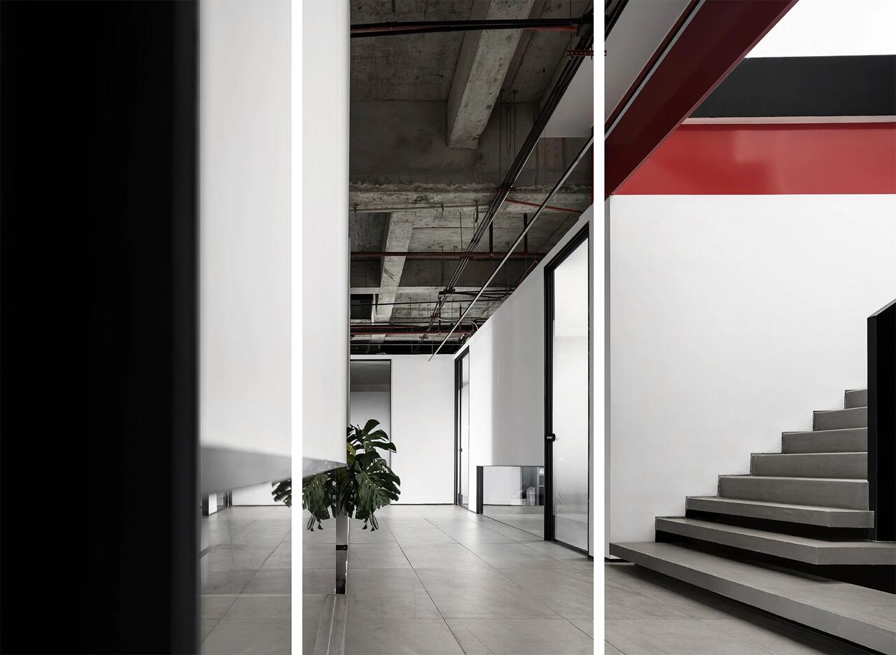以冷静的黑白纯色来延展空间尺度与艺术张力,红色代表热爱,活力,坚持,灵感,那黑与白则代表着精益求精,一丝不苟,孜孜追求……