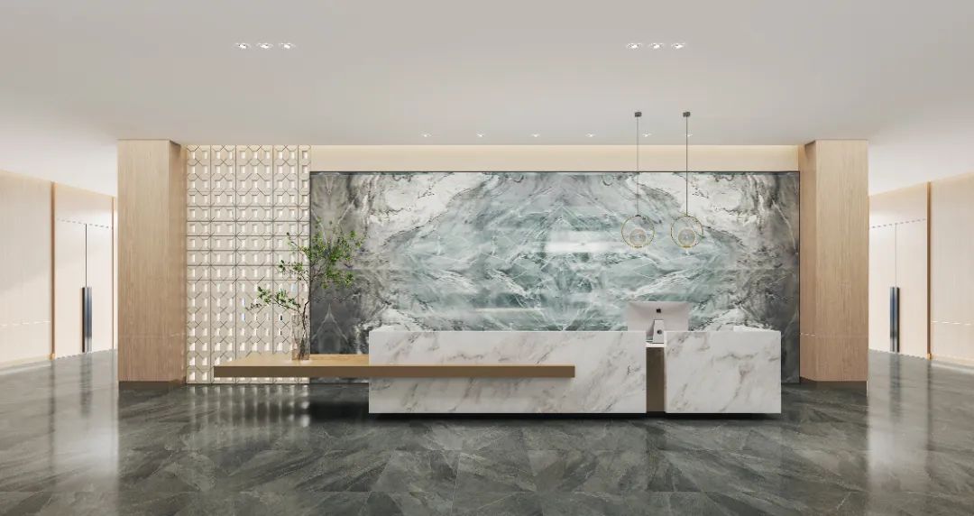 背景墙采用了大面积的大理石,其自然的纹理和色彩为整个空间增添了一种独特的艺术感和奢华感。