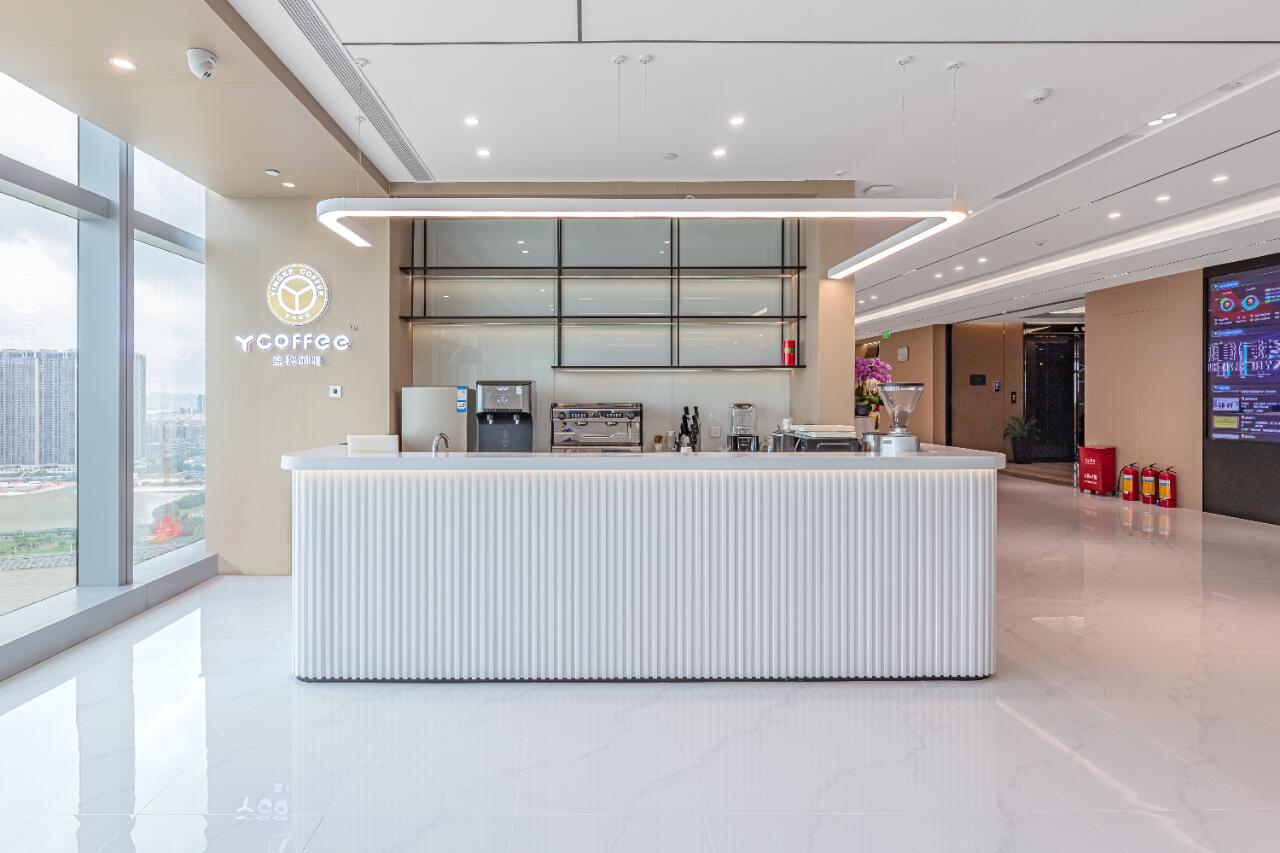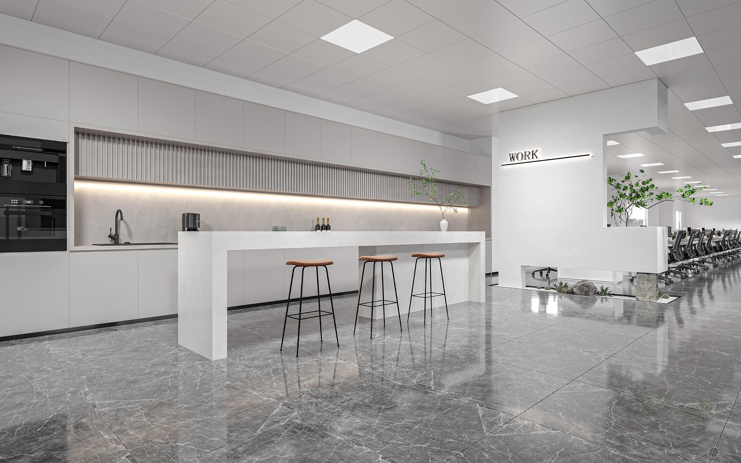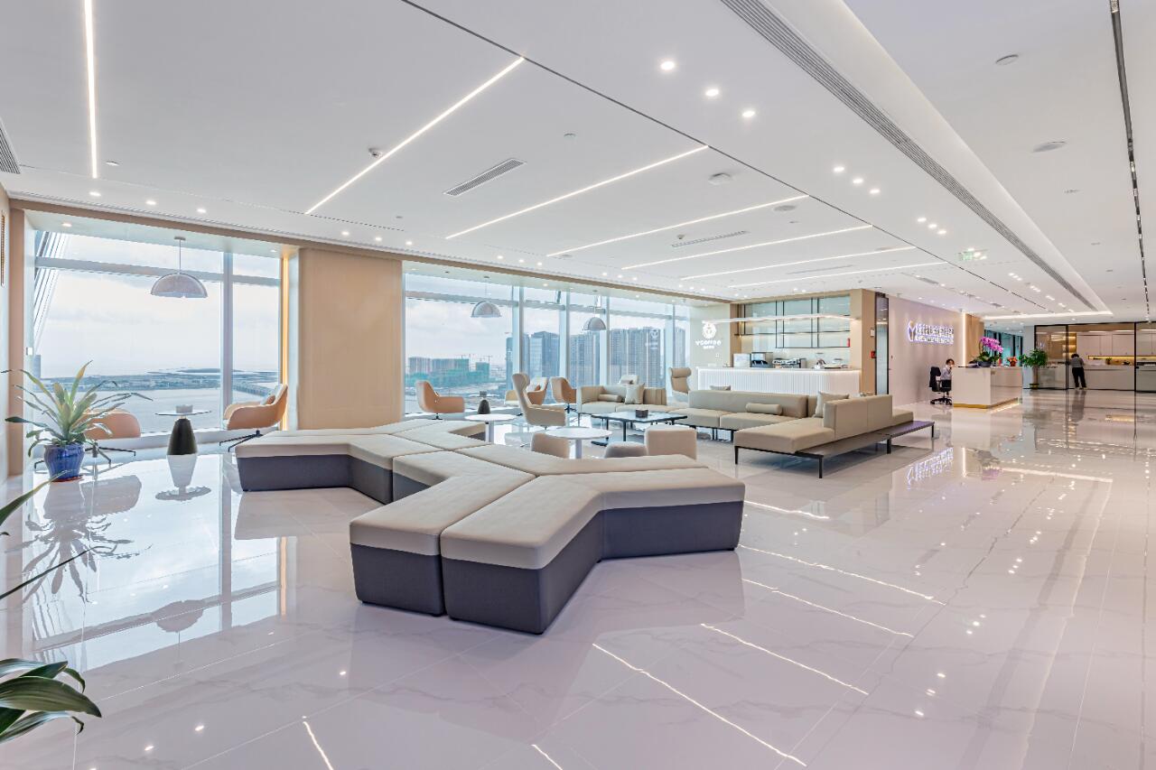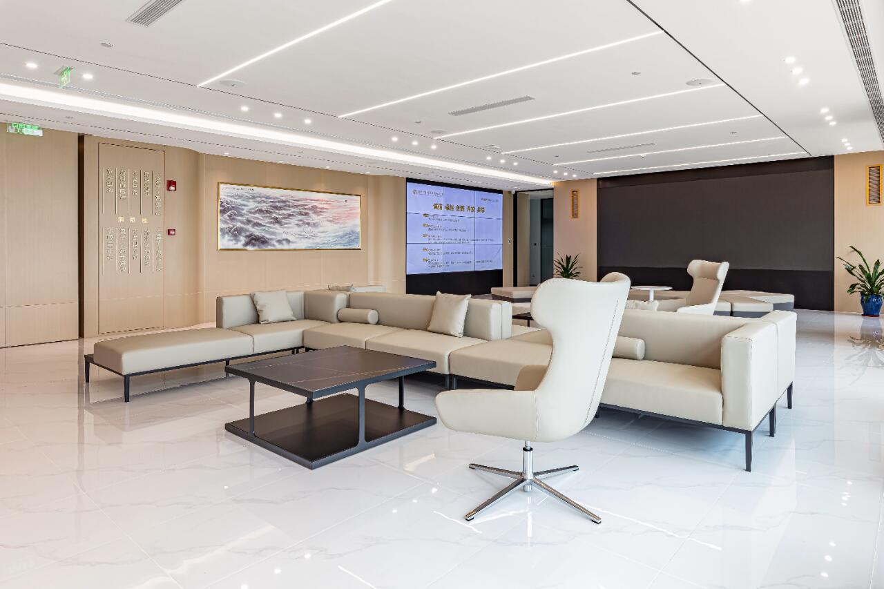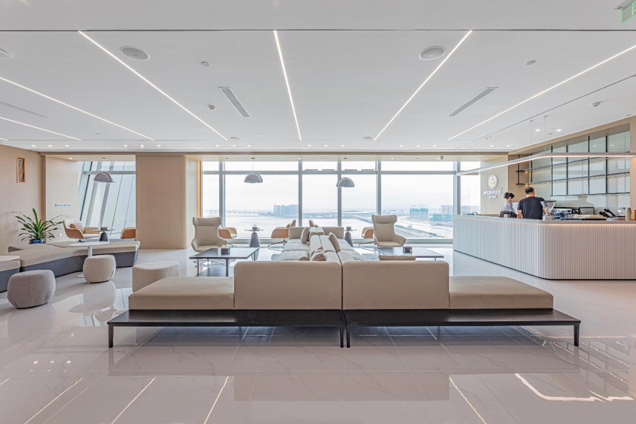 纯净的白色大理石纹理,丝丝生动的斜纹覆盖其上,搭配立体灯光设计,赋予大厅“艺术展厅”般的格调。