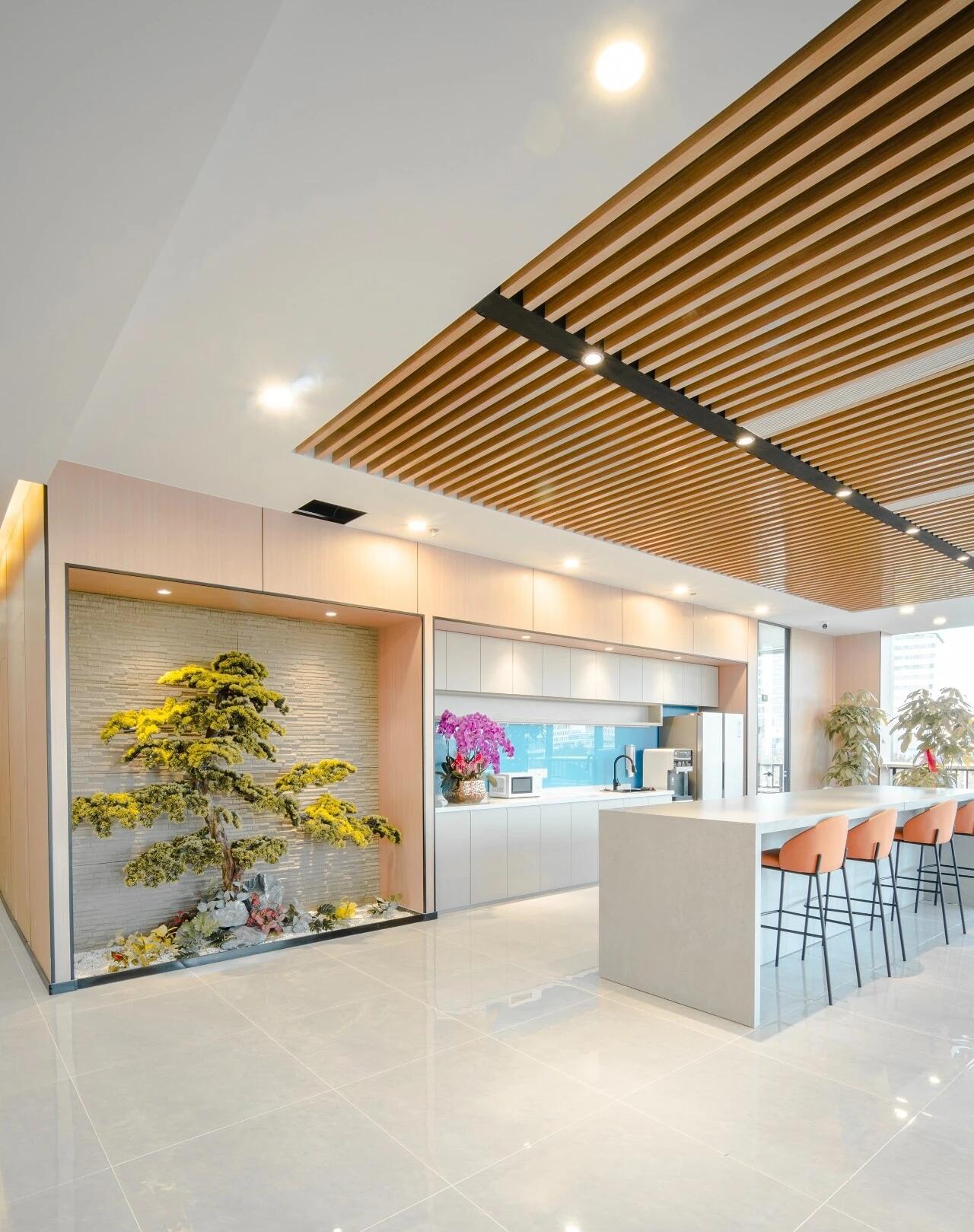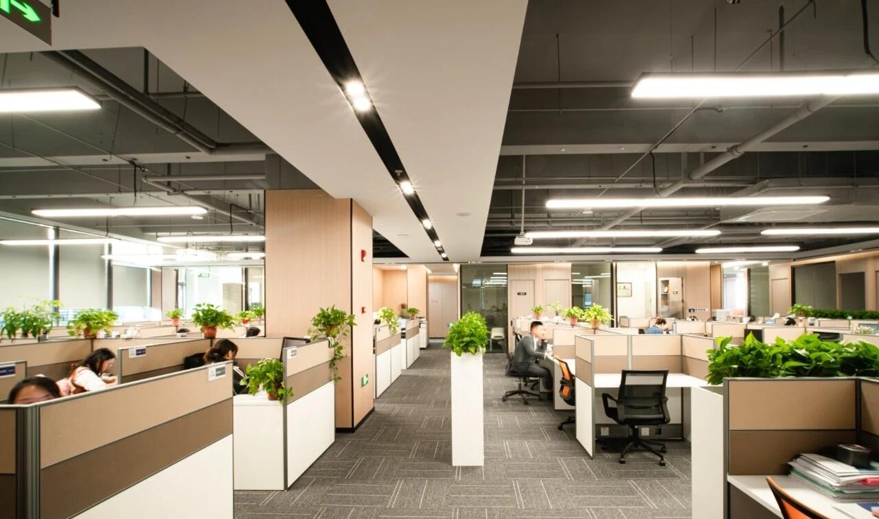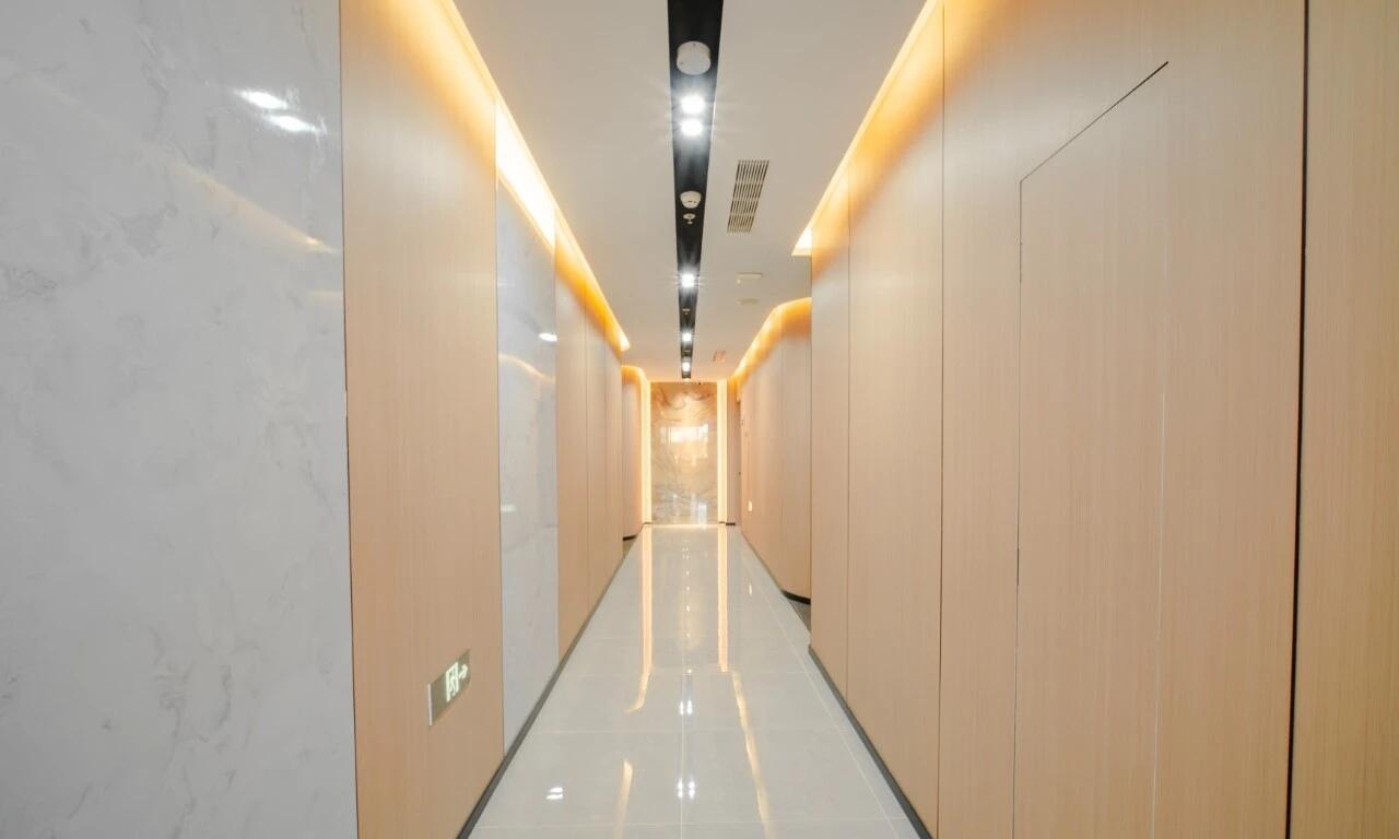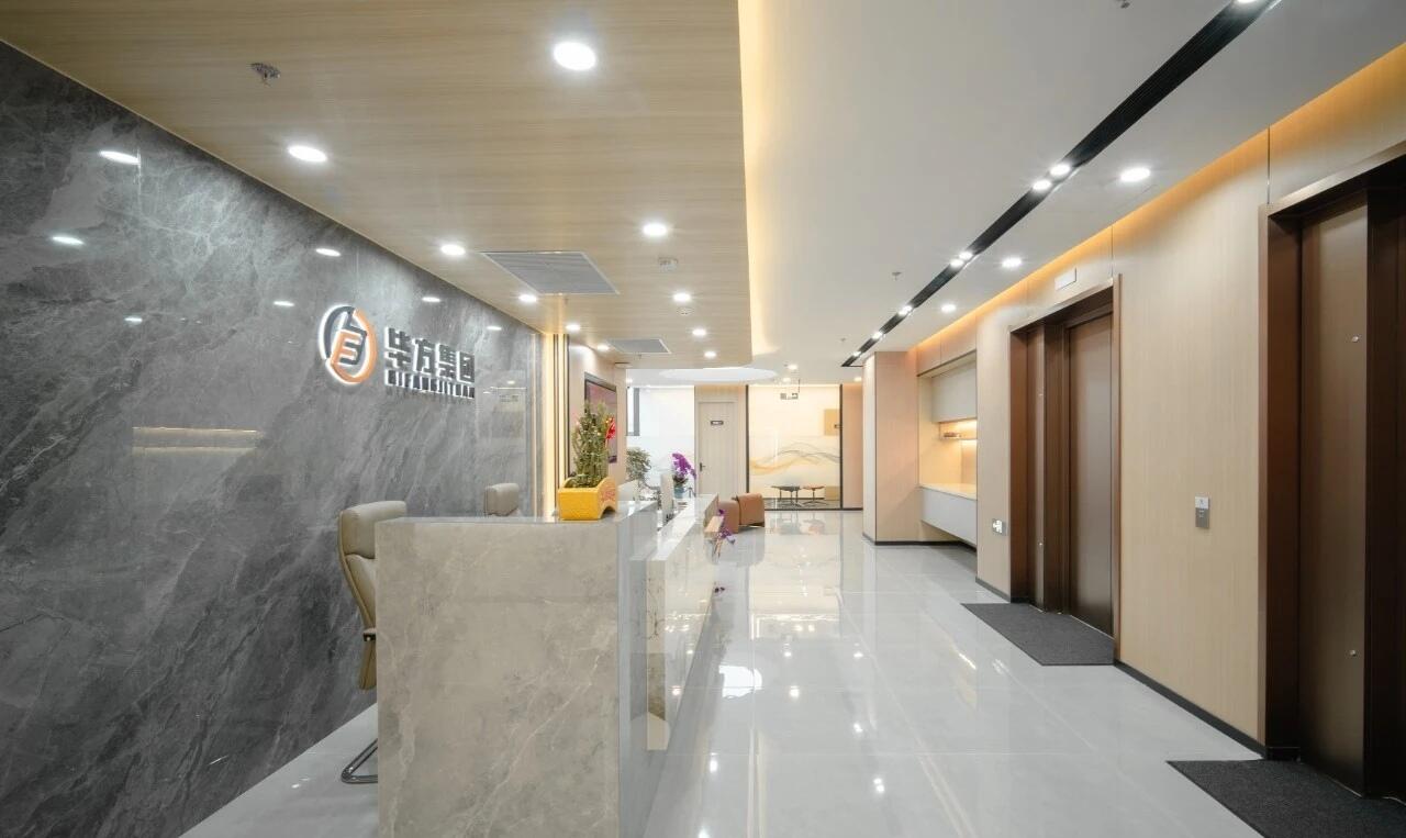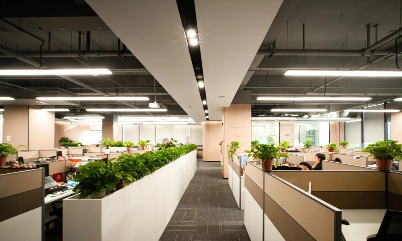 充足的照明形成明快的底色。完全开敞的背景墙消除了原有空间的厚重感,与之替代的是增强空间收放的节奏感。品牌接待区是空间的核心区域,这里有一个多元化的中转区通往工作区和开放区。这里并没有采用传统的走廊式布局,而是创造了一个按路径划分的多样化中转区,增强了不同部门之间的沟通,同时为访客提供了一个临时空间。通过设置休闲家具形成空间过渡,作为洗手间的视线遮挡。留白的墙面则成为了该空间的基底,简约清新。