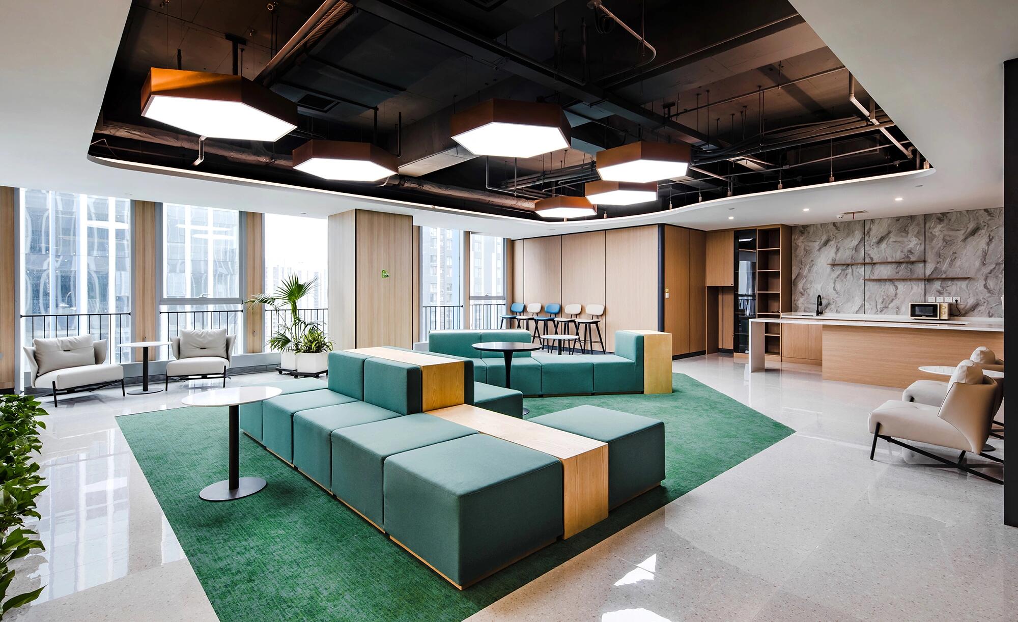 海珀特办公空间设计理念:体现科技、环保与现代感,契合新能源创新精神。