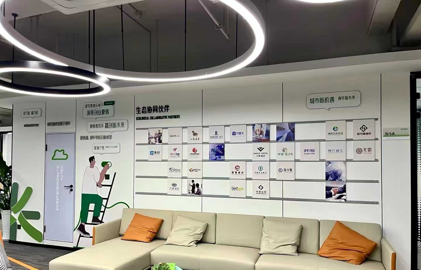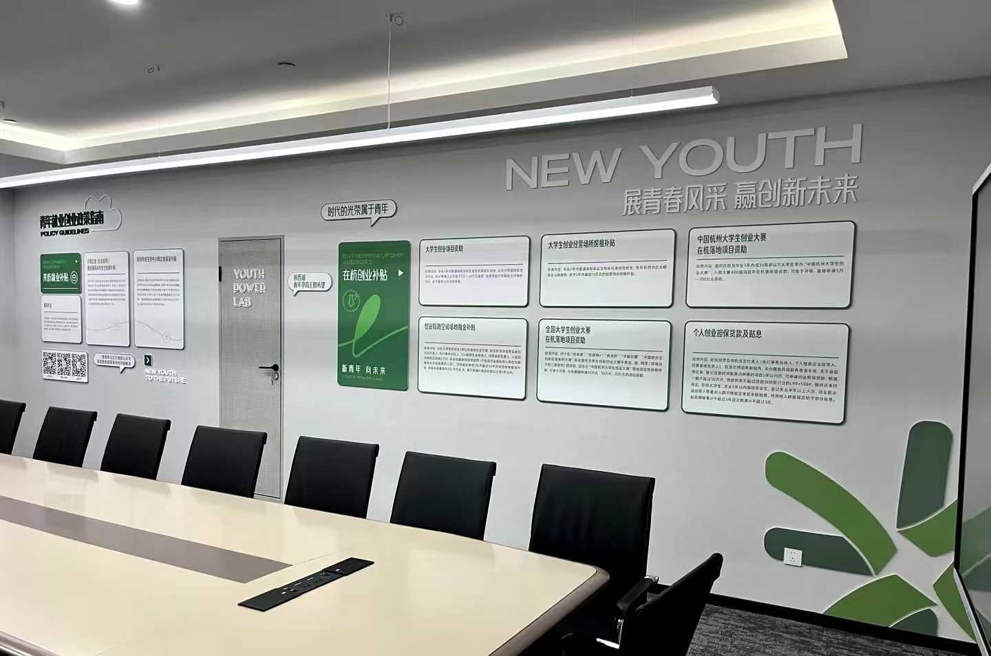以年轻向上的绿色为主墙面设计更灵活更适合年轻人的服务中心
