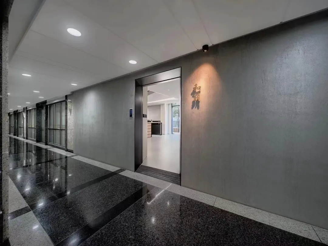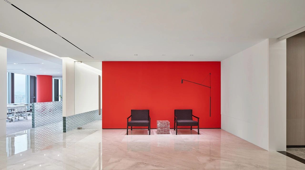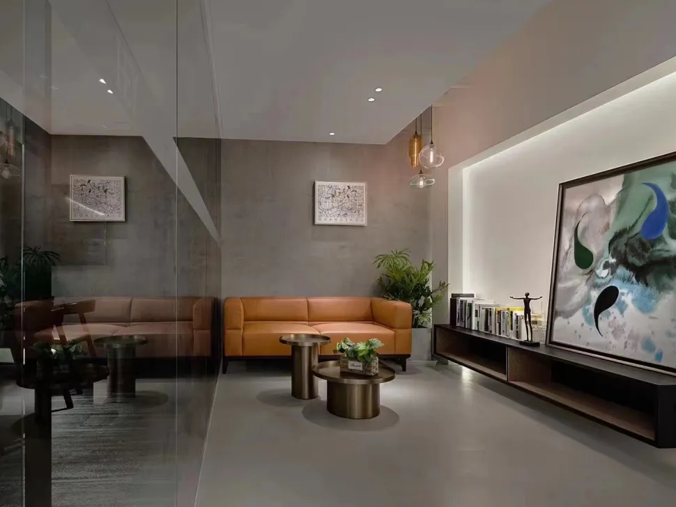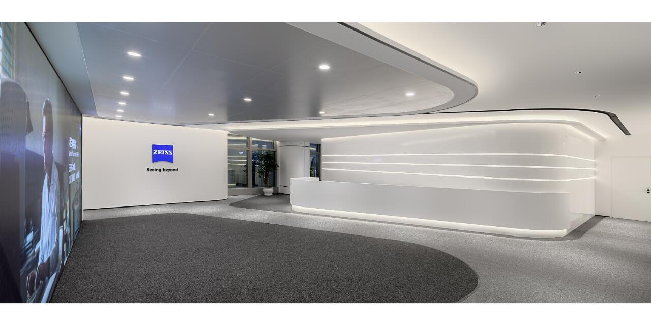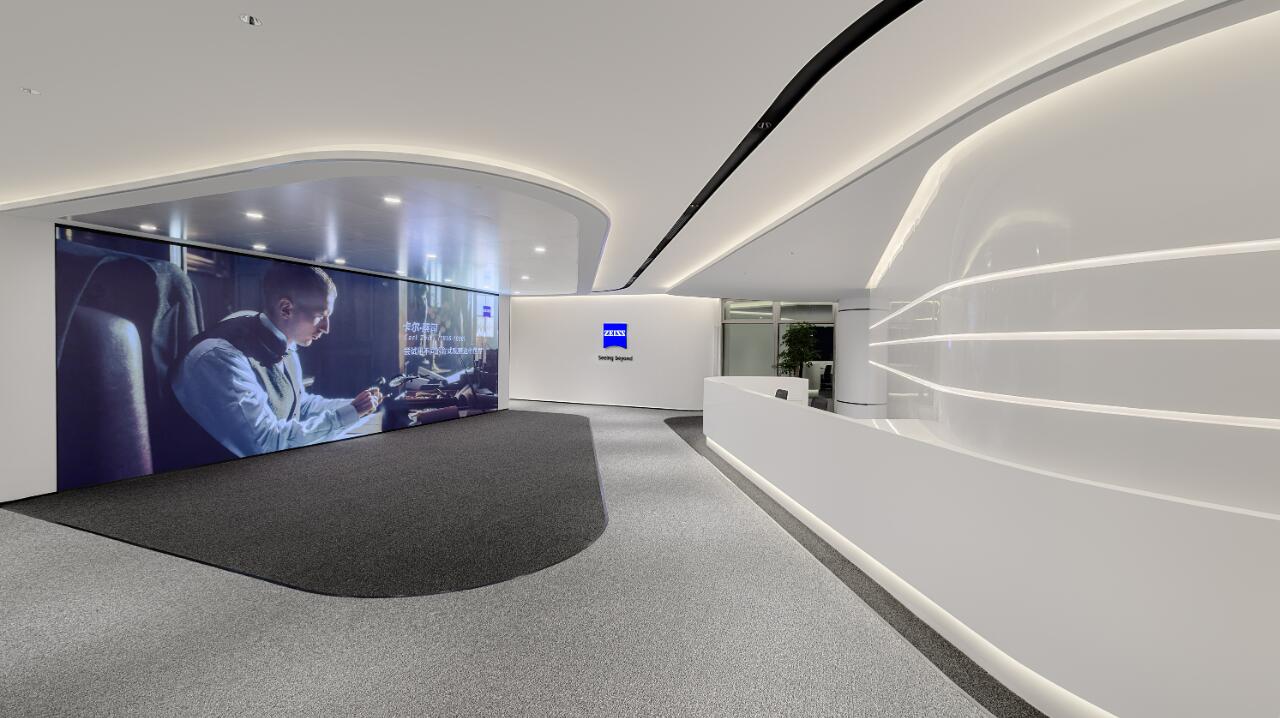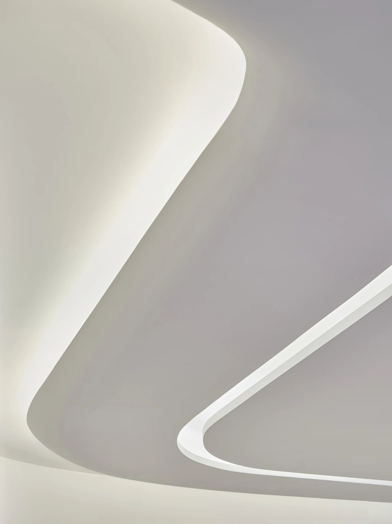 空间整体平面布局融合了原建筑的弧线形设计,形成包容、和谐、自洽具有生命流动感的空间——孕育了一个新生命体的诞生。流线形的天花设计推动了空间流动感,同时引导了空间的动势与流向。穿插在走道两侧透明玻璃砖砌筑的墙体是京师历史文脉的引申、再现与重生。剔透的砖墙与地面抛光流水纹的大理石再次反射了空间中漫反射的光源,构成了充沛、丰盈、灵动的自然氛围,蕴含着生命光晕与律动。
