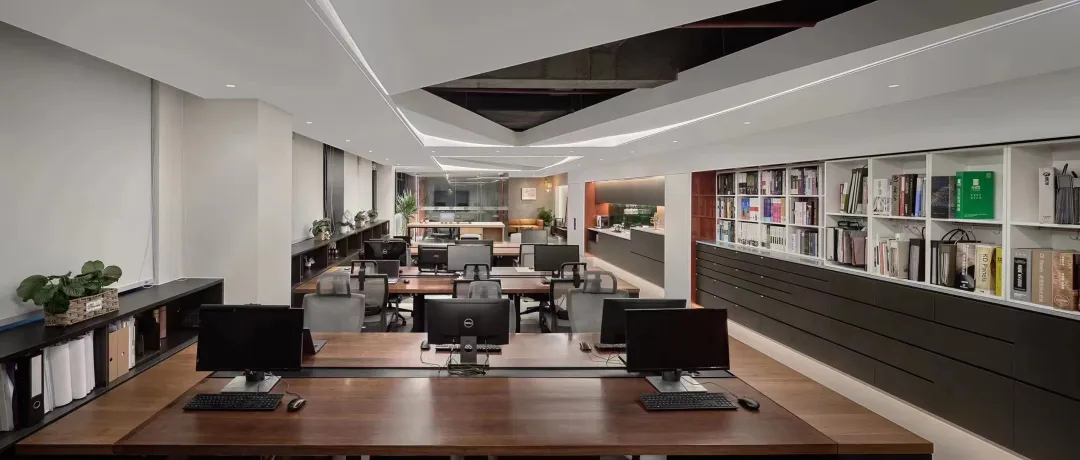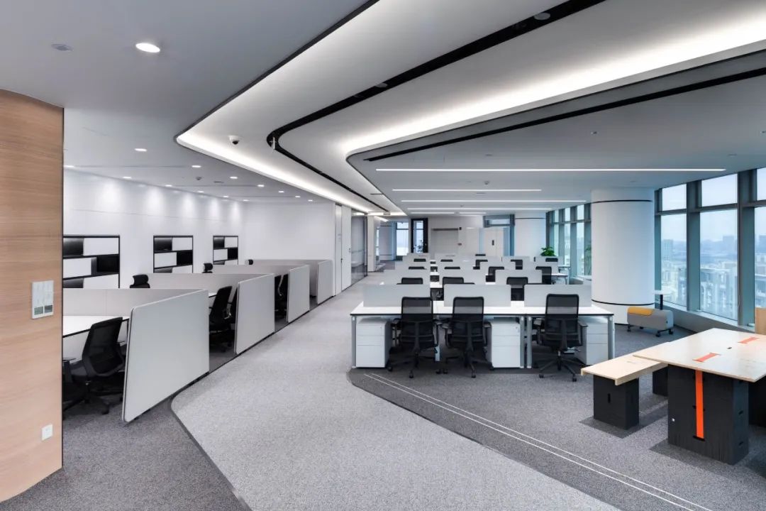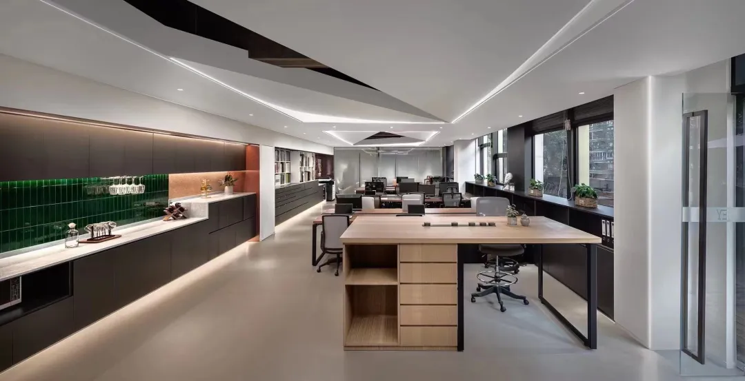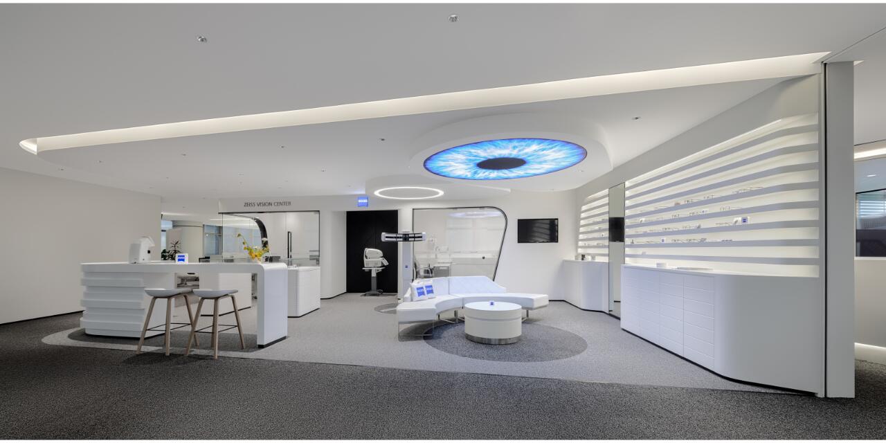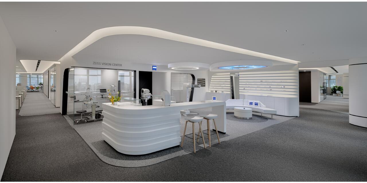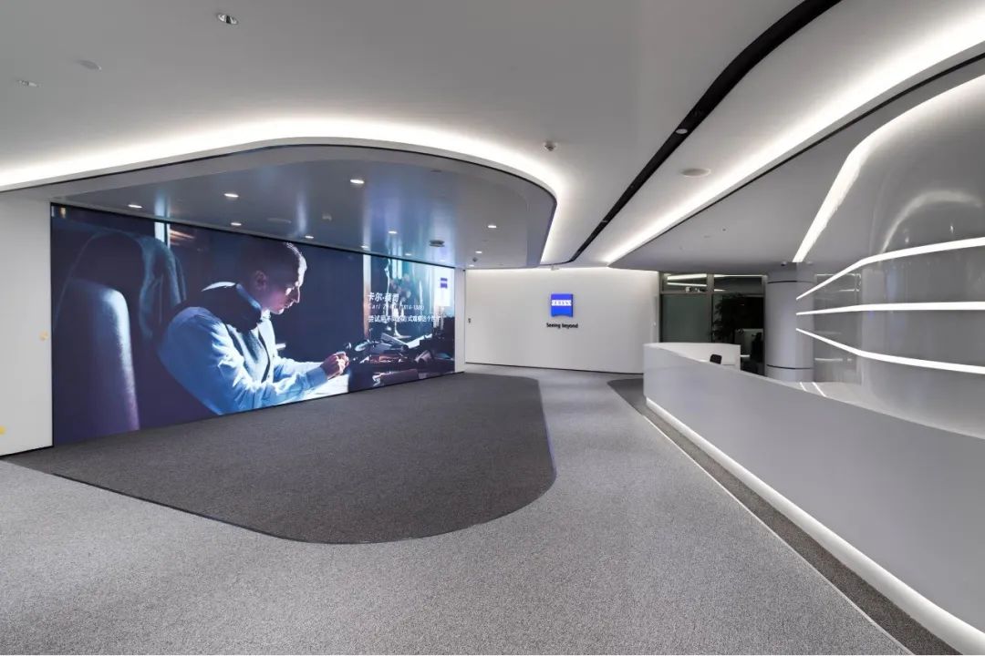 空间整体平面布局融合了原建筑的弧线形设计,形成包容、和谐、自洽具有生命流动感的空间——孕育了一个新生命体的诞生。流线形的天花设计推动了空间流动感,同时引导了空间的动势与流向。穿插在走道两侧透明玻璃砖砌筑的墙体是京师历史文脉的引申、再现与重生。剔透的砖墙与地面抛光流水纹的大理石再次反射了空间中漫反射的光源,构成了充沛、丰盈、灵动的自然氛围,蕴含着生命光晕与律动。