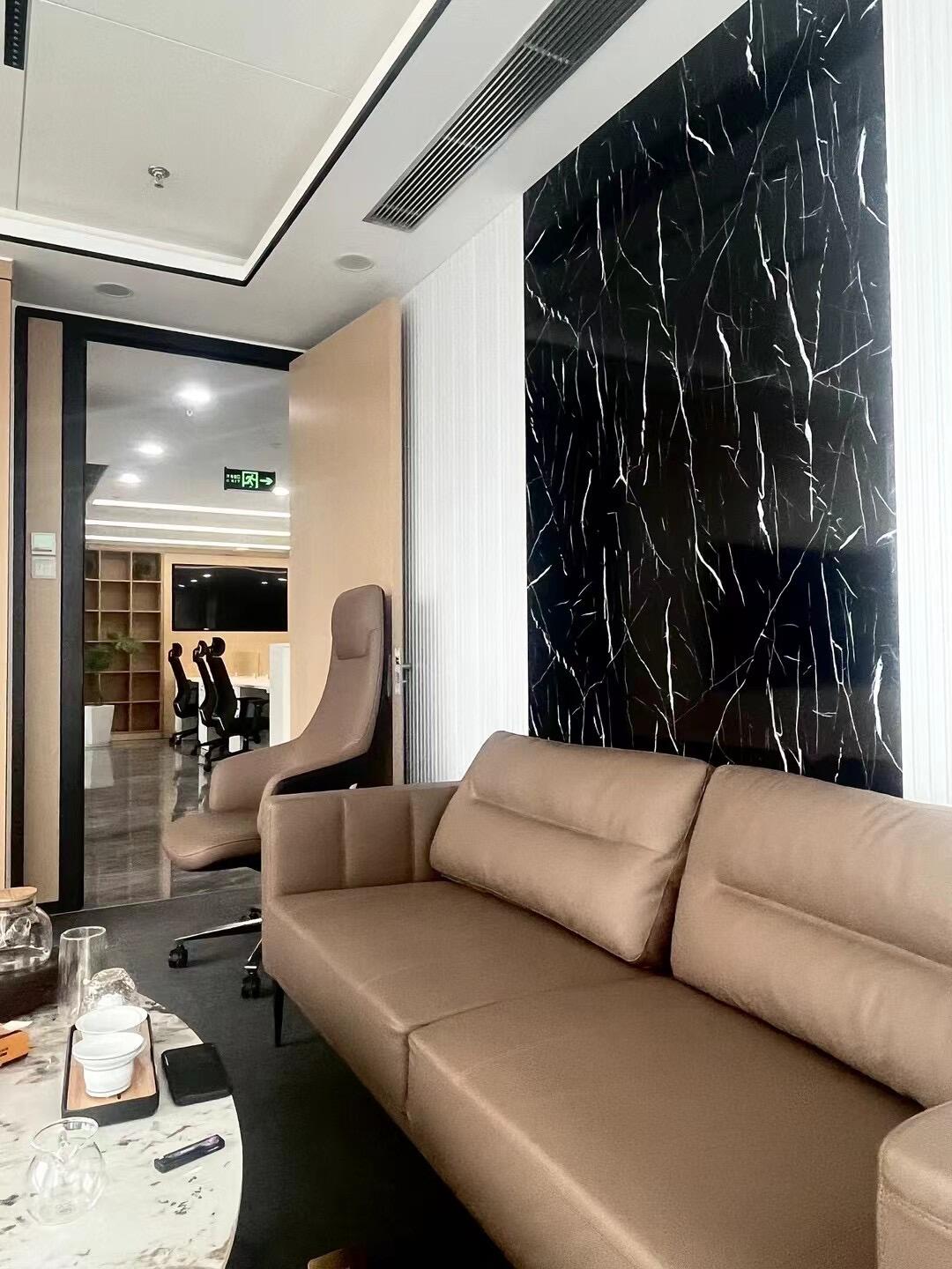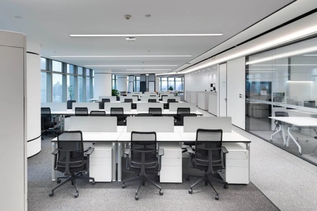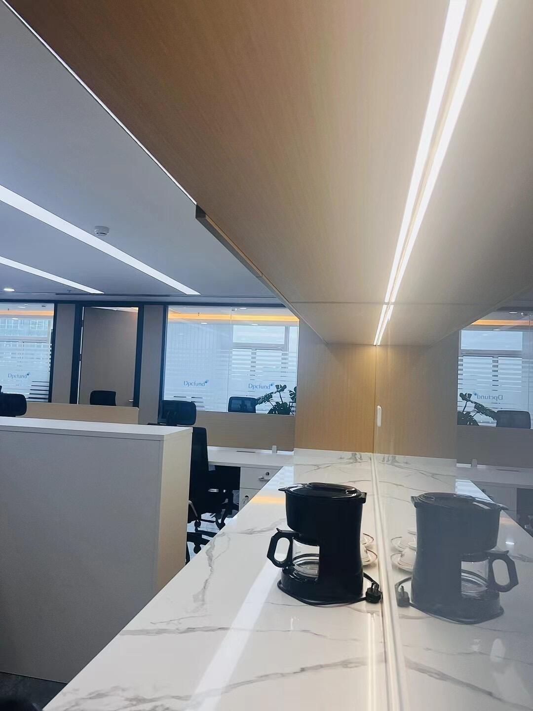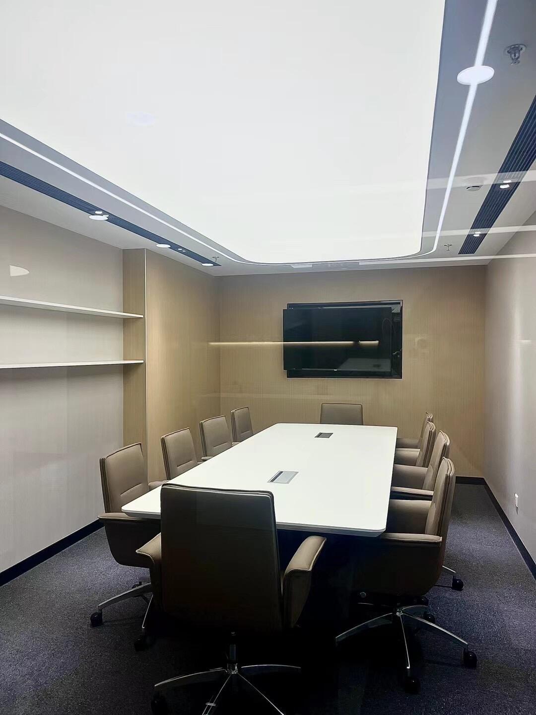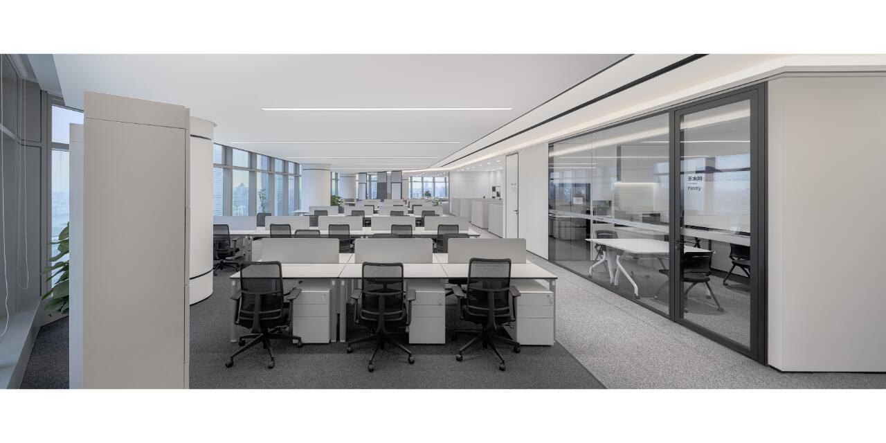空间整体平面布局融合了原建筑的弧线形设计,形成包容、和谐、自洽具有生命流动感的空间——孕育了一个新生命体的诞生。流线形的天花设计推动了空间流动感,同时引导了空间的动势与流向。穿插在走道两侧透明玻璃砖砌筑的墙体是京师历史文脉的引申、再现与重生。剔透的砖墙与地面抛光流水纹的大理石再次反射了空间中漫反射的光源,构成了充沛、丰盈、灵动的自然氛围,蕴含着生命光晕与律动。