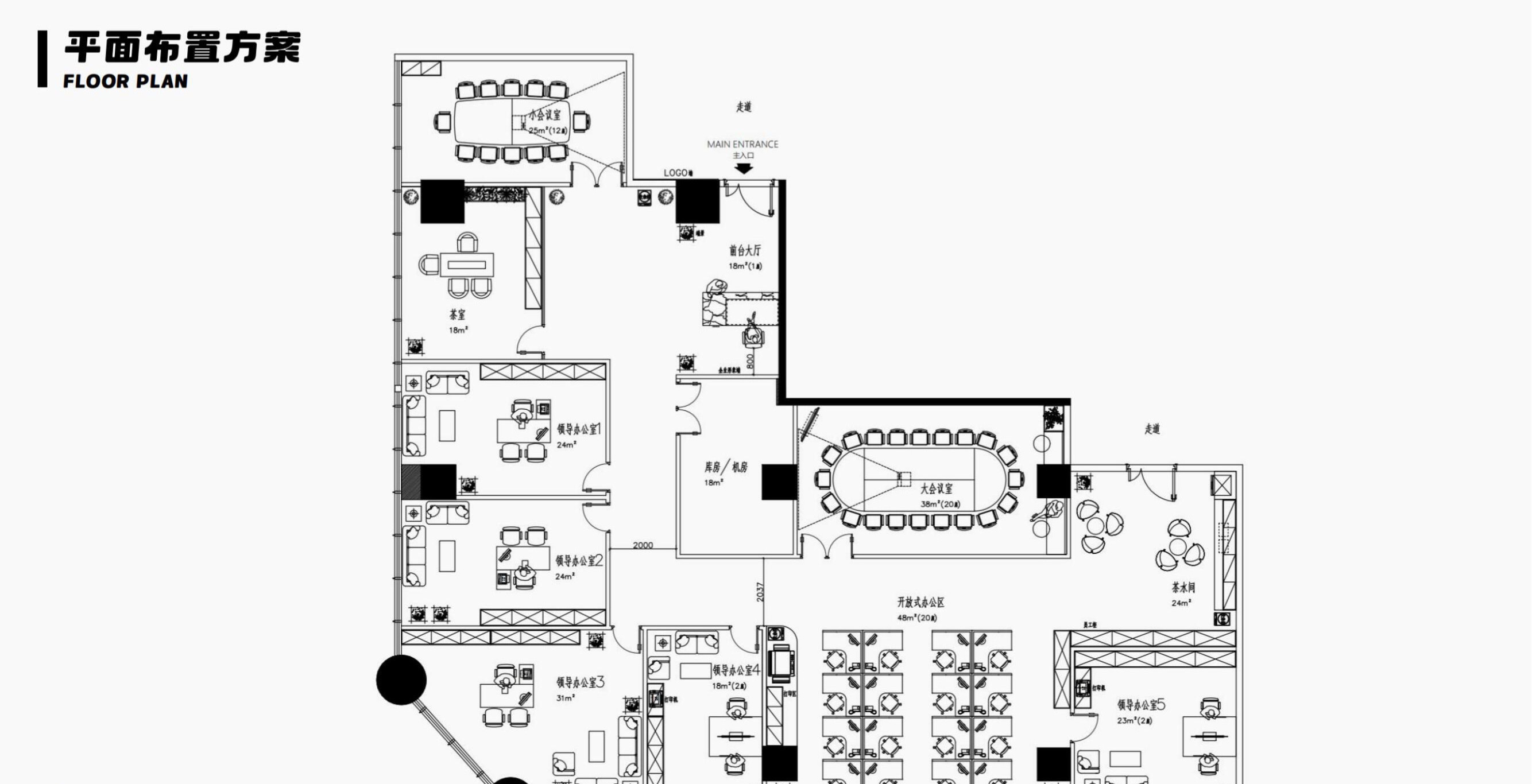 办公区围绕中央核心区展开,东侧办公区为测试产线和实验室,西侧为办公室和工位,形成多个开放式协作空间,同时通过灵活的半开放式隔断设计,确保每个区域既能独立运作,又能相互连接。一条环形走廊构成了循环主动线,会议室和休息区被巧妙嵌入动线的关键节点上,实现了工作与休息模式的无缝切换。私密工作区则被设置于相对安静的角落,通过独立通道与主循环动线相连,在保障私密性的同时,维系了空间的流动性,为员工提供了高效且舒适的工作环境。