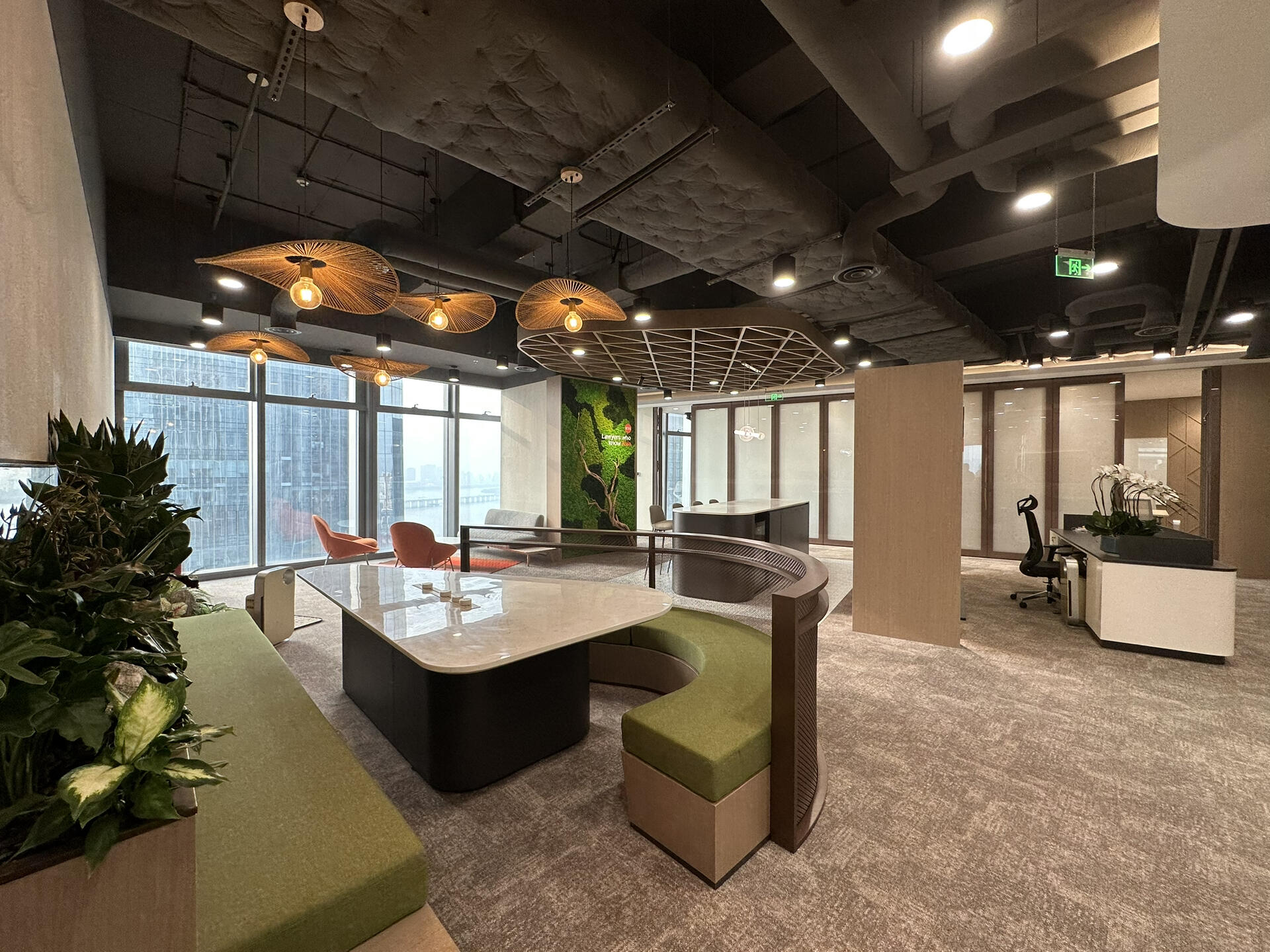 极简的办公室空间,用奶油白色系为基调,赋予空间明亮和舒适。通透的大面积玻璃,把“光”植入在视野当中,增添了空间的开阔性和张力。自然光的导入,使室内与室外“无界”的空间概念。