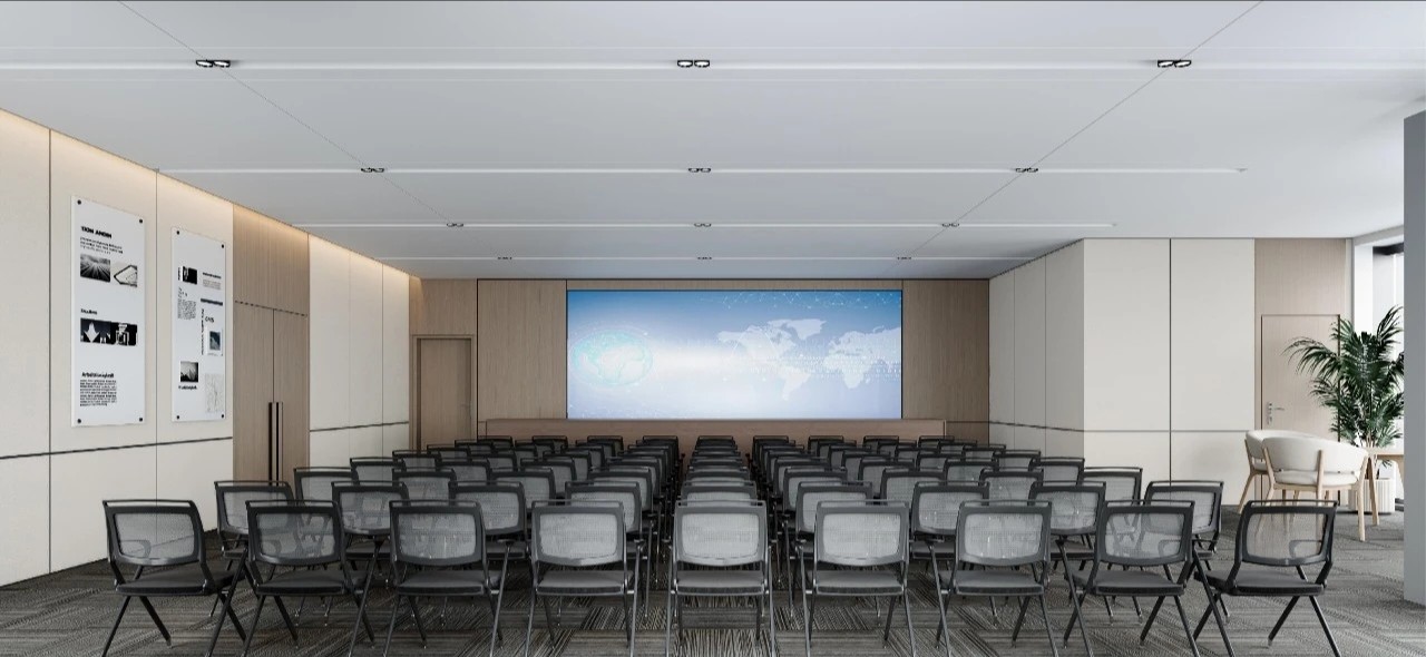 采用低饱和度的白色与灰色,配合大面积留白,使空间显得清爽宽敞。蓝色历程介绍,让空间在冷静的色调中多了一丝温馨。每一处摆设都经过精心考量,体现出高效与美观的平衡。会议厅的设计不仅影响会议的效果,还直接关系到参会者的体验。空间布局合理布局,确保每个座位都有良好视野和听觉效果。座椅选择舒适简洁的座椅,符合人体工程学,排列方式合理。照明设计均匀柔和的照明,避免刺眼光线,增加空间层次感。多媒体设备配备大屏幕显示器和高质量音响系统,满足多种演示需求。装饰风格简洁大方的现代简约风格,颜色搭配和谐,营造专业氛围。自然采光大面积窗户引入自然光线,节能环保,空间明亮开阔。