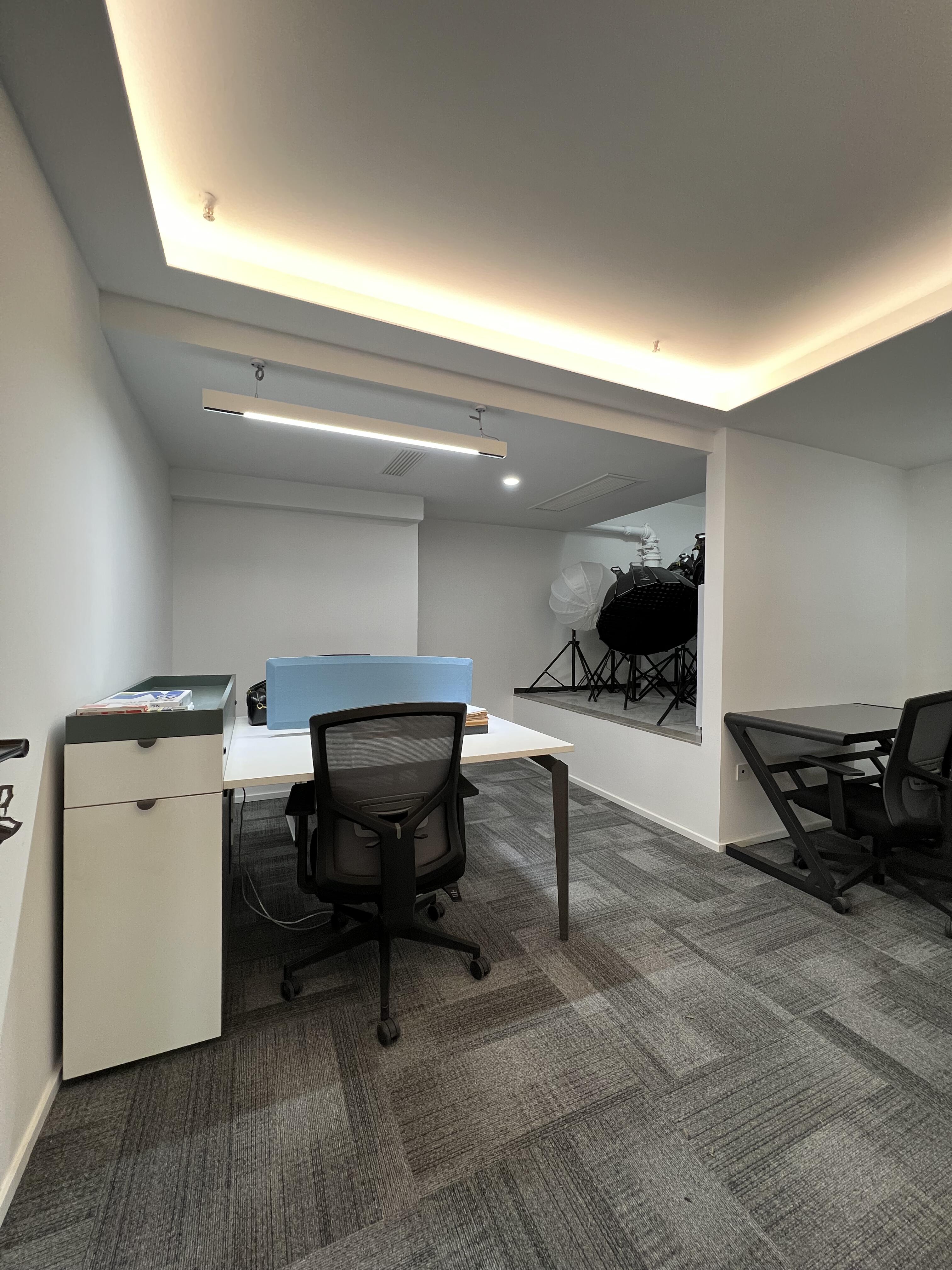 将极简与现代风格完美结合,营造了一个富有质感的工作空间。通过细腻的细节和简洁的线条,不仅让空间更有层次感,还突显了专业与品味。整体装修采用了简约的风格,以灰白为主色调,经典又大气。白色的墙壁搭配灰色的防滑地面,干净利落,再加上木质柜子的点缀,为整个空间增添了一丝温暖和自然的气息。