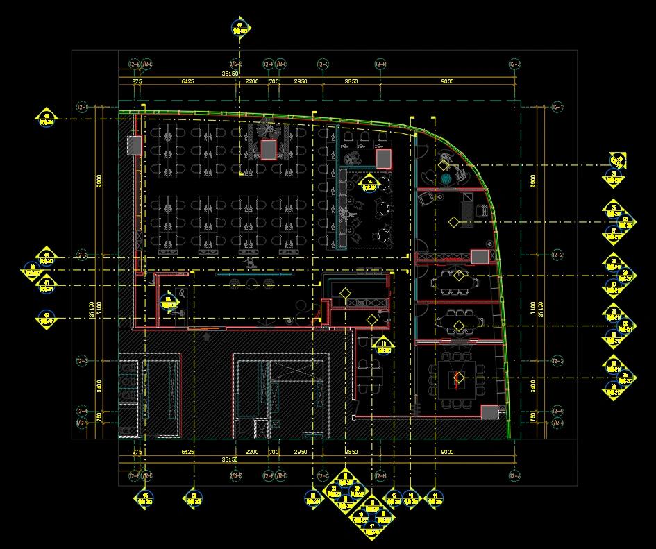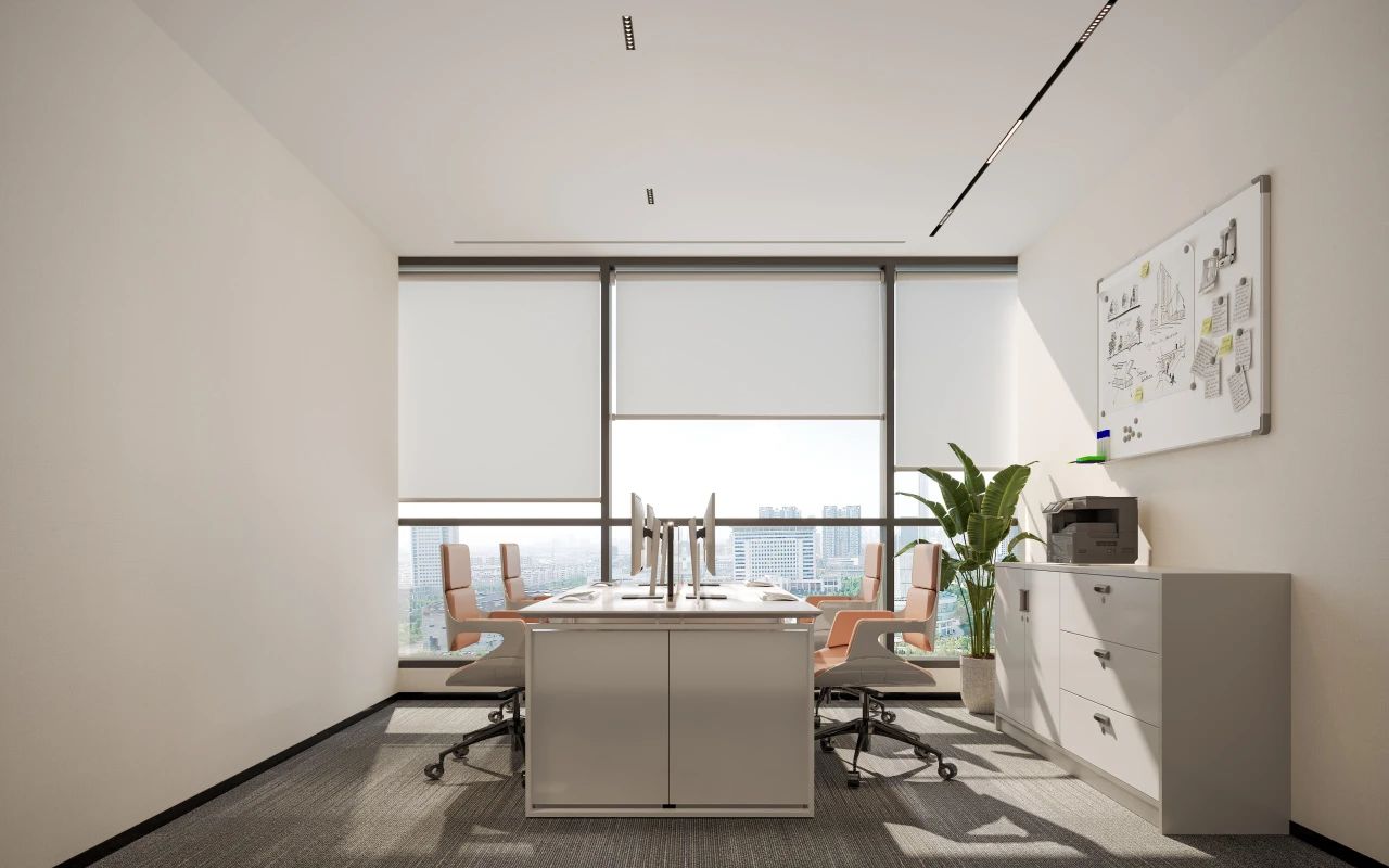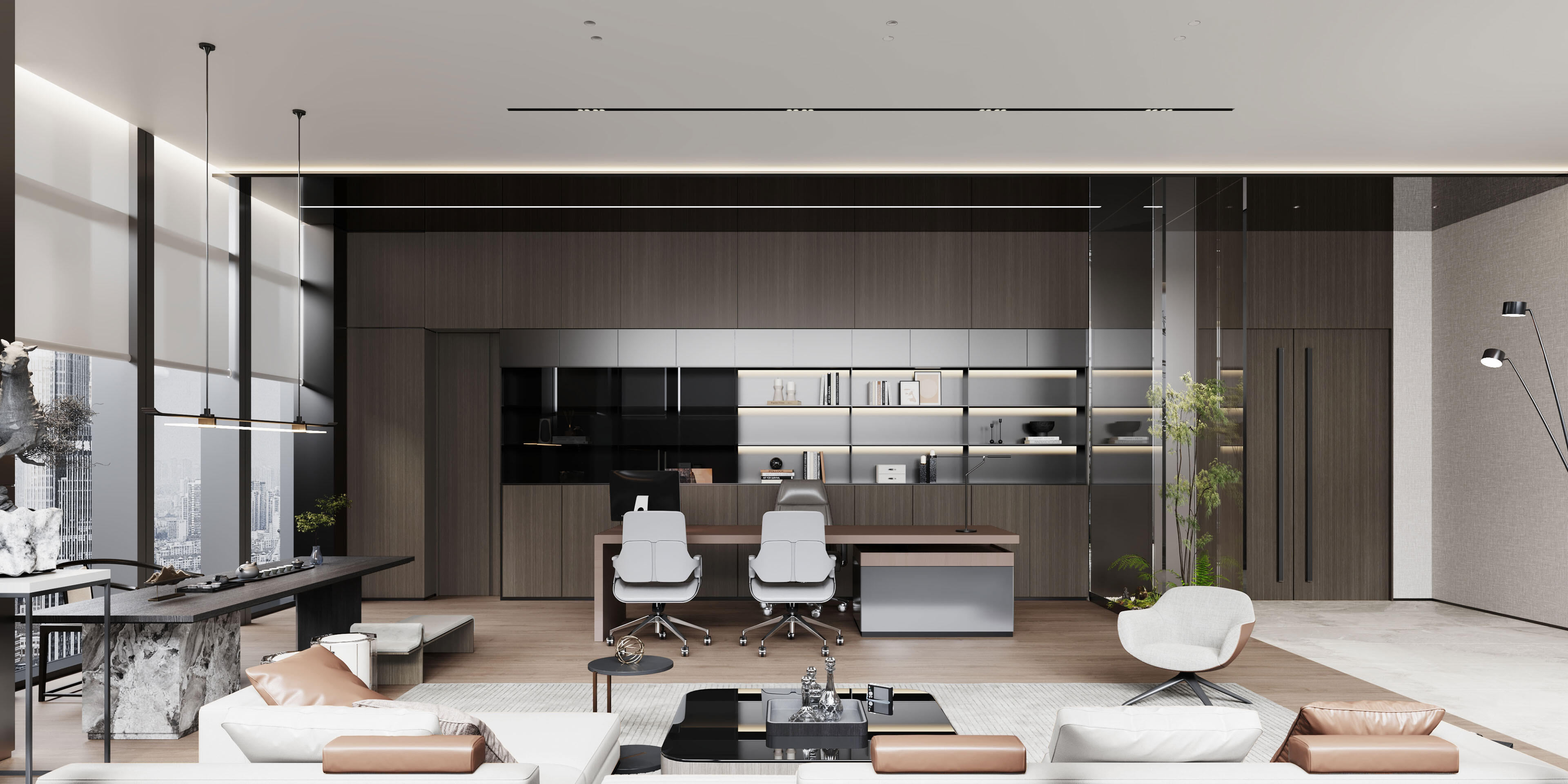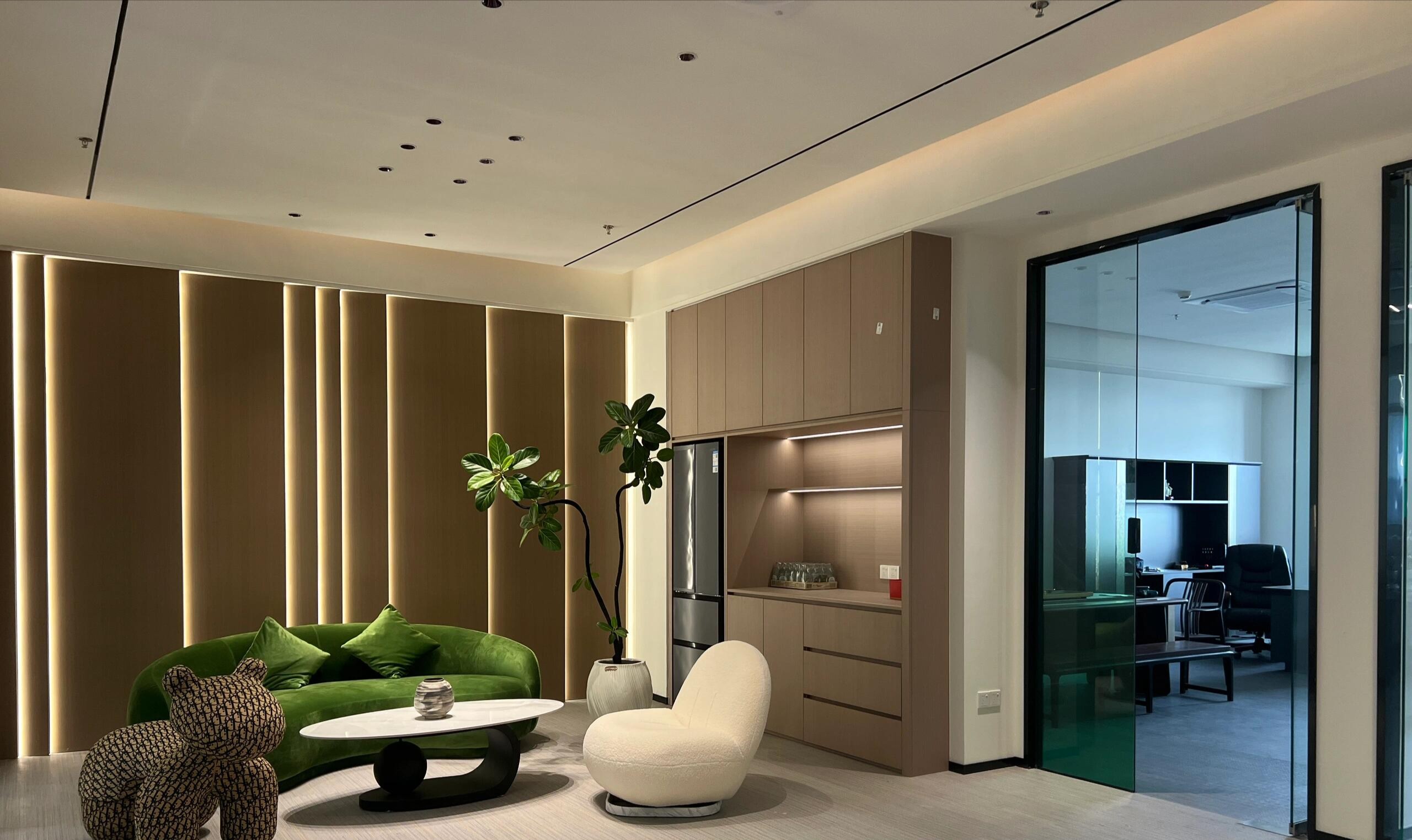 根据空间的特点和客户的需求,我们决定打造花园式的办公环境,用绿色植物环绕空间,营造自然和谐的感觉。关于照明设计,它不仅要保证亮度,还要形成一个连接空间的主题。我们想到了 “中国园林中的石板路”,由形状各异的椭圆形石块铺成的小路,代表了事务所中不同的律师:独立而又协作,形成了一个整体。整个项目采用开放式设计,需要合理组合接待区、会议室和工作区的功能。设计需要考虑空间的流畅性,区分来宾通道和员工通道,将它们融为一体,使狭小的空间显得丰富而有层次。