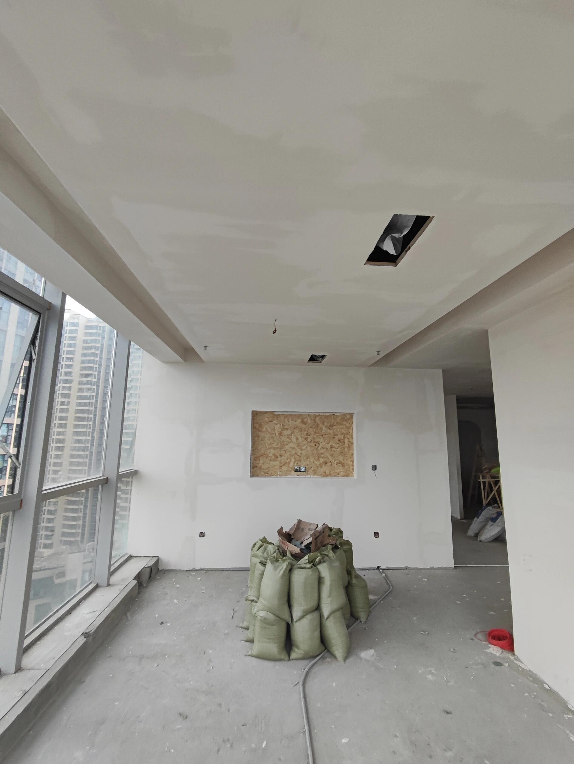 保留之前的平顶,找平后做微水泥与墙面同色,让空间显大,微水泥的斑驳纹理更有质感。 地面做微水泥与墙面同色,颜色可以比墙面略深,这样更有层次感。 公司形象墙用石膏板直线造型,定制铁艺发光字,记得预留灯线。 恰谈区用石膏板做隔墙,用造型做透景,引入光线。