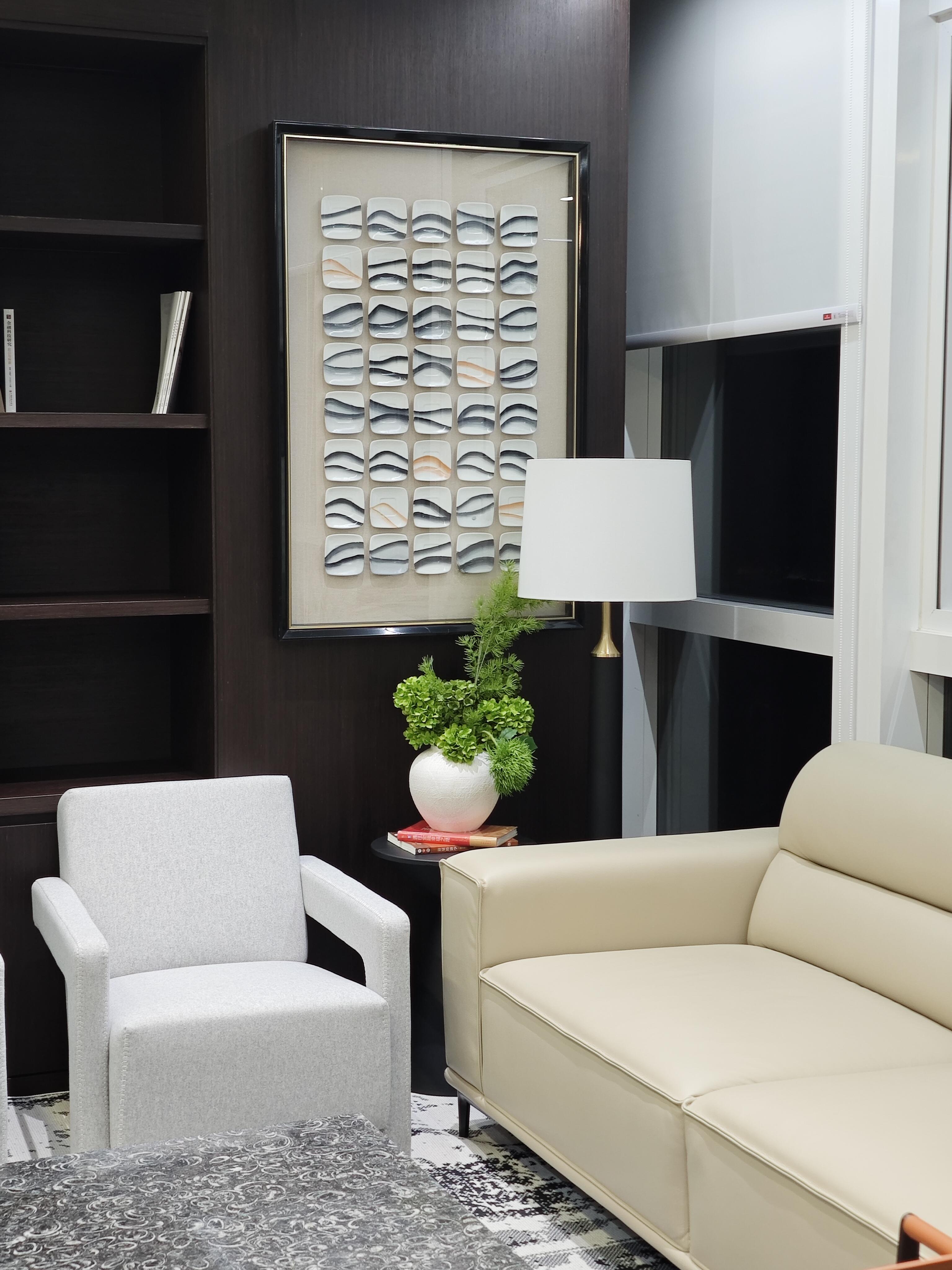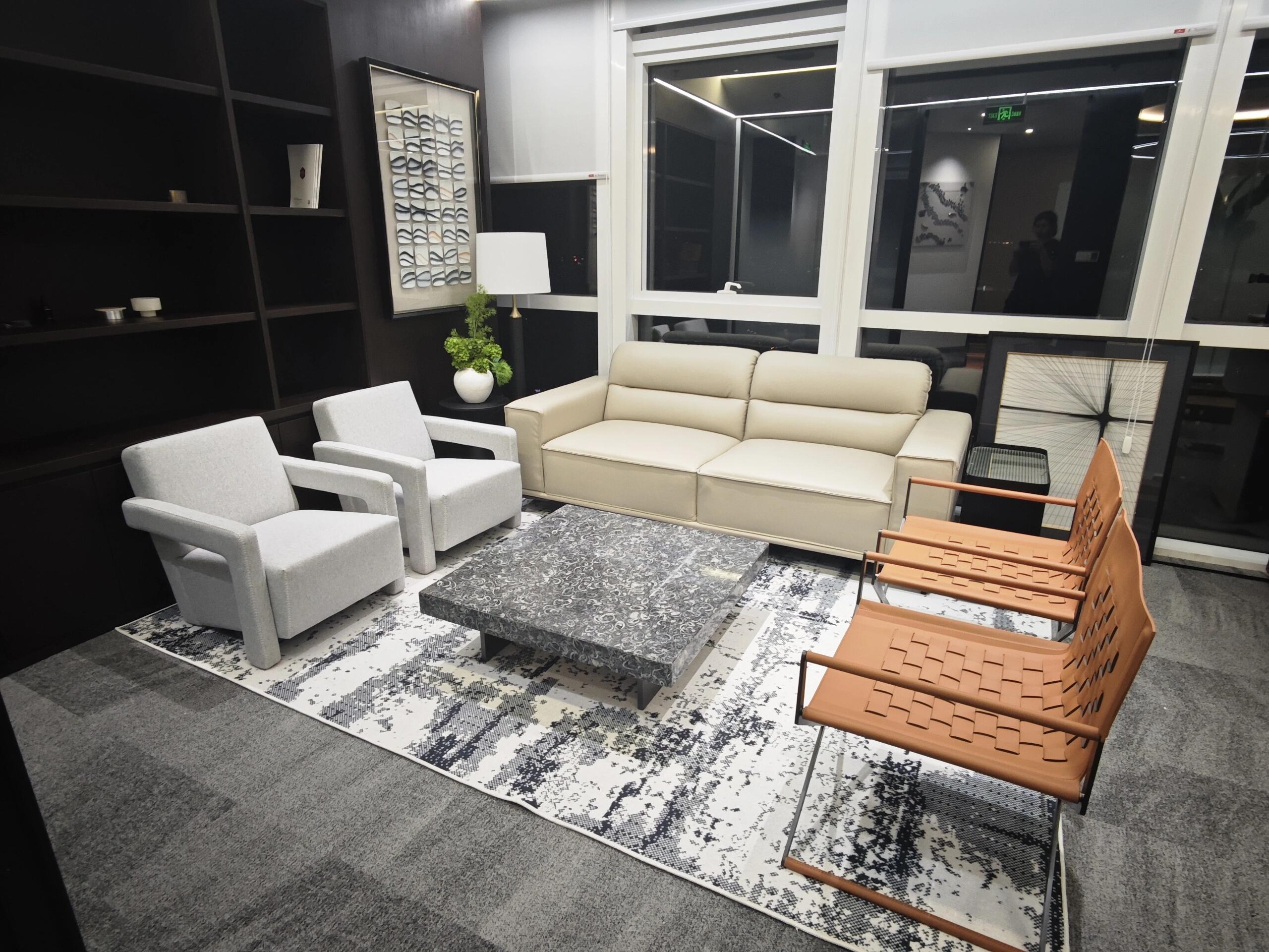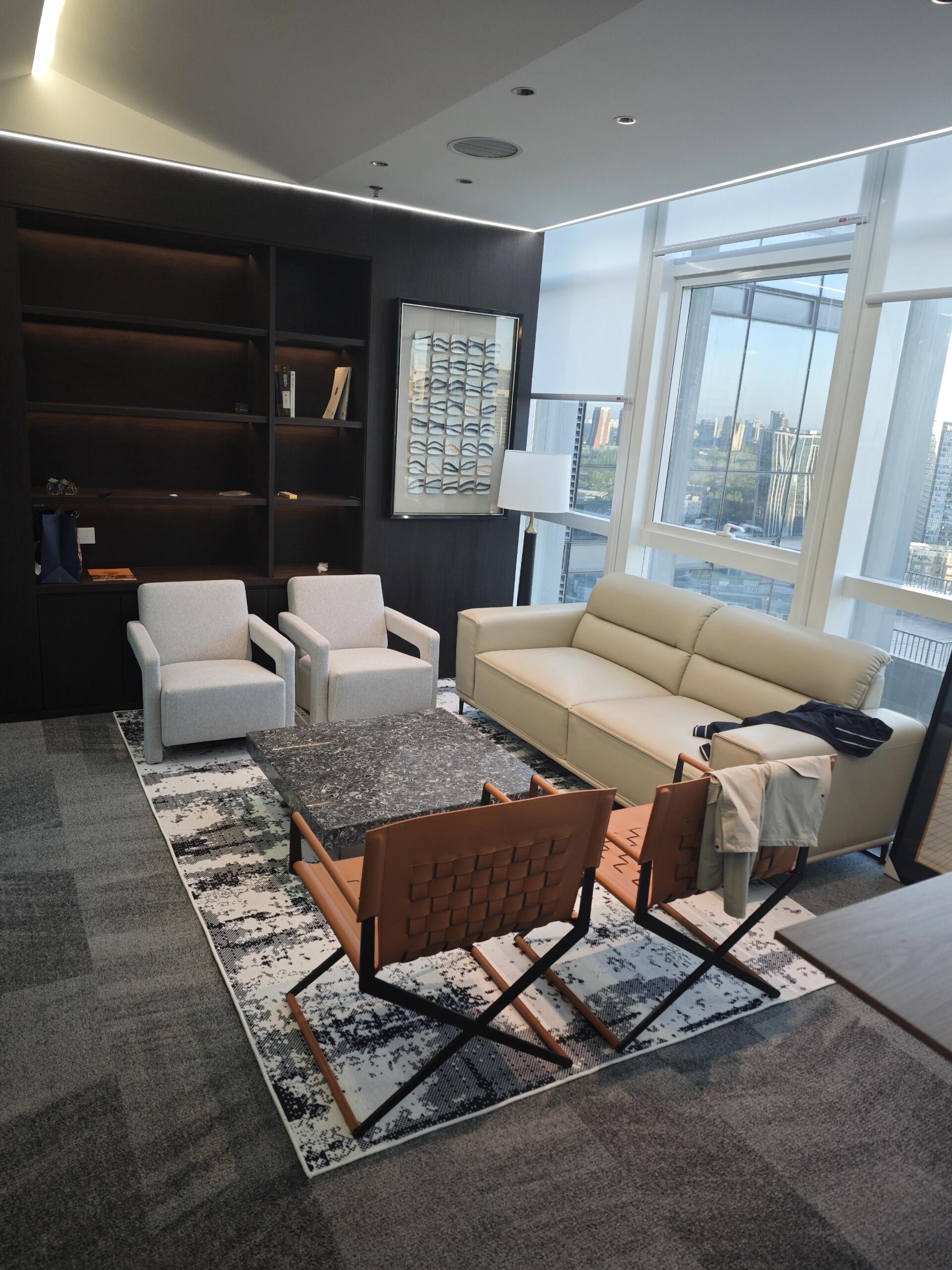 本项目旨在打造一个功能齐全、舒适高效且符合企业形象的现代化办公环境,涵盖办公区、接待区、会议室等多个功能区域。接待台位于空间中心,方便接待访客。背景墙展示企业标志,强化品牌印象。左侧展示区介绍企业发展历程与业务,右侧荣誉墙展示企业荣誉。 采用大理石与木质结合材质,彰显品质。地面铺设大理石瓷砖,提升空间档次。墙面以白色为主,搭配金属装饰线条,简洁现代。绿植点缀其间,增添生机活力。