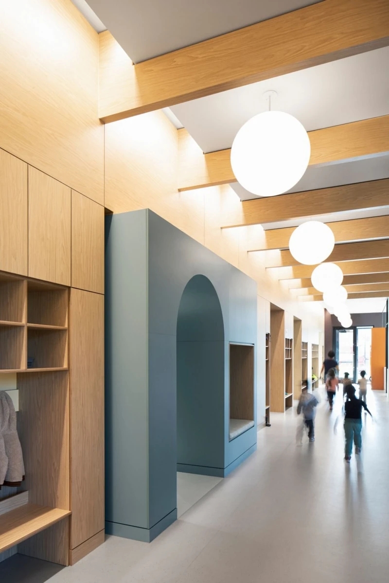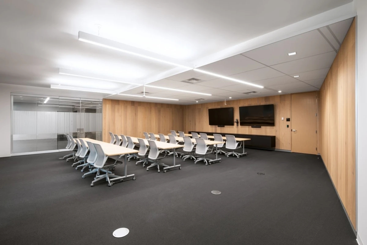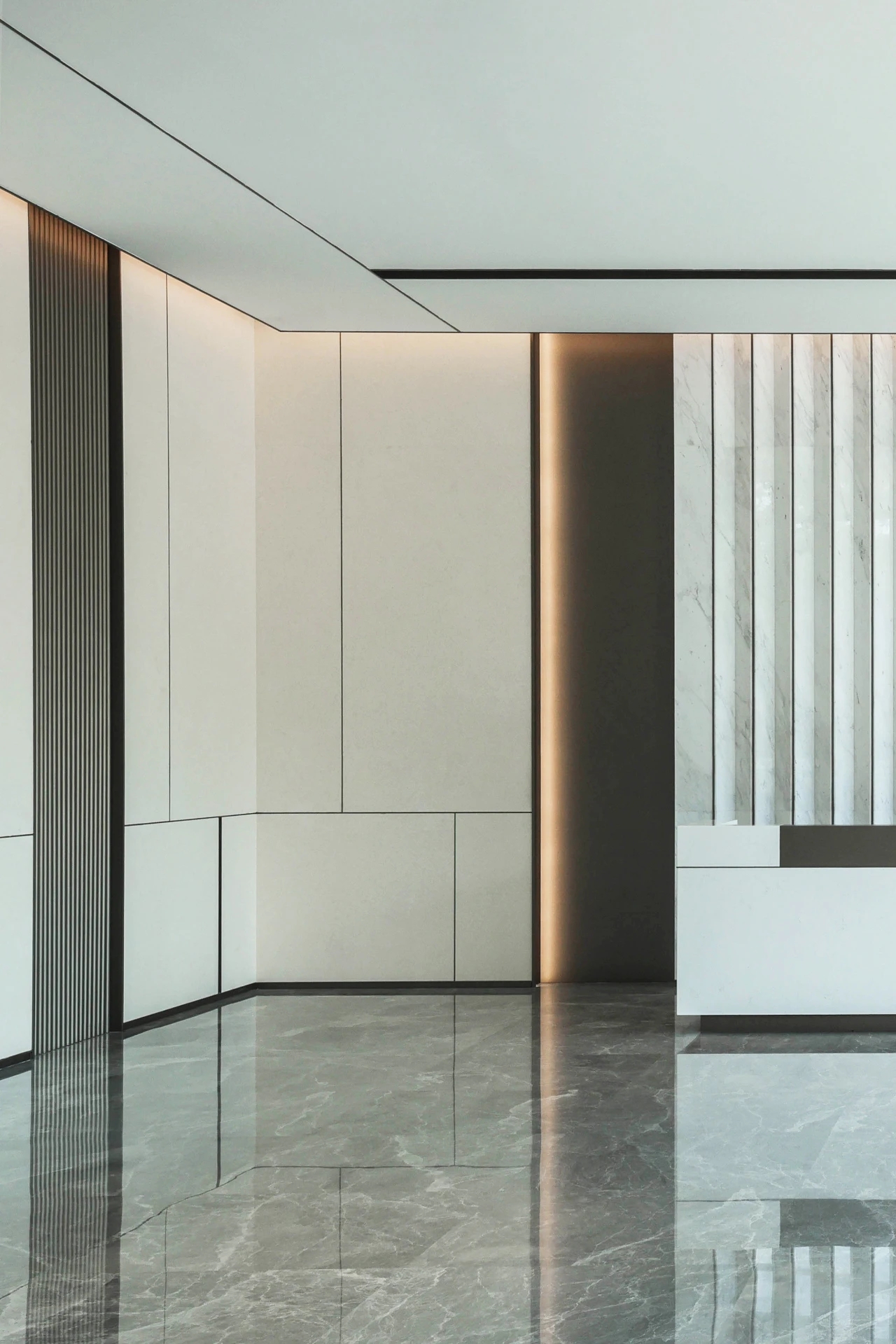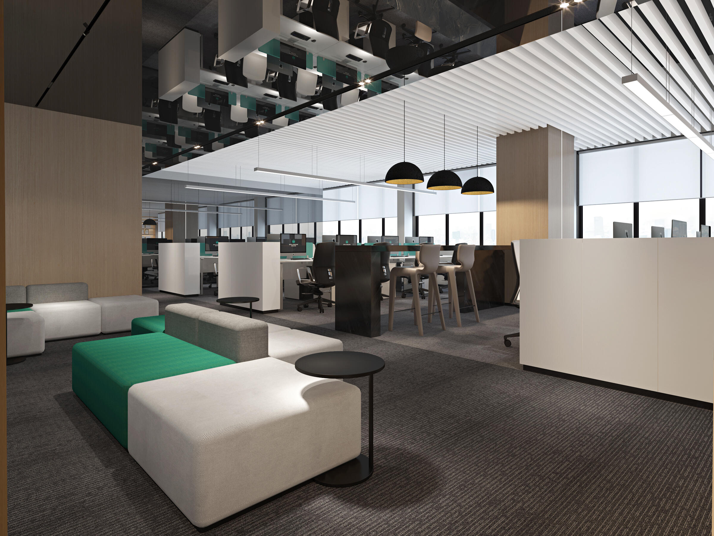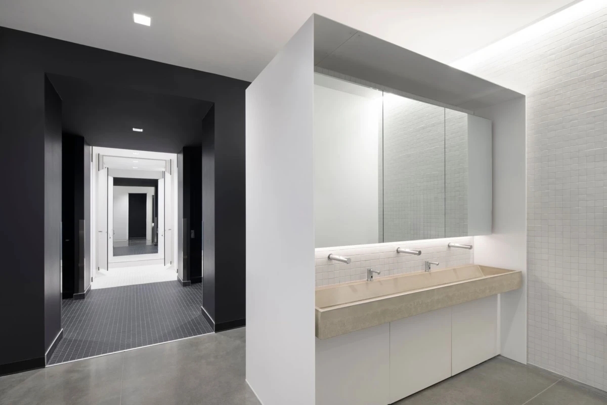 项目最大的挑战是如何在完成不同楼层和部门空间功能需求的同时,将空间构成和气质统一在一个场域精神中。设计通过控制室内的动线布局、尺度比例、材质肌理、形态色泽和灯光陈设,让空间以纯粹、有序、宁静的构成,凝成一股沉稳大气、积极向上的精神力量。