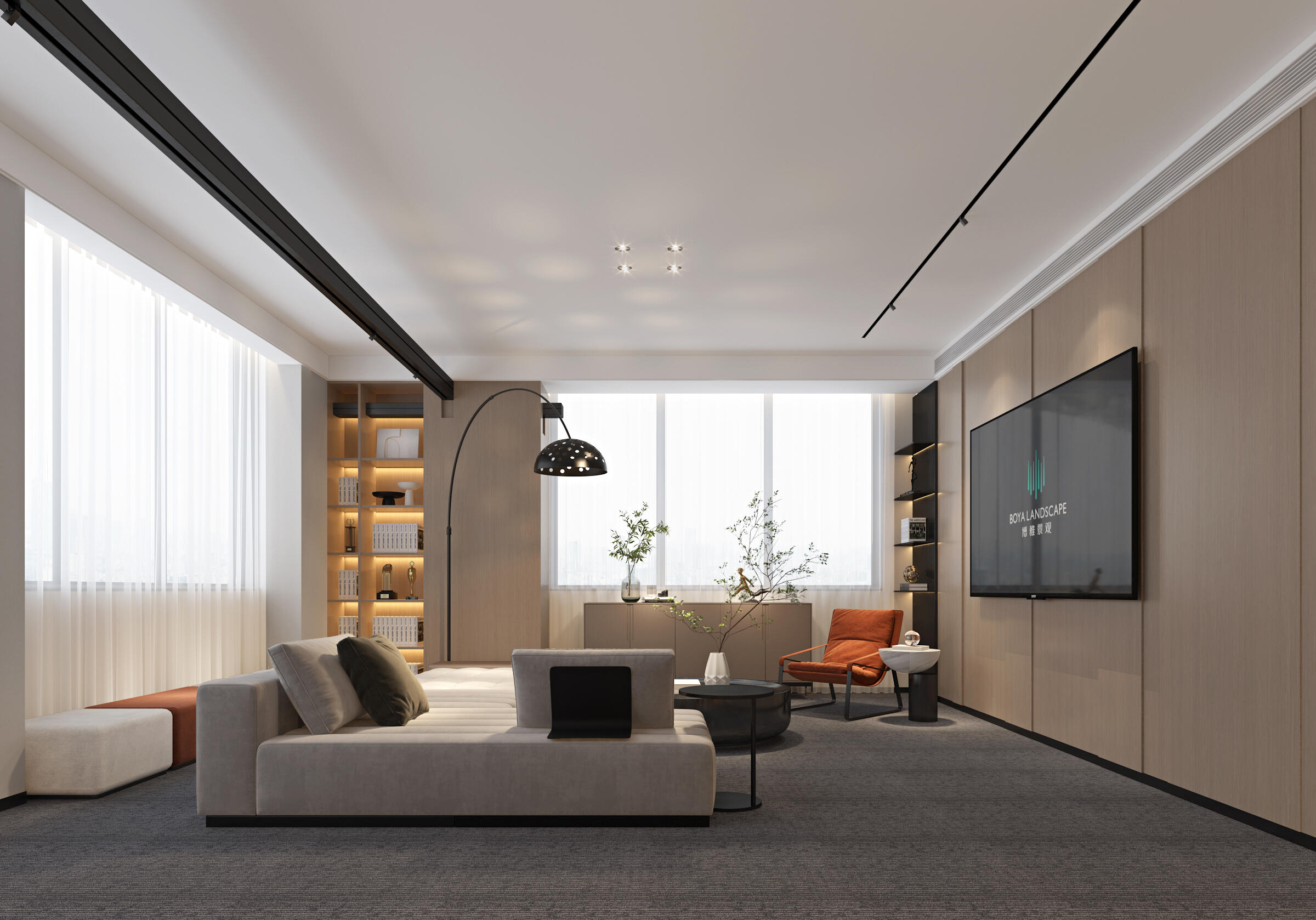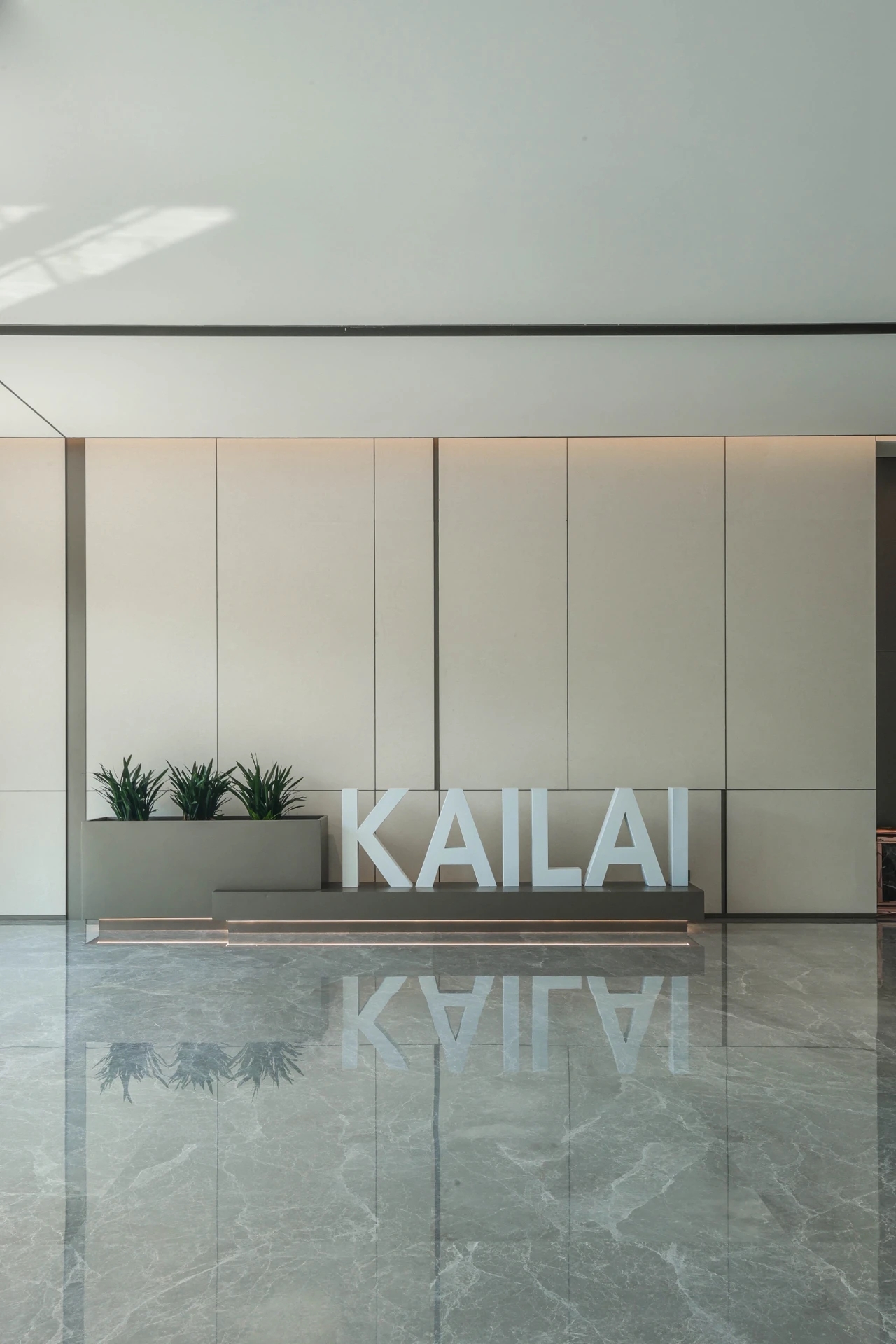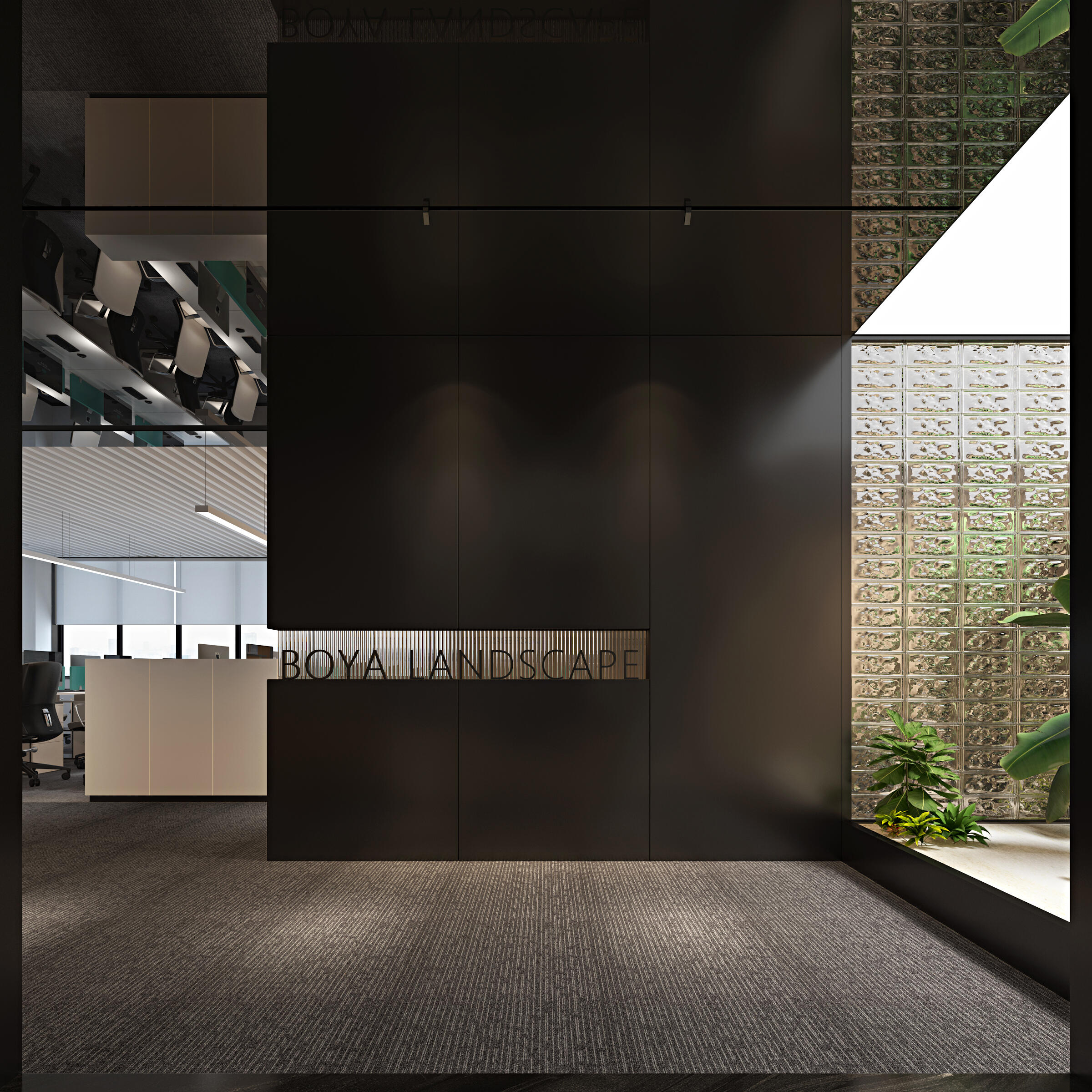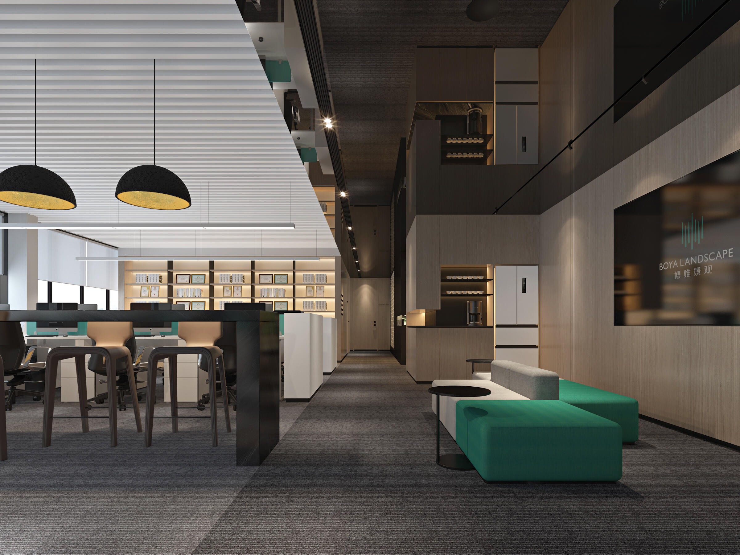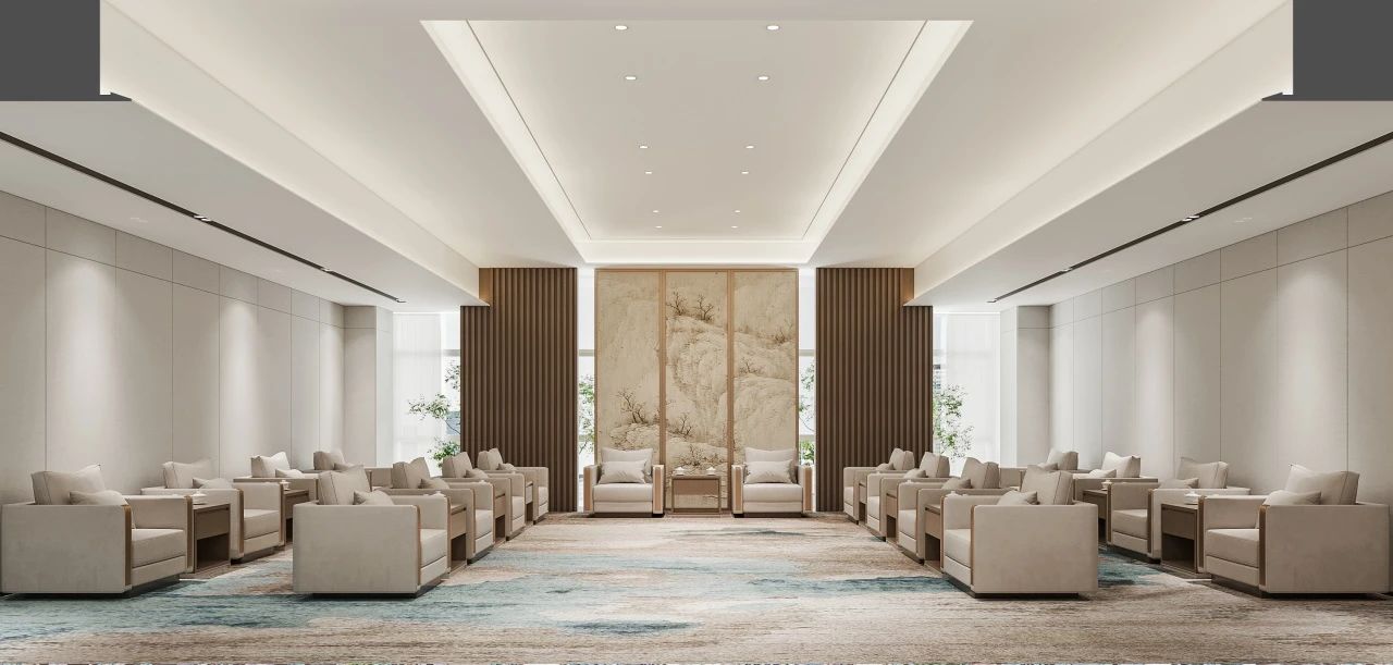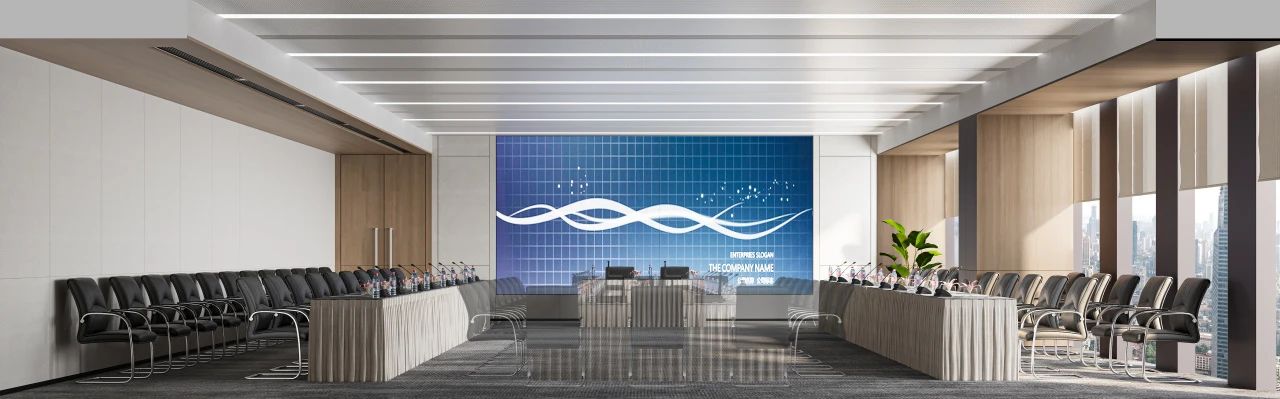 以企业LOGO色为主调,背景墙采用立体蚀刻工艺,搭配动态光影装置,传递“科技×人文”的品牌内核。