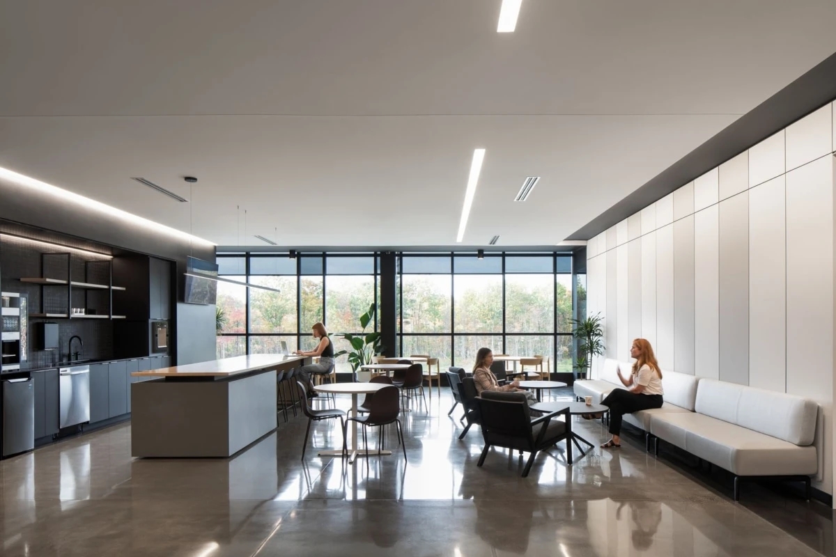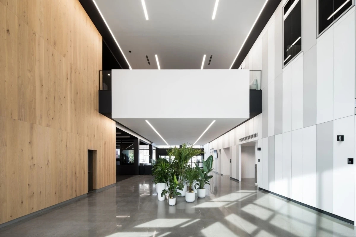 在大楼的土建阶段,我们就开始介入整体办公空间设计,施工过程中现场管理的高标准、精工至上的企业特征与企业主平易近人的特点,引发对品牌基因深度探索,由企业属性、地域性特征,拓展追溯人与空间、企业主思想性与产品物性等,希望达成企业与空间的平衡,建立人与空间的情感性深度链接。