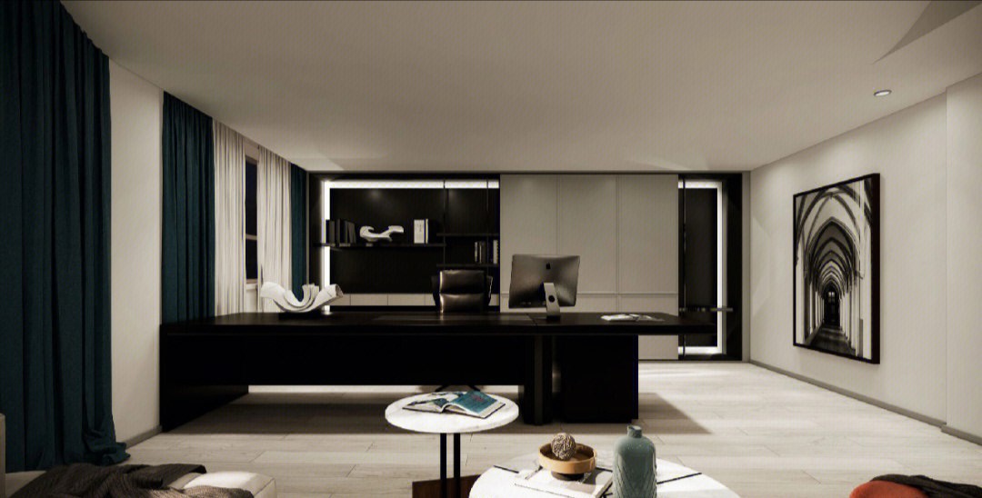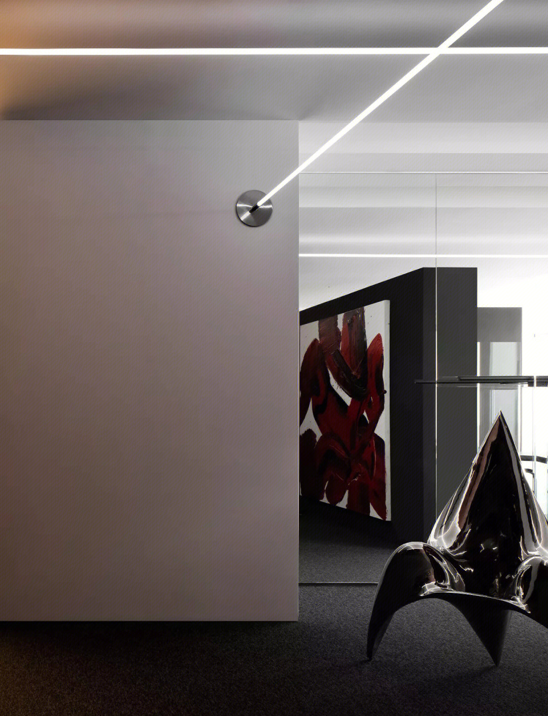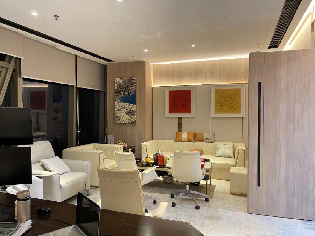 会议室是公司内商议事情的主要场所,大气稳重凸显空间氛围,大型LED灯带配合筒灯、吊顶灯,即便是加班很晚,依旧能保持明朗舒适的环境。