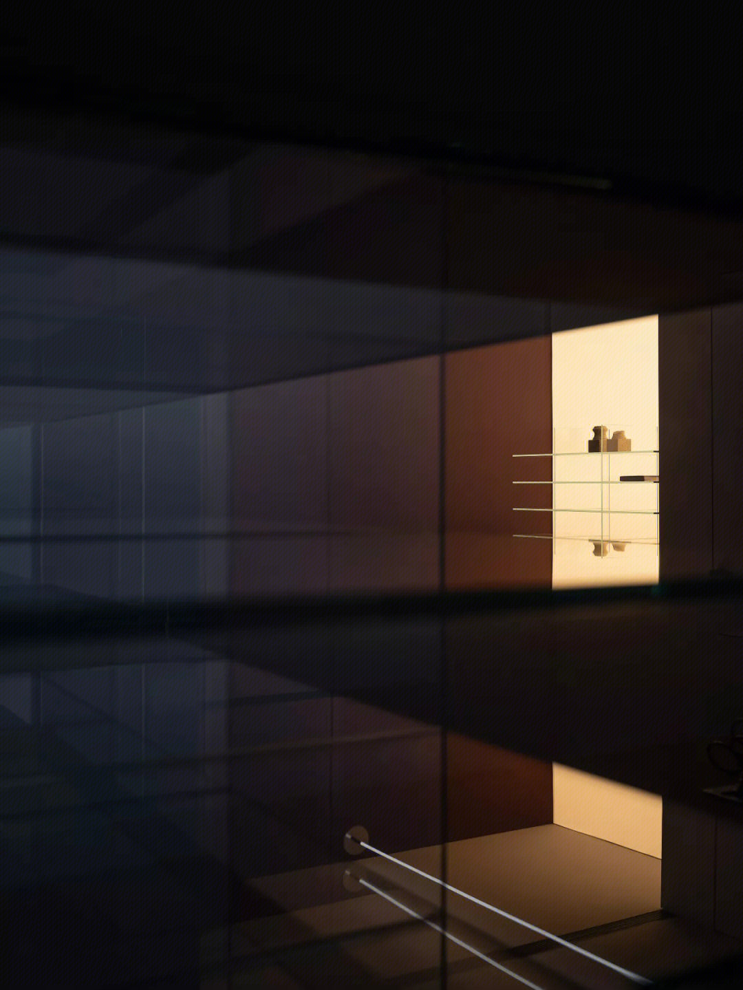 走廊是连接各个区域的桥梁,灯光指引着方向,胡桃木色的墙板前后呼应,搭配组合,室内的气质油然而生