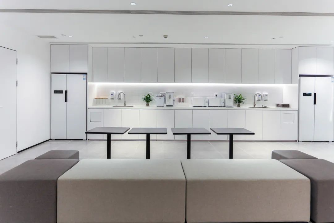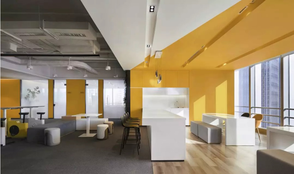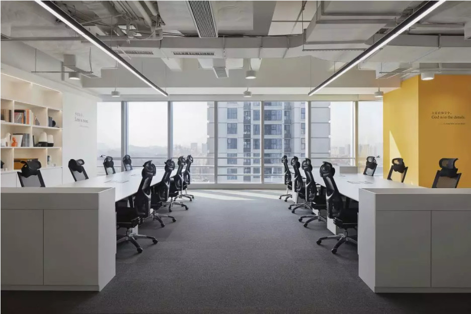 自由无拘的沟通对于团队的创新至关重要。开放的办公区是有效获取信息和激发灵感的地方。同时为了保证隐私和透明,总监室都采用玻璃门隔断设计,与开放办公区保持彼此的通透与链接,提升了场所的张力。玻璃墙面为会议室和独立办公室提供了隐私性,同时不牺牲办公区的透明度。