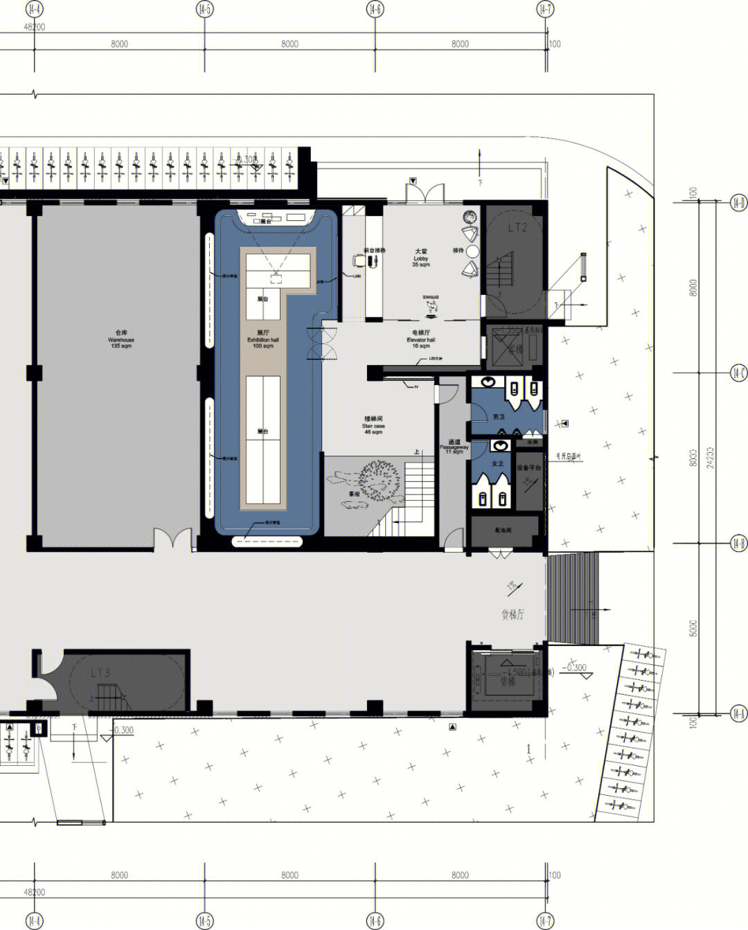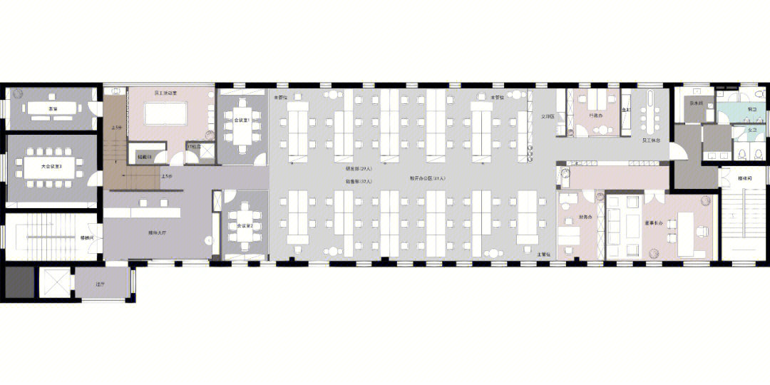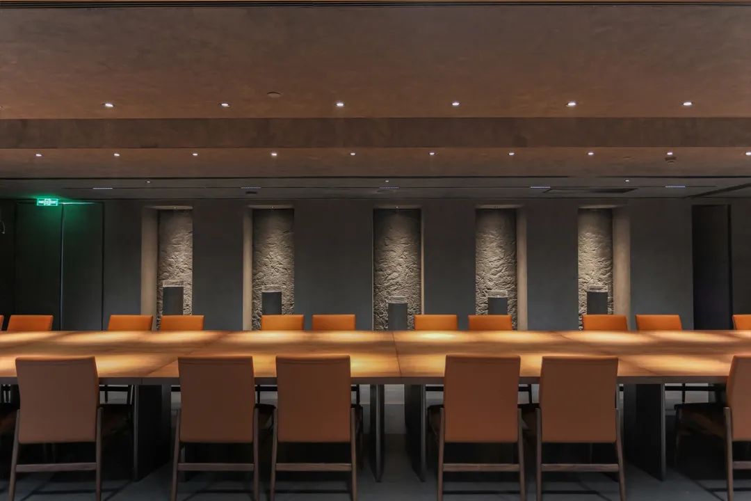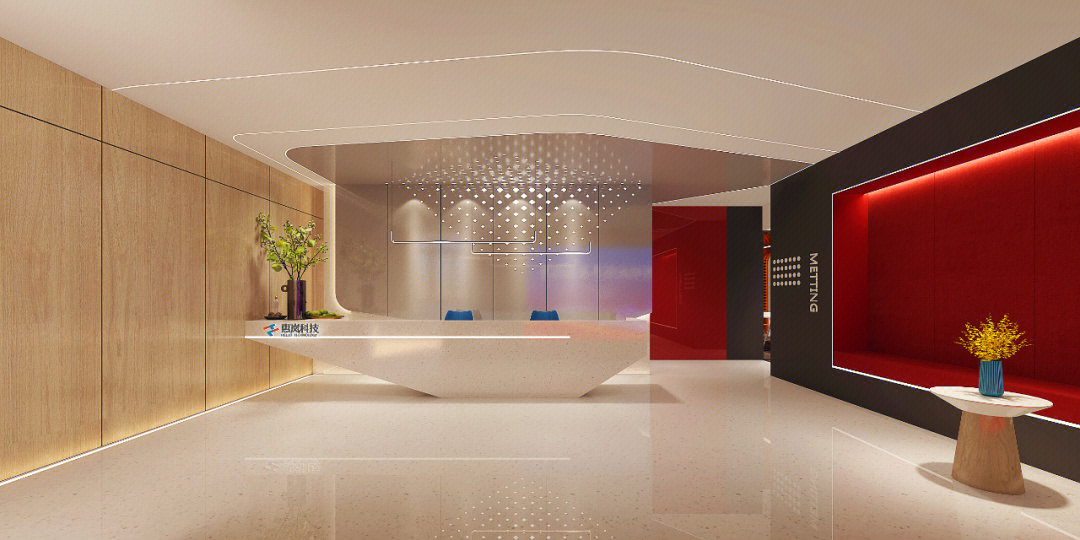 前厅作为一个灵活性很强的空间,承担着展示、交流等多重功能,打破传统空间设计,将办公与商业属性相融合,拒绝乏味单一的品牌内容输出,将品牌特点可视化,有趣的互动体验延展出品牌的无限想象力,同时通过视觉和材料的延续使用而使空间融入整个环境。