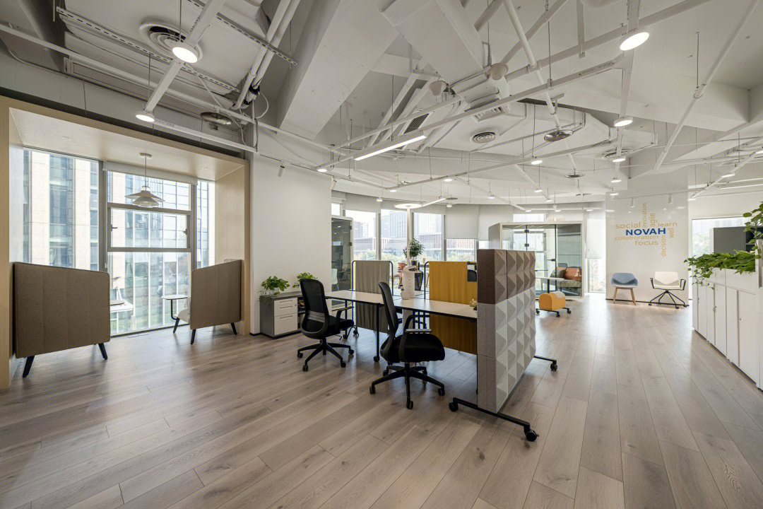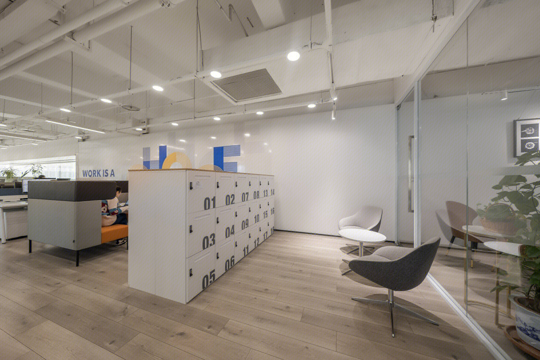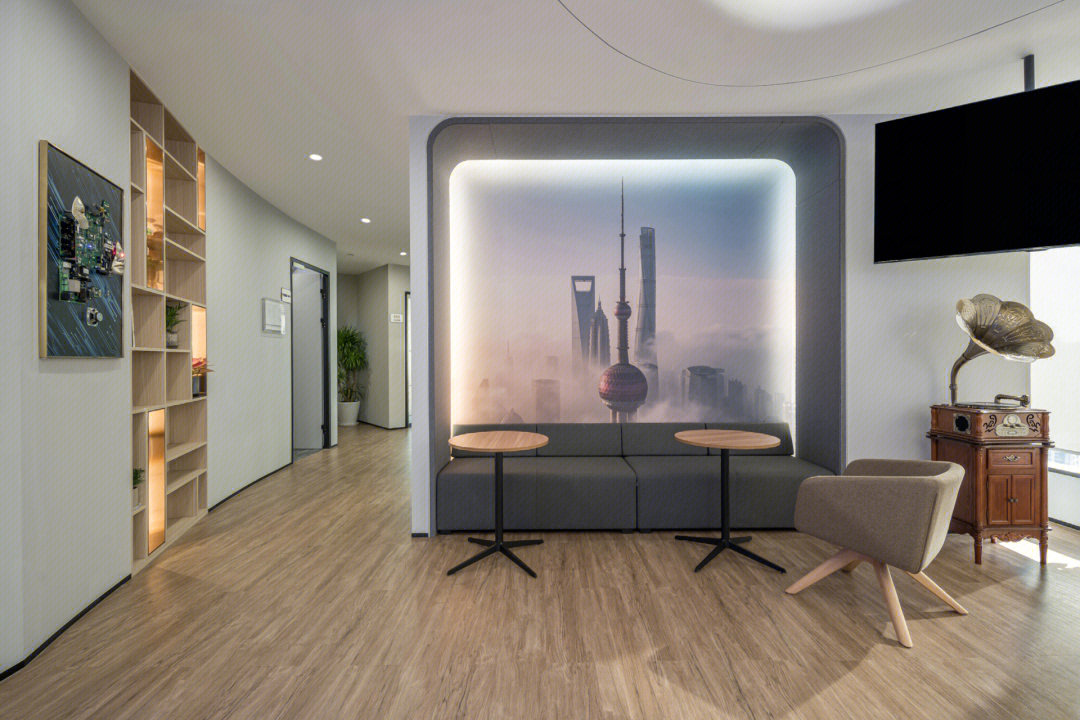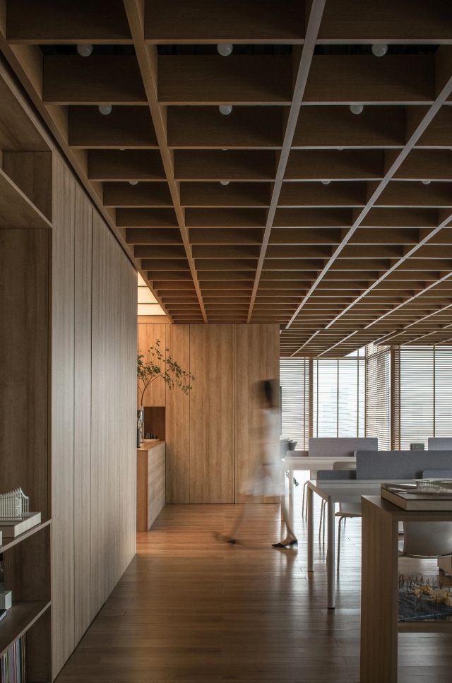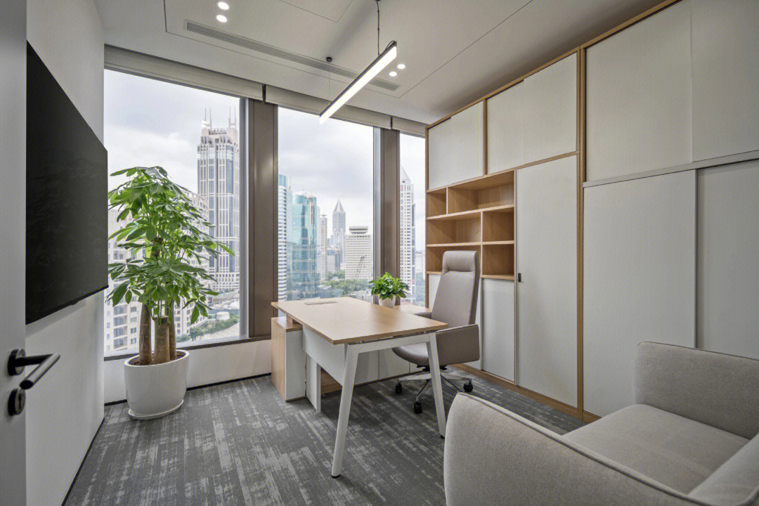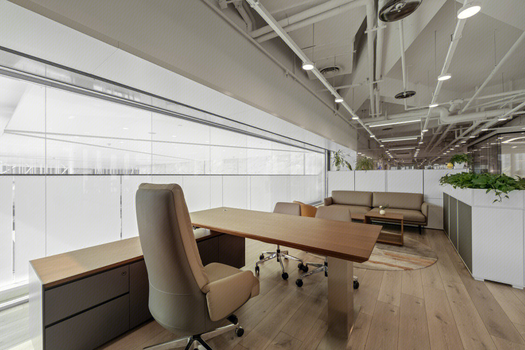 设计以空间的舒适性为出发点,温润柔和的木色成为了空间的整体底色,以不同的材料形式在顶面、地面、立面得以呈现。白色的办公桌赋予空间明快轻松,剔除掉乳胶漆表皮的混凝土立柱彰显力量感与时间感,精心设计的家具体系,灵活的空间隔断,构成了全部的空间表征,宛如一幅当代城市山水画卷。