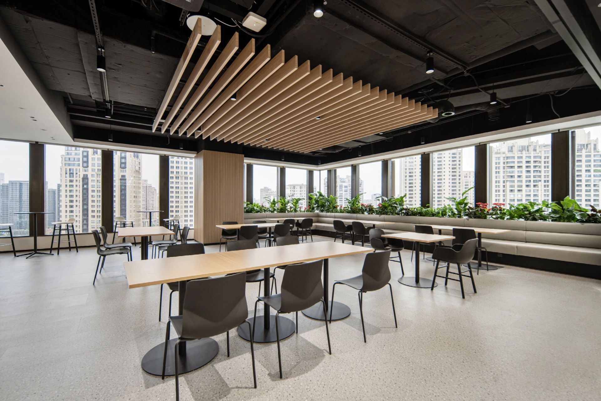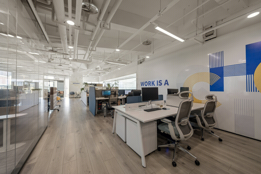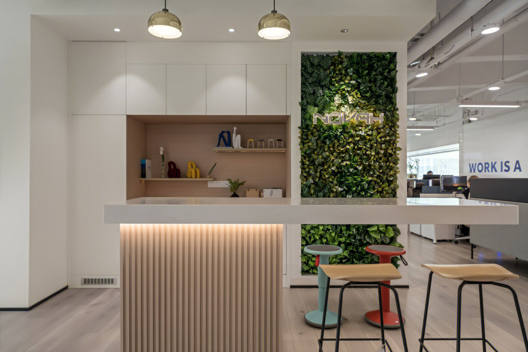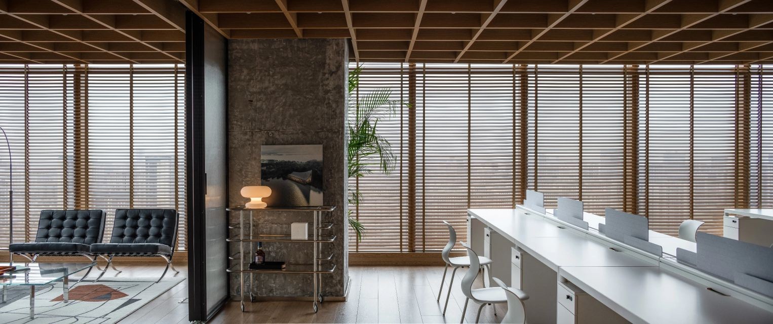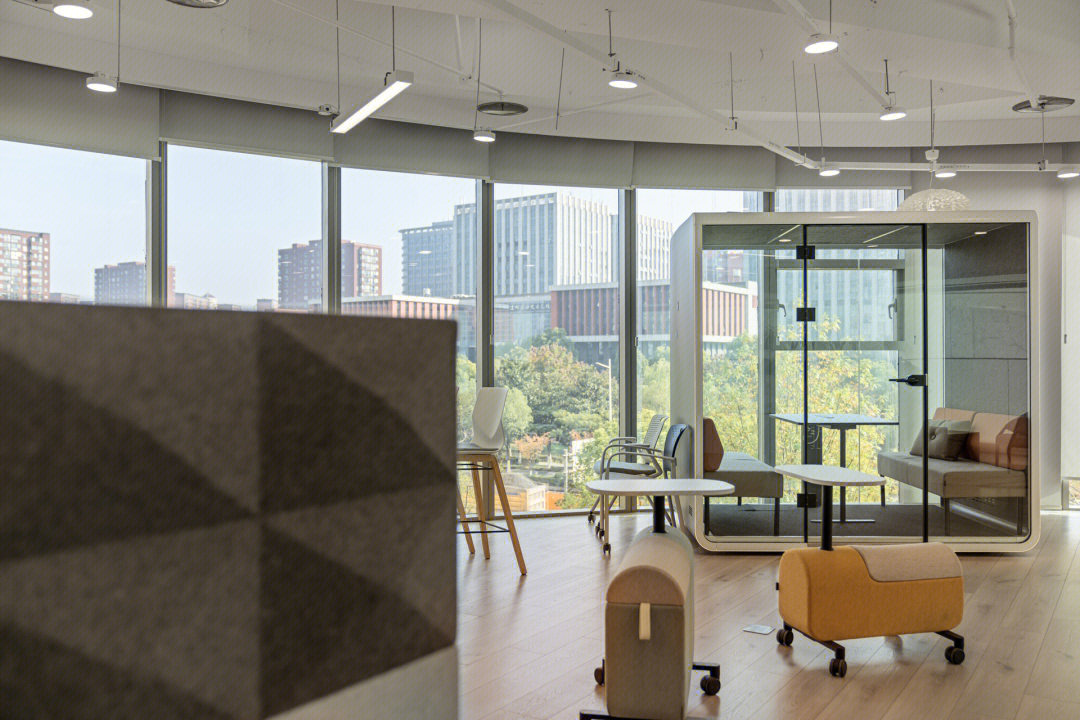 设计以空间的舒适性为出发点,温润柔和的木色成为了空间的整体底色,以不同的材料形式在顶面、地面、立面得以呈现。白色的办公桌赋予空间明快轻松,剔除掉乳胶漆表皮的混凝土立柱彰显力量感与时间感,精心设计的家具体系,灵活的空间隔断,构成了全部的空间表征,宛如一幅当代城市山水画卷。