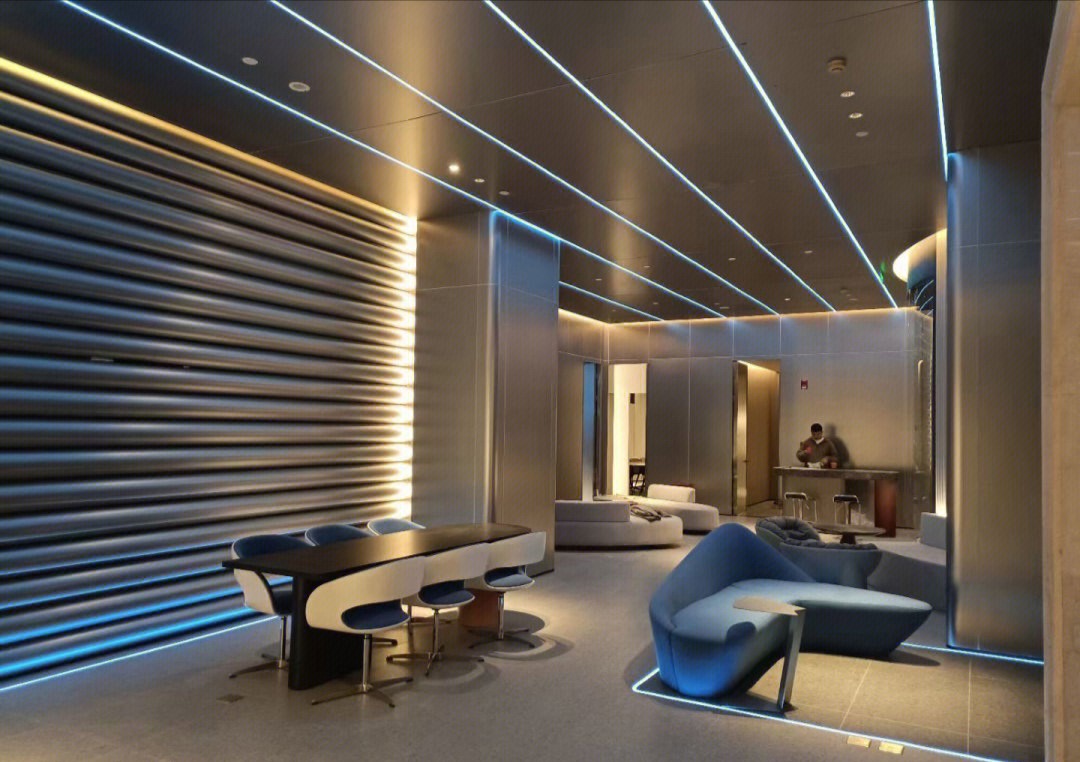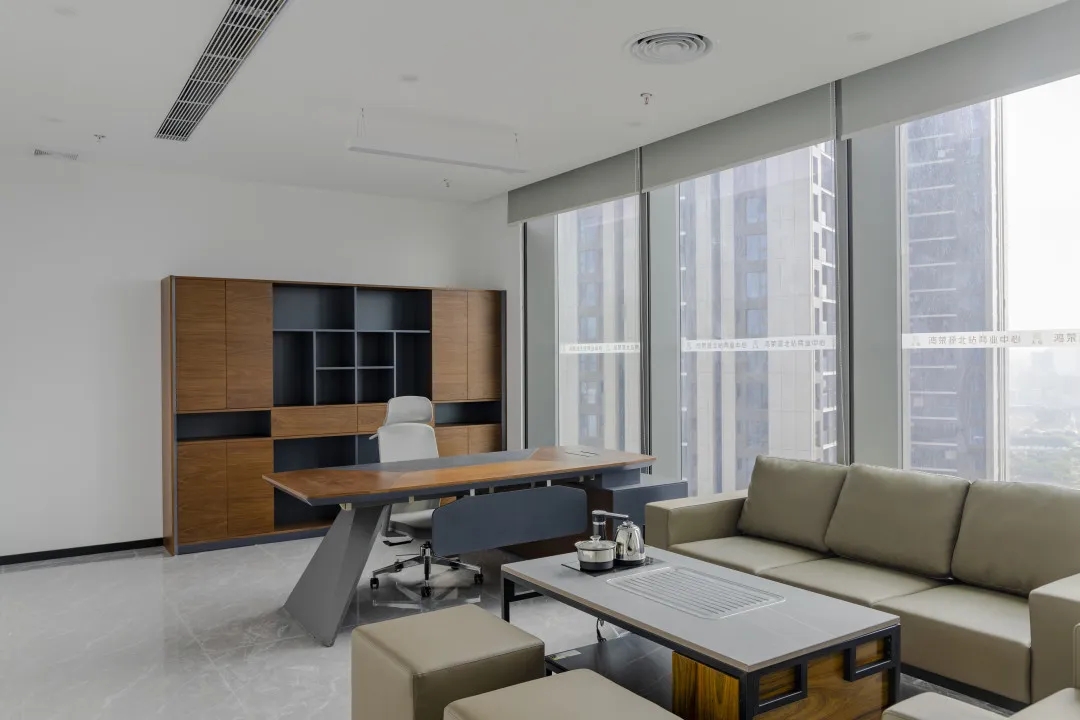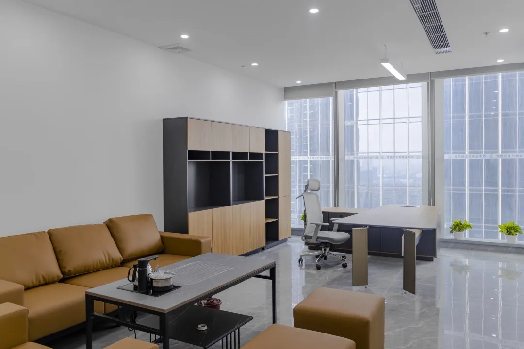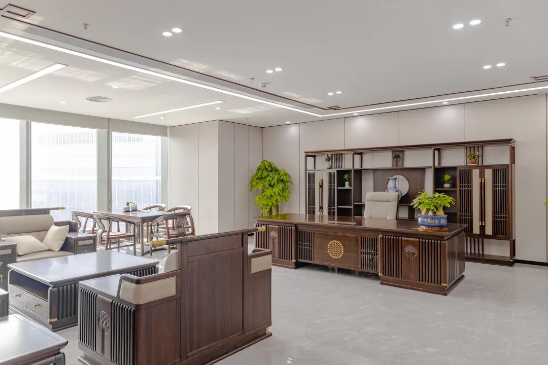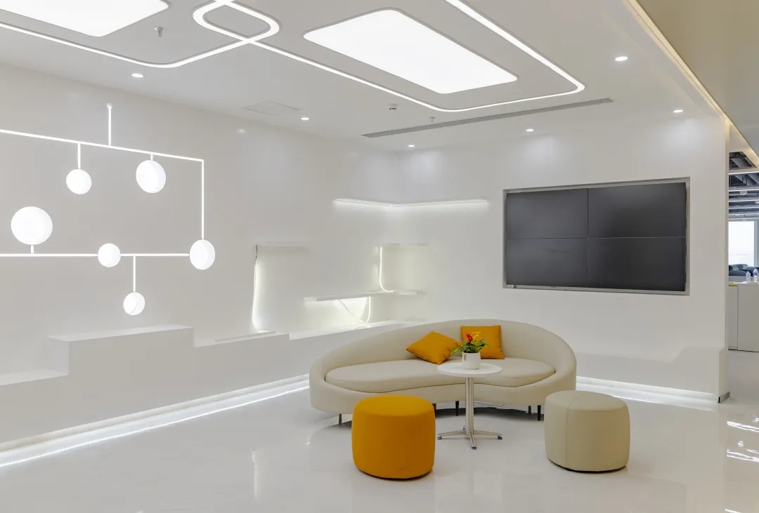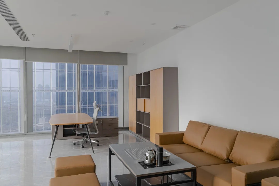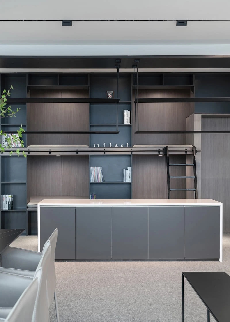 低调、中庸、引而不发,中式处世哲学对现代生活依旧有着潜移默化的影响。以明亮温暖的感官打造一个舒适的对话空间,透光而不透明的夹丝玻璃保护隐私性。一个非典型意义上的开放式交流空间,足以平衡工作、心理的双向需求。