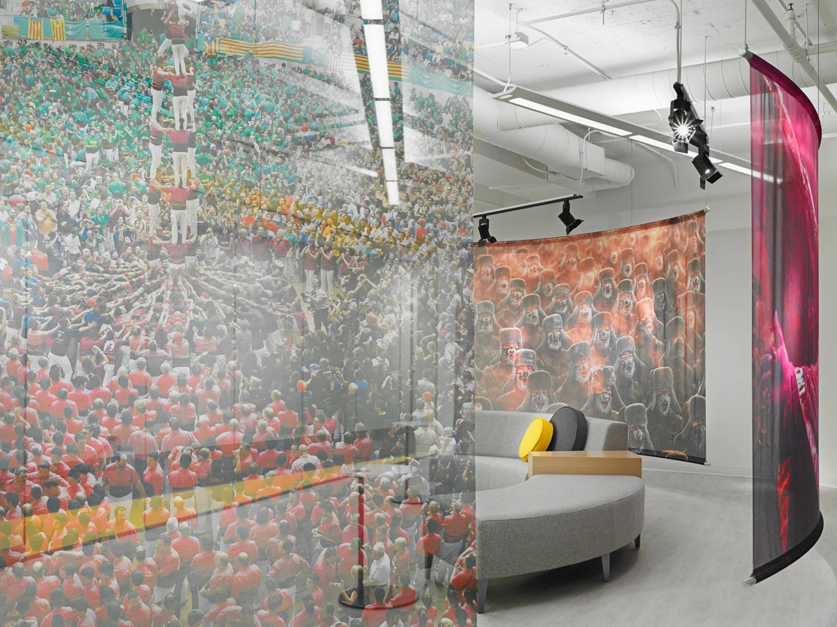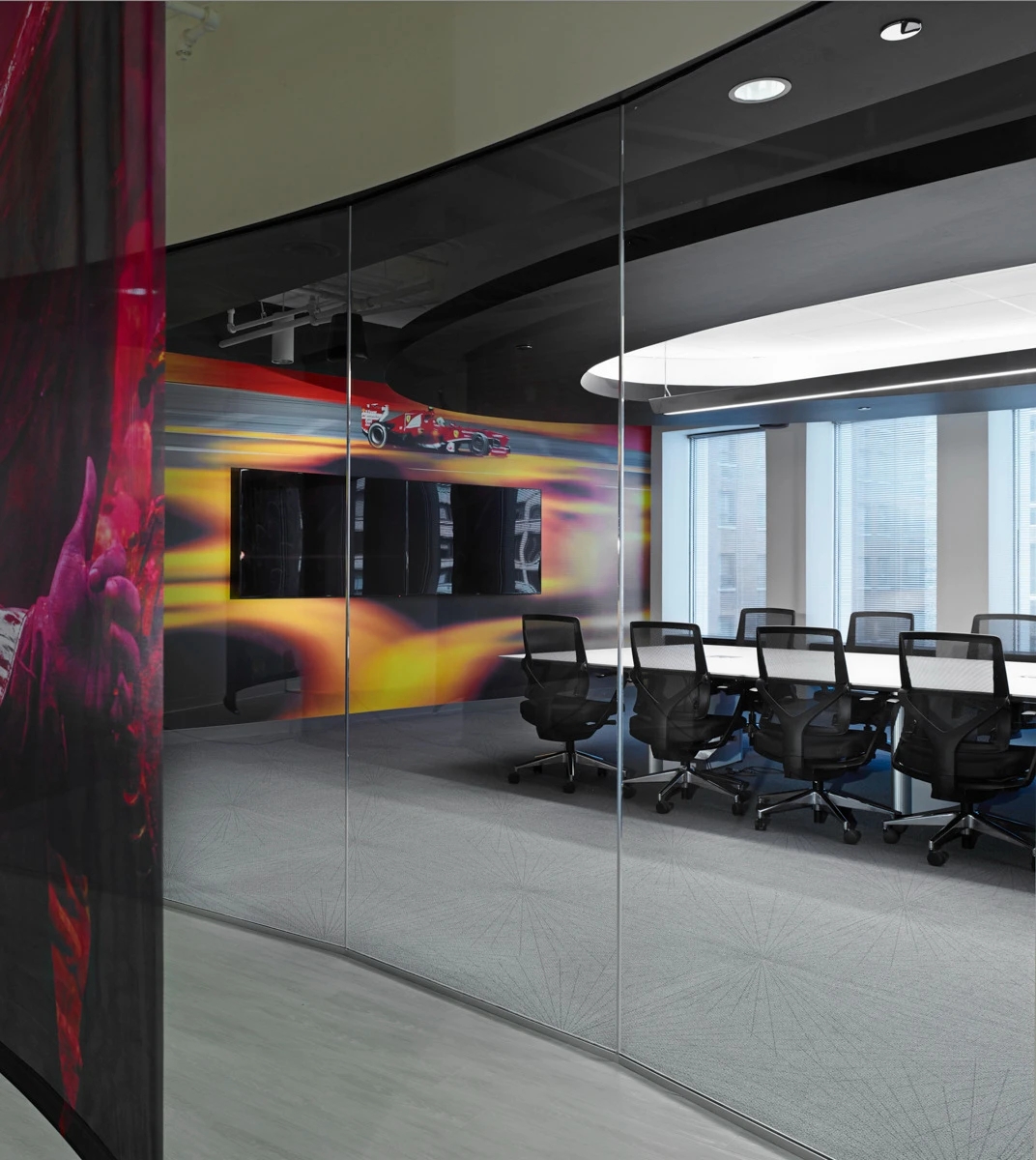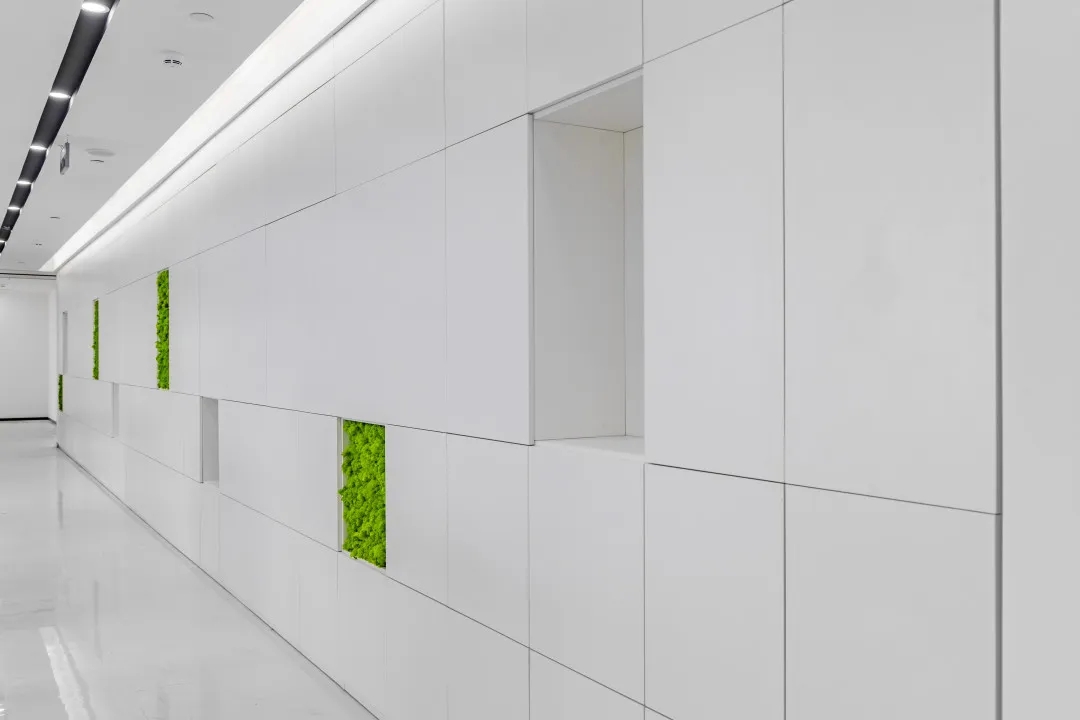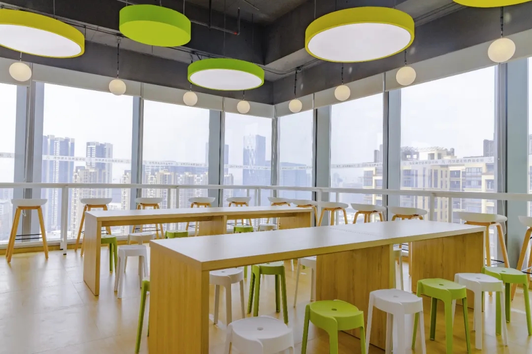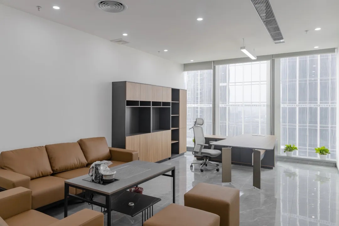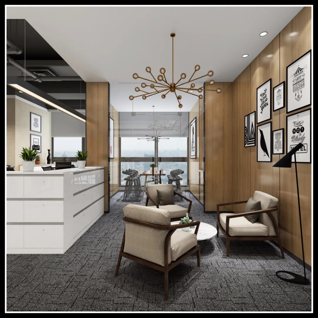 低调、中庸、引而不发,中式处世哲学对现代生活依旧有着潜移默化的影响。以明亮温暖的感官打造一个舒适的对话空间,透光而不透明的夹丝玻璃保护隐私性。一个非典型意义上的开放式交流空间,足以平衡工作、心理的双向需求。