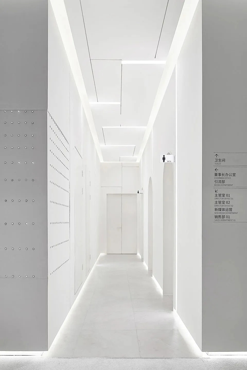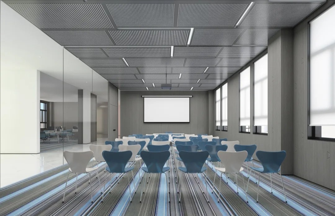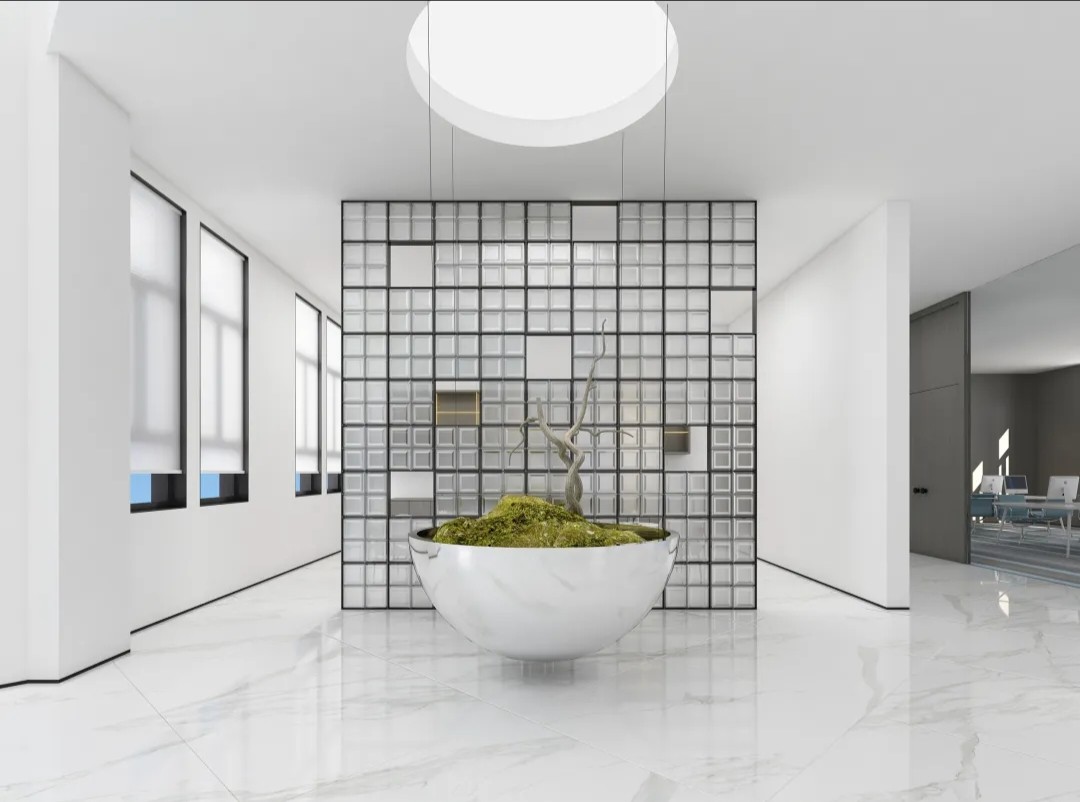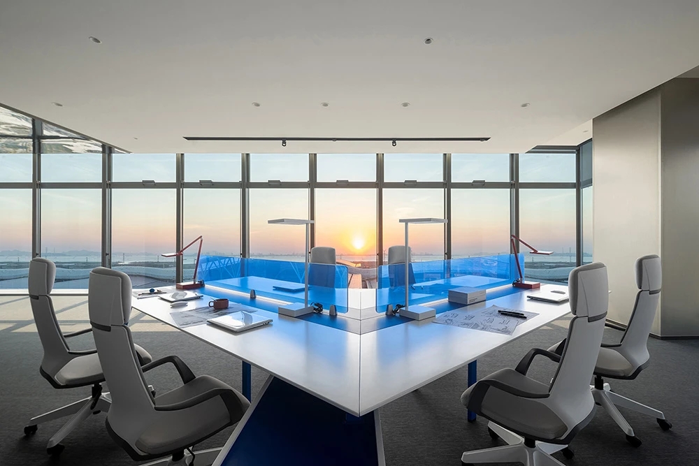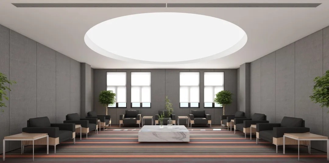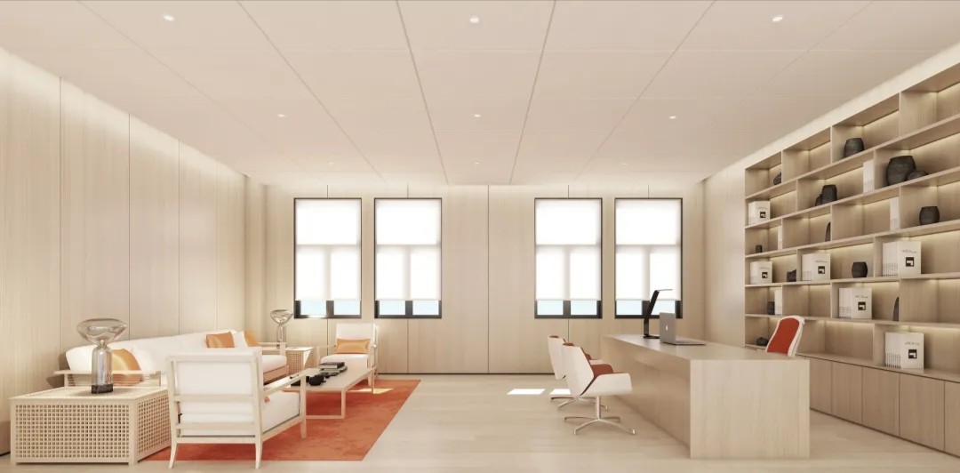 室内空间由功能家具和装置形成自然分隔,空间整体因祛除隔断而产生了流动,这与科学巨匠斯蒂芬·霍金的宇宙观具有一种相通性。Robbie太空兔和陨石一起来到这里,被安置在接待台和会议室中,向来访的人们讲述宇宙的故事,犹如那些激动人心的创业事迹一样,源于有限的奇点,产生突破界限的无穷能量。