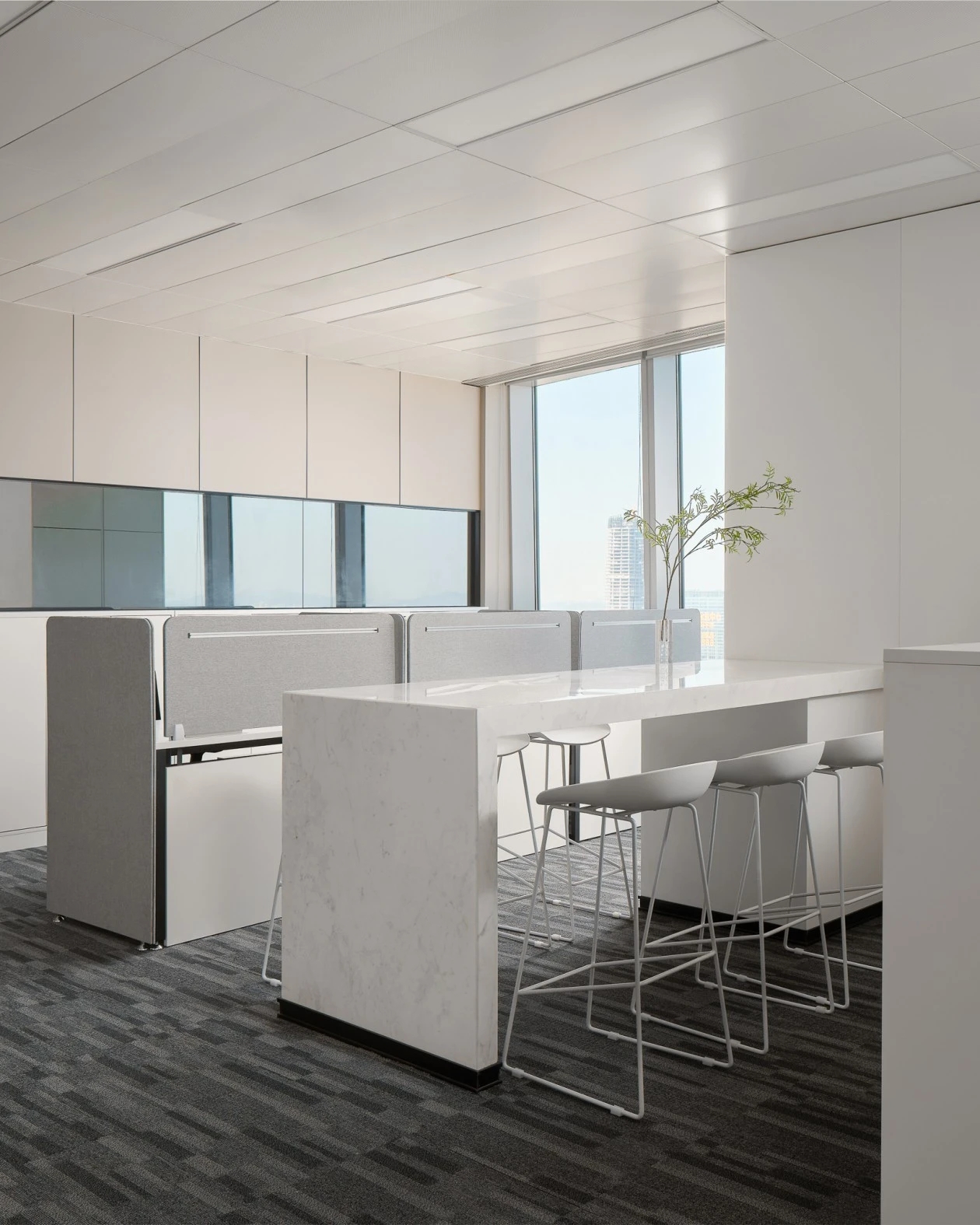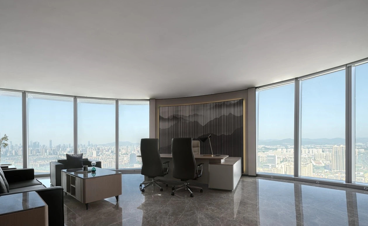 极简而大气的当代设计语汇成为空间的定格之笔。从空间的动静界分,到储物收纳和空间功能的灵活转变,设计上兼顾了稳重舒适的质感,简明的线条、精致的光影、当代的材质,由表及里地将空间的商务气息调动起来,在这个触动深度沉浸的思考境域里,映射出使用者对办公、洽谈、会议、休闲场域的自由感知。